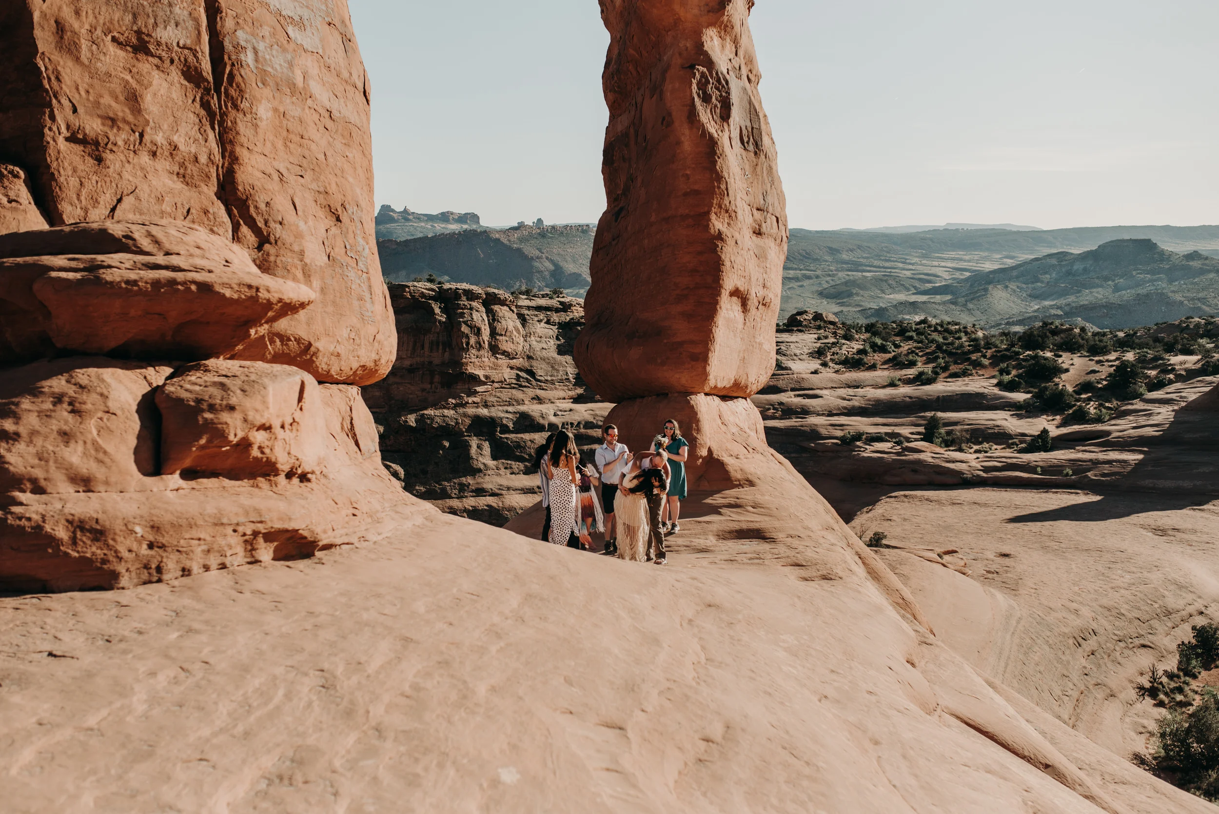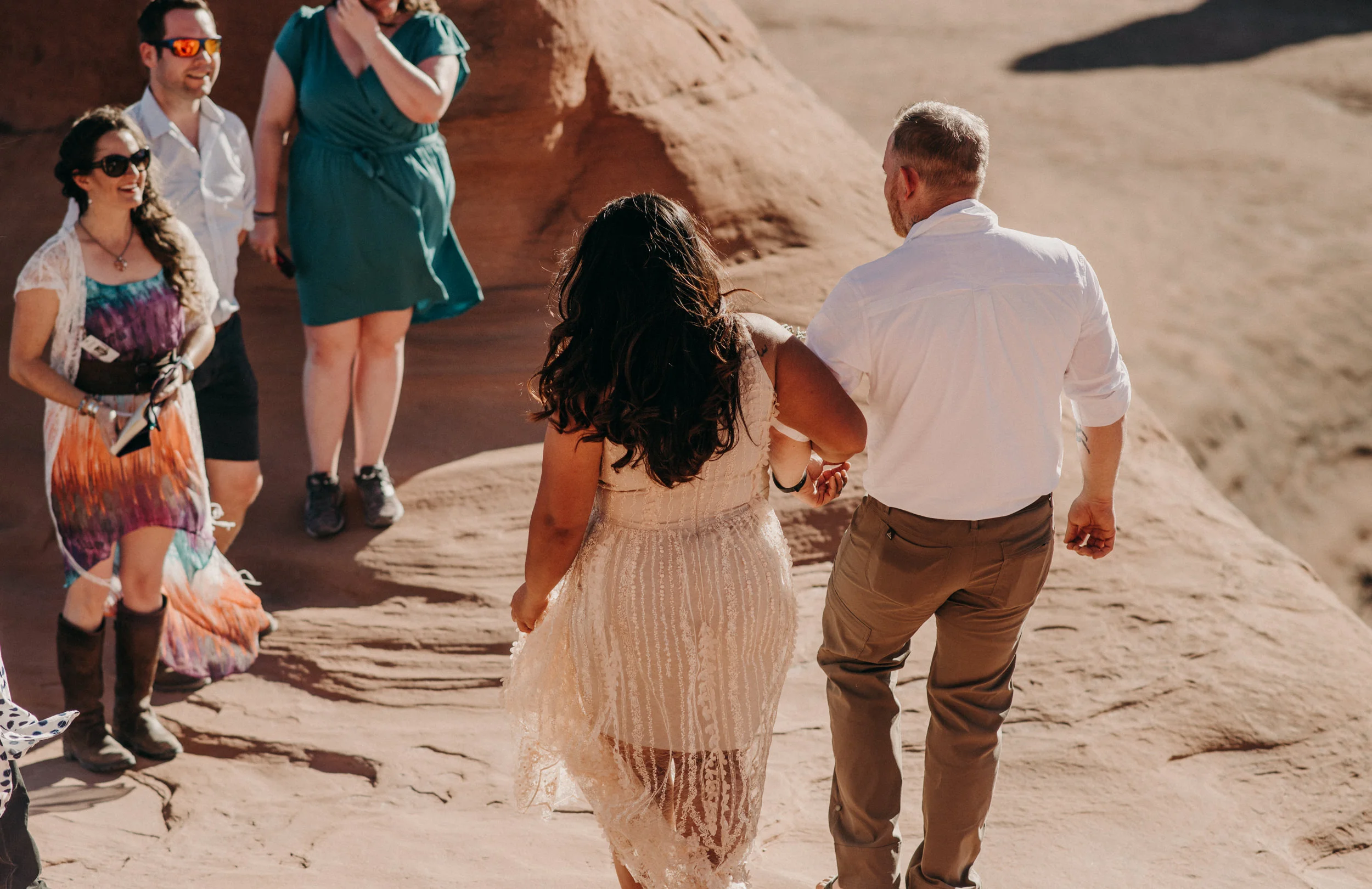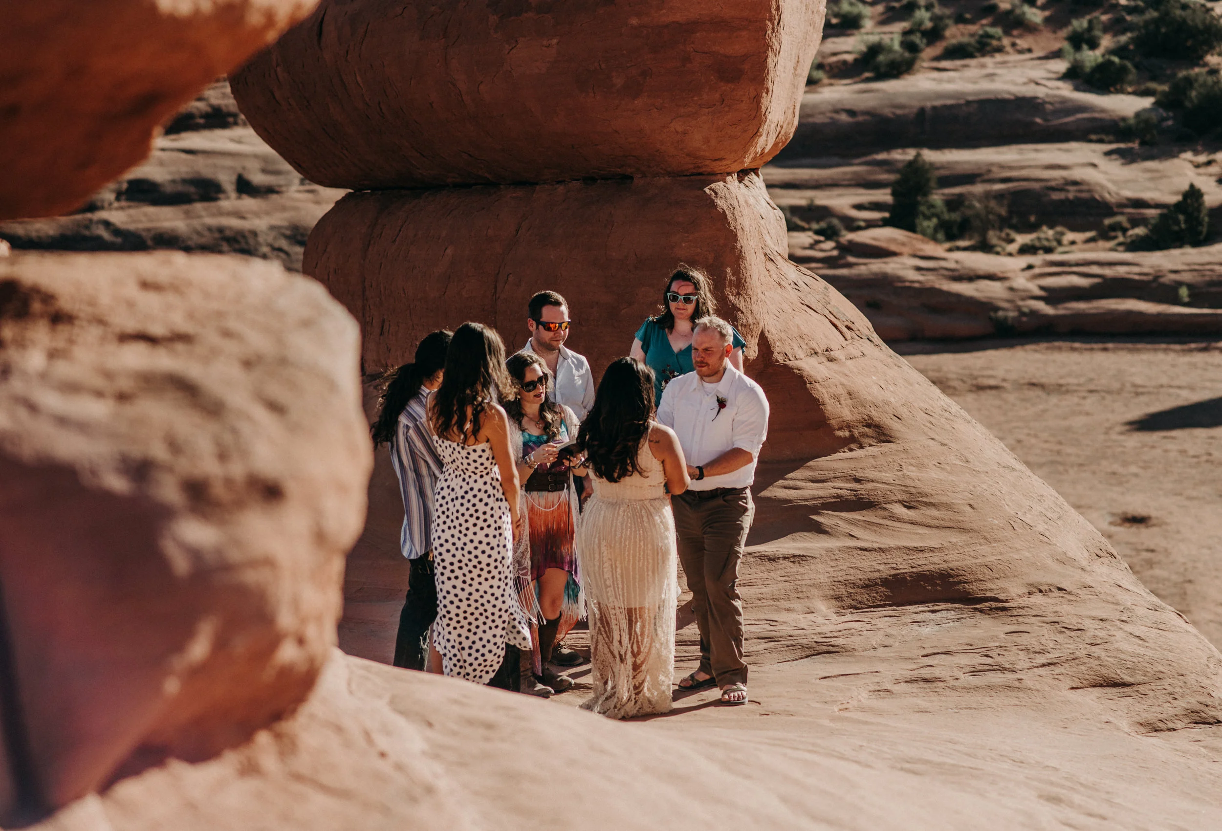 The day of their ceremony was so relaxed and full of love. We all started the day with a huge breakfast at a local diner in Moab, and then headed back to the Airbnb to get ready. Once we were all ready, we headed into Arches National Park to make the hike to the Delicate Arch. The arch was even more beautiful than I was expecting!! We had their ceremony under the arch, and after that wandered around the path on the way back taking photos in a bunch of pretty places!! It was so fun! After we were done in the park, we headed to a local brewery for beer & dinner, and then all headed back to the Airbnb for drinks after! It was the most special day to be a part of and I felt way more like a guest than a photographer.