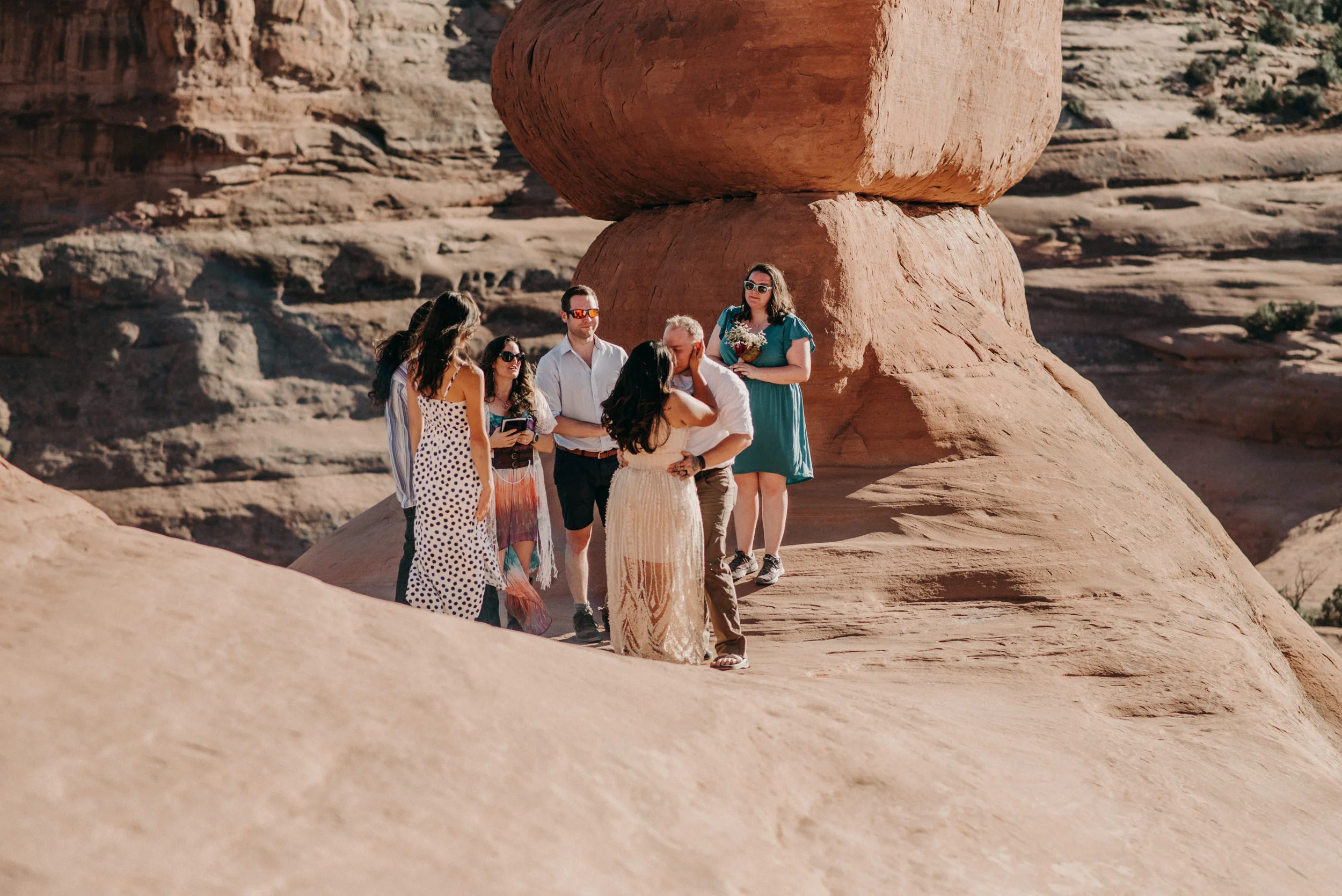 So amazing! Delicate arch is such a perfect place for an elopement in Arches National Park! So iconic. Moab is a great location for an adventurous wedding!