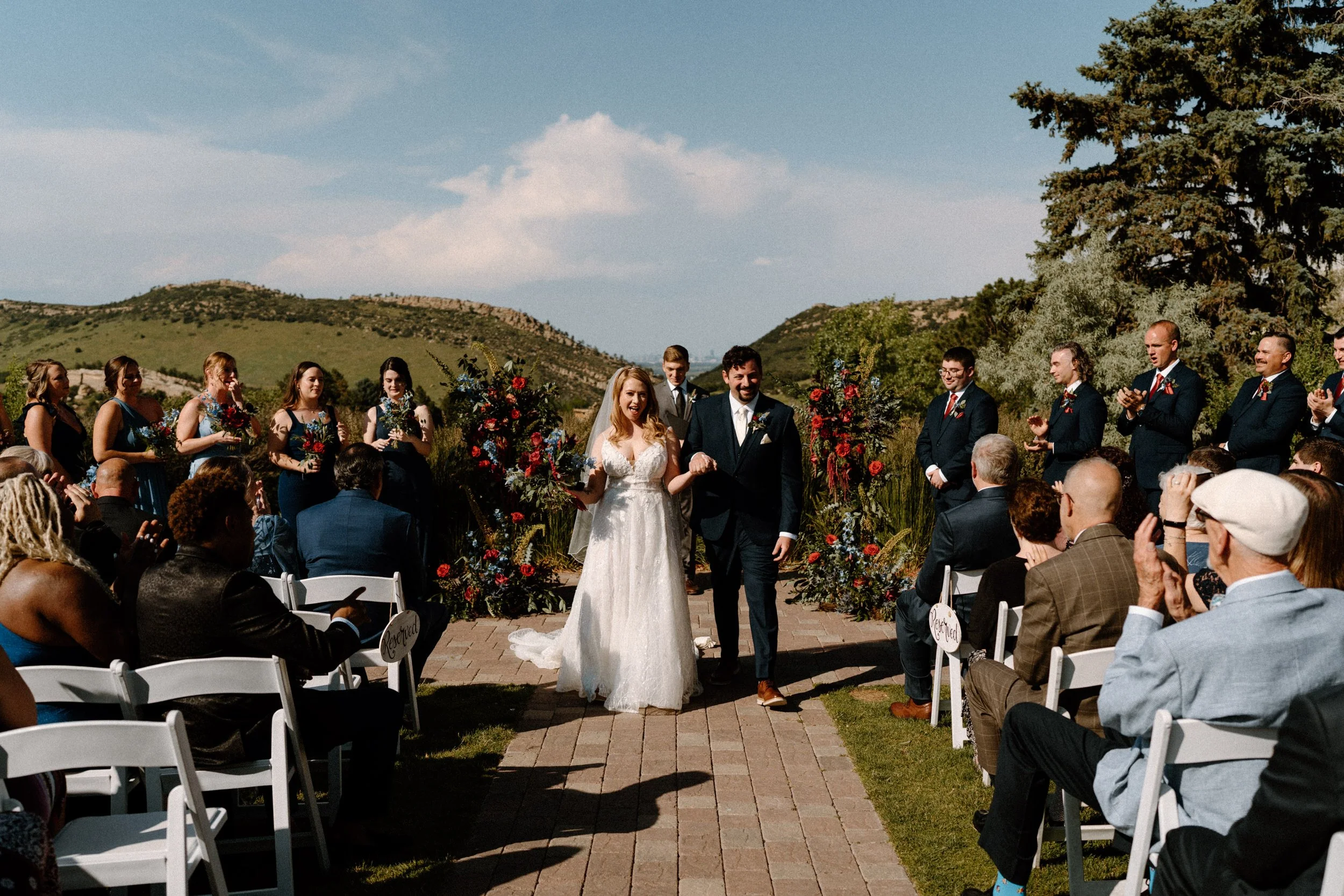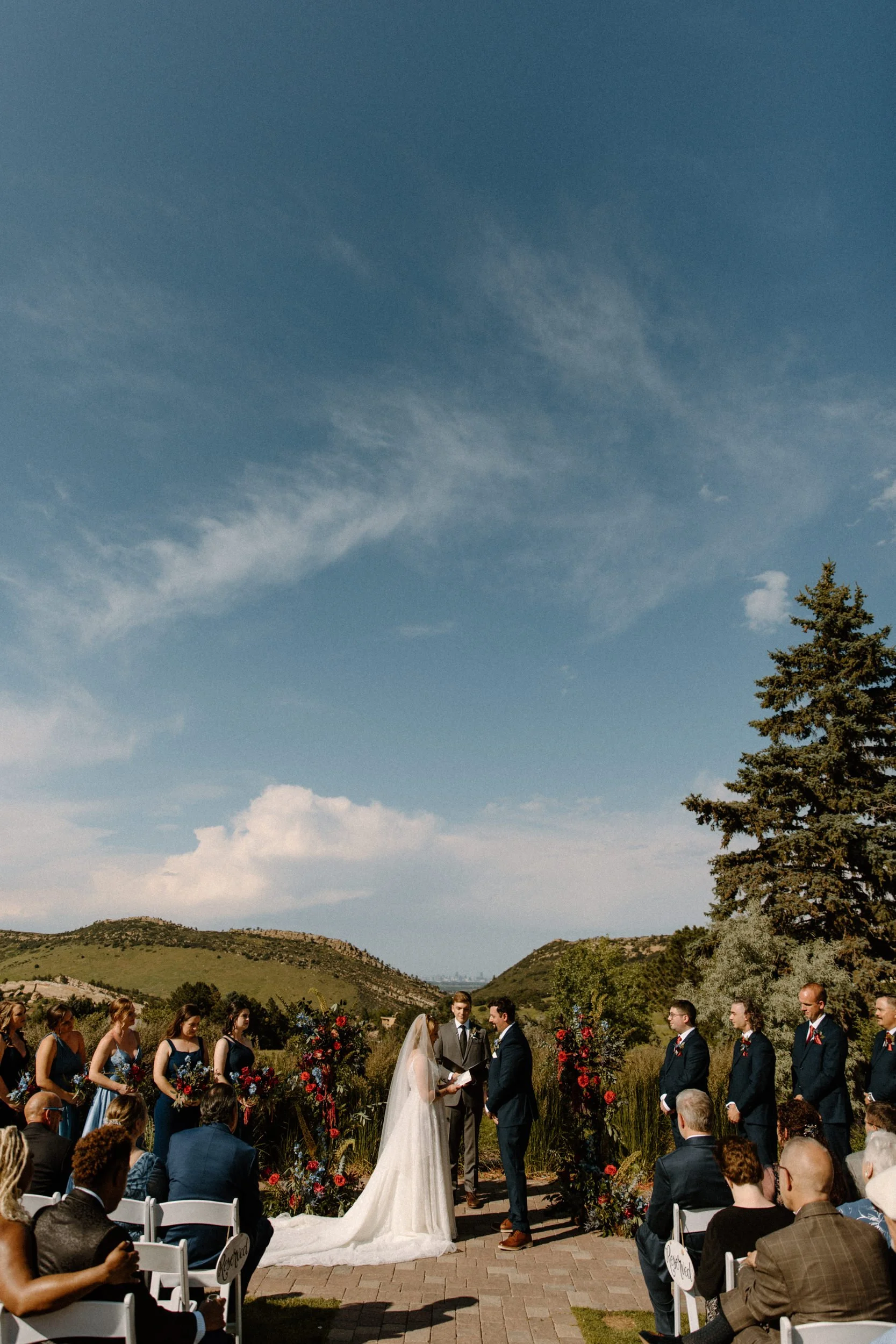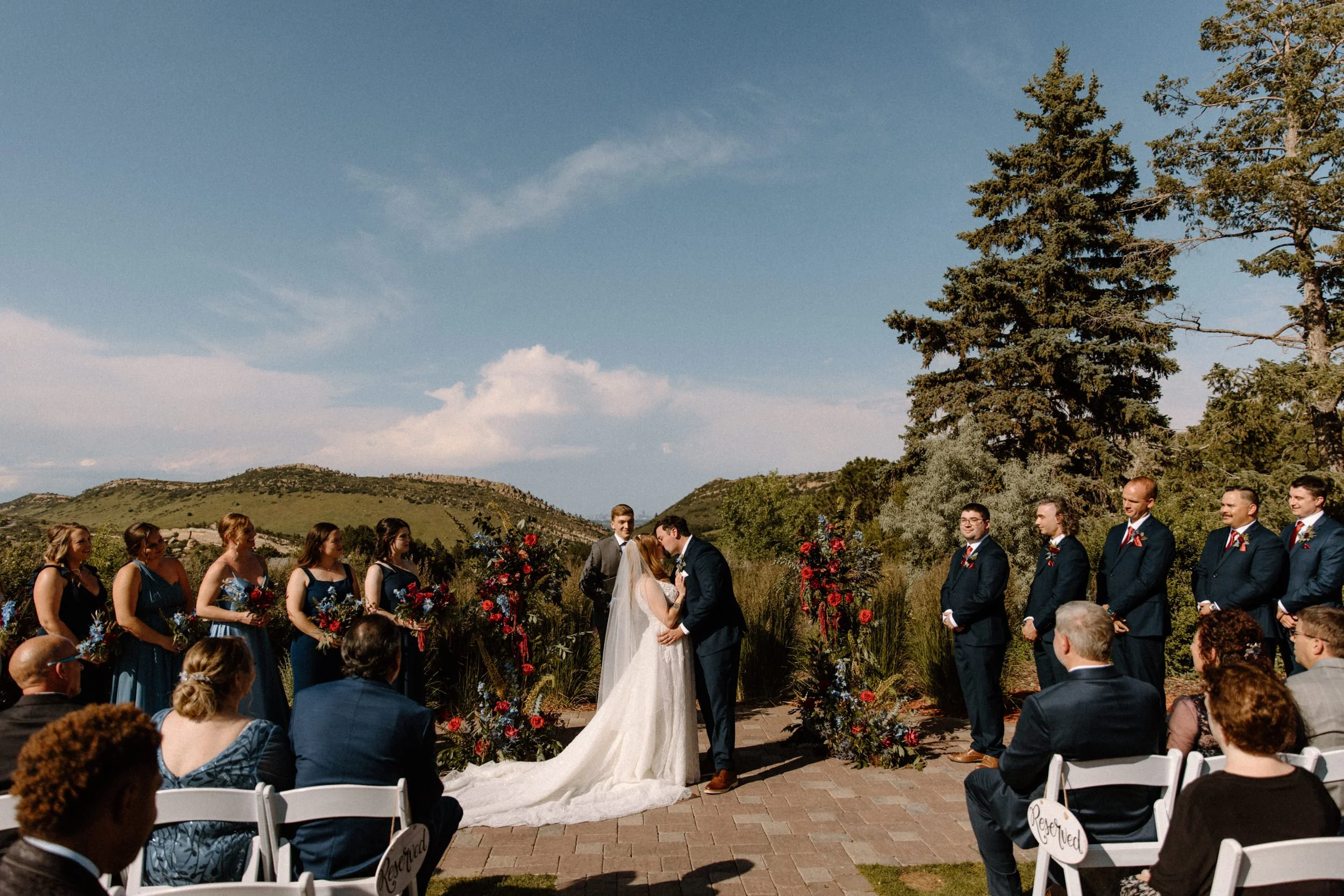The red, white, and blue decor tied everything together perfectly. The ceremony was held outside, where guests had a clear view of the Denver skyline in the distance. As Ashley walked down the aisle, Eric’s reaction said it all. You could see the love between them in every glance, every touch, and every little moment they shared.