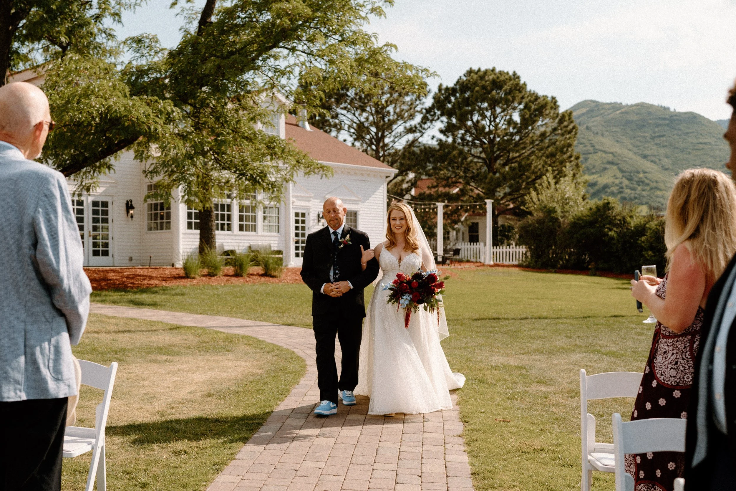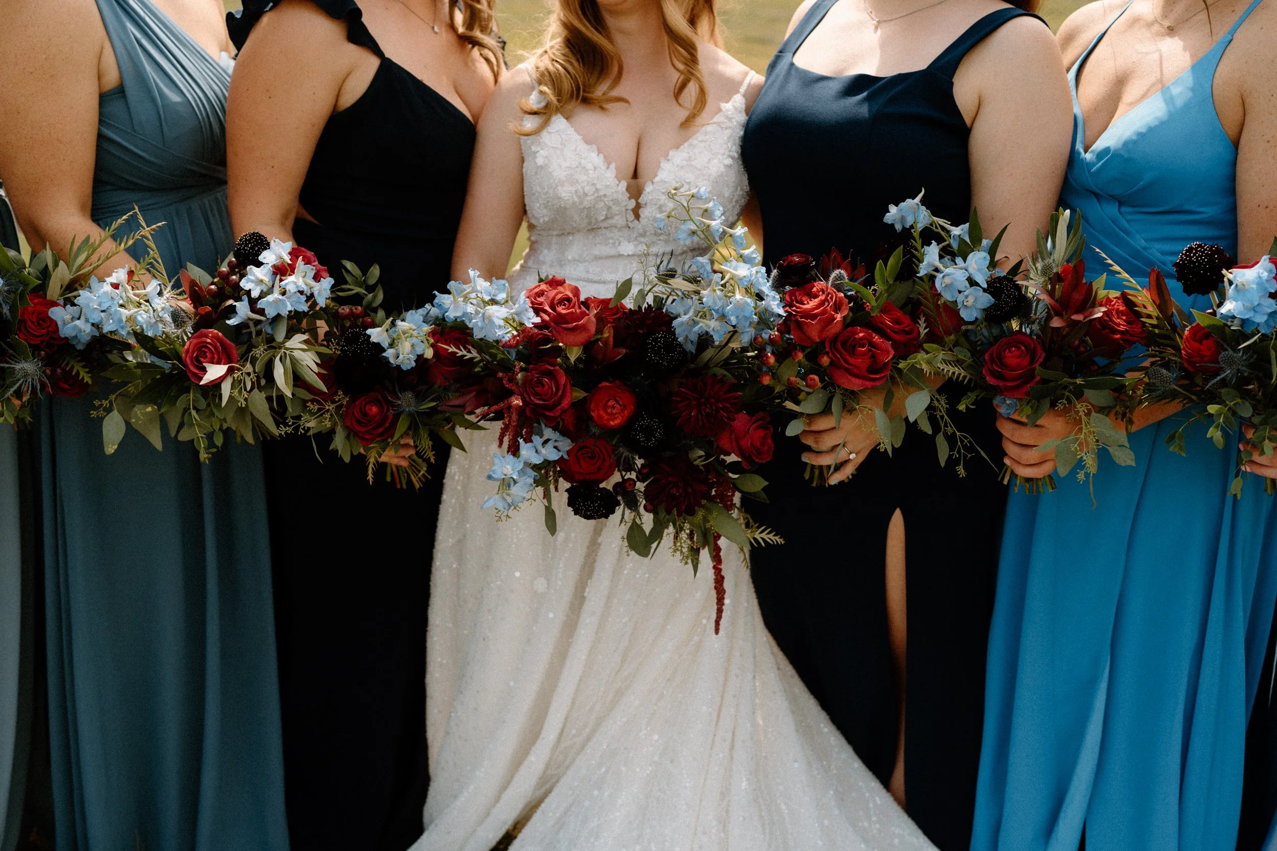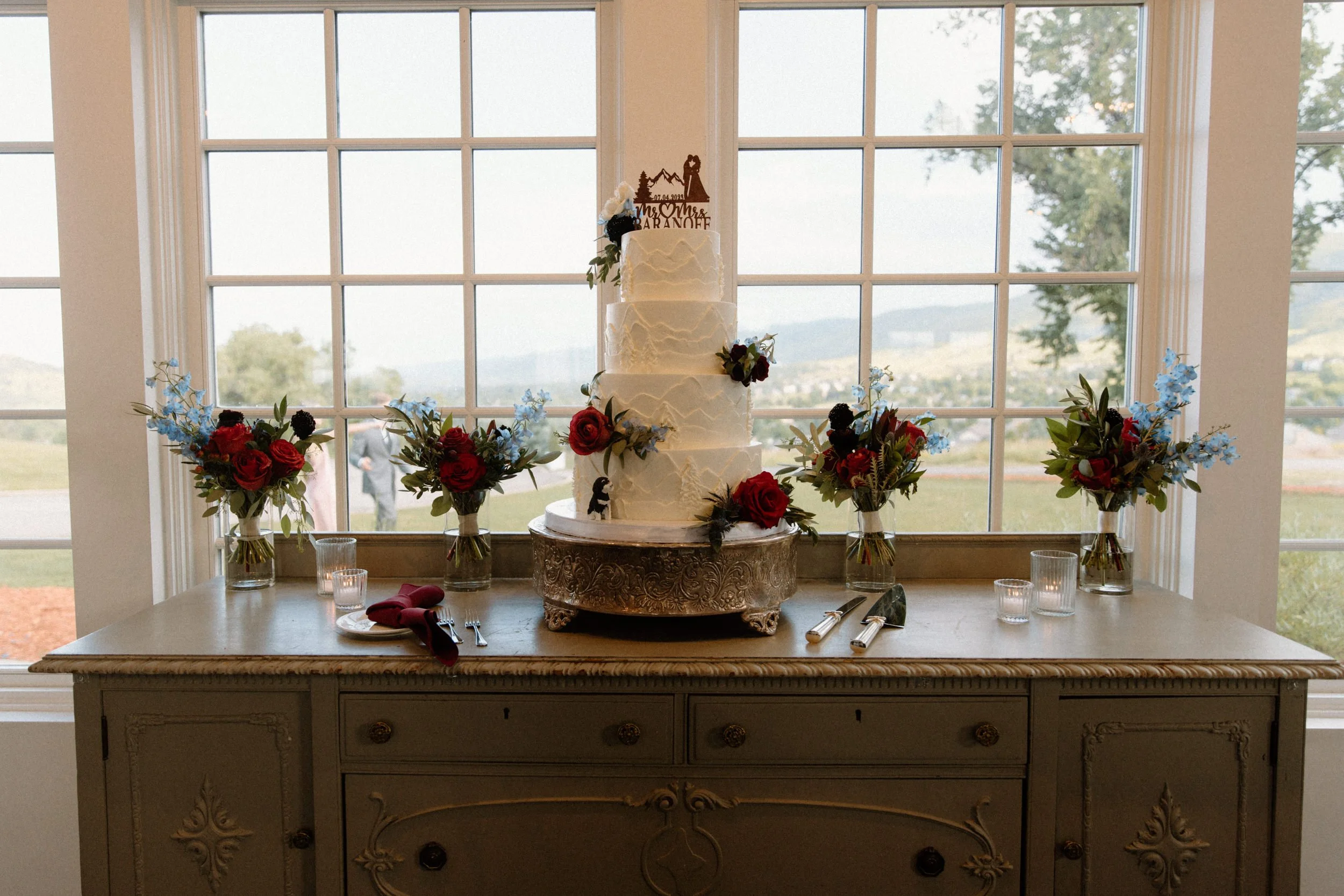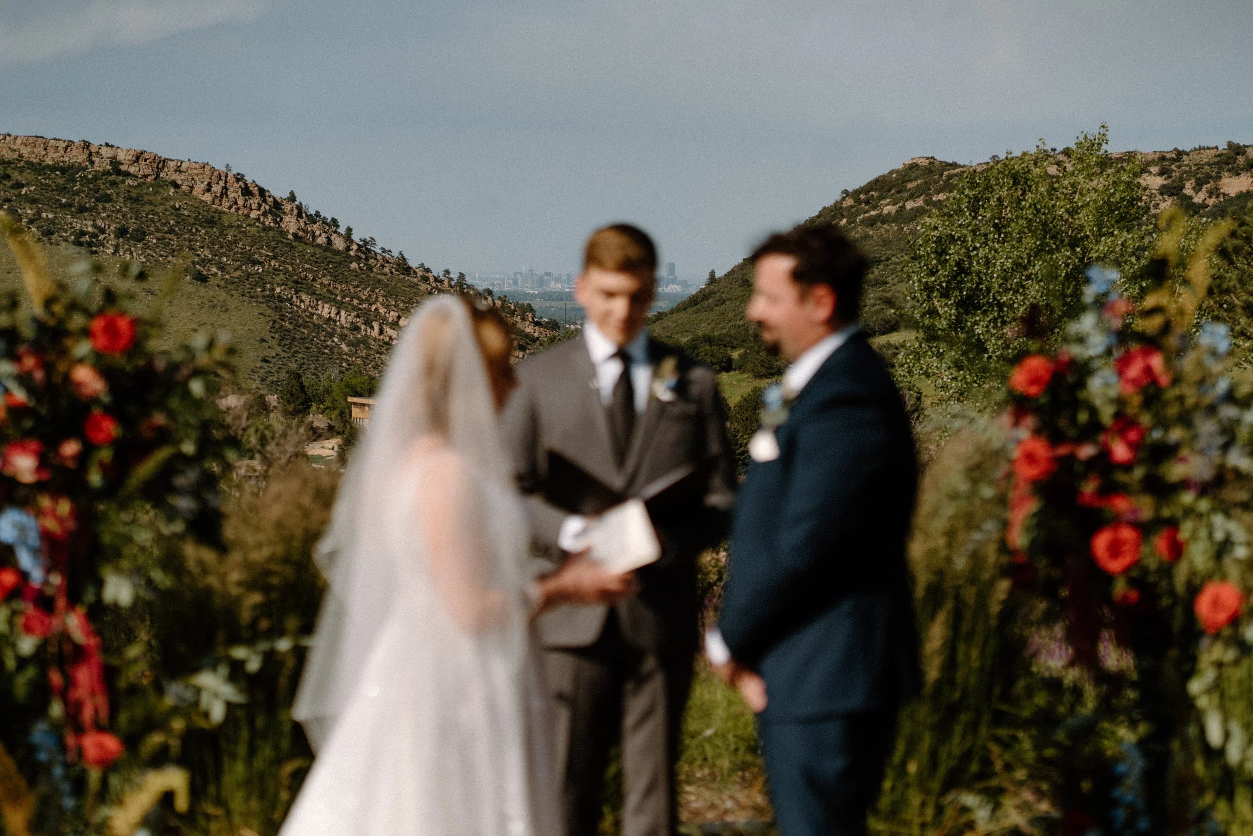 The red, white, and blue decor tied everything together perfectly. The ceremony was held outside, where guests had a clear view of the Denver skyline in the distance. As Ashley walked down the aisle, Eric’s reaction said it all. You could see the love between them in every glance, every touch, and every little moment they shared.