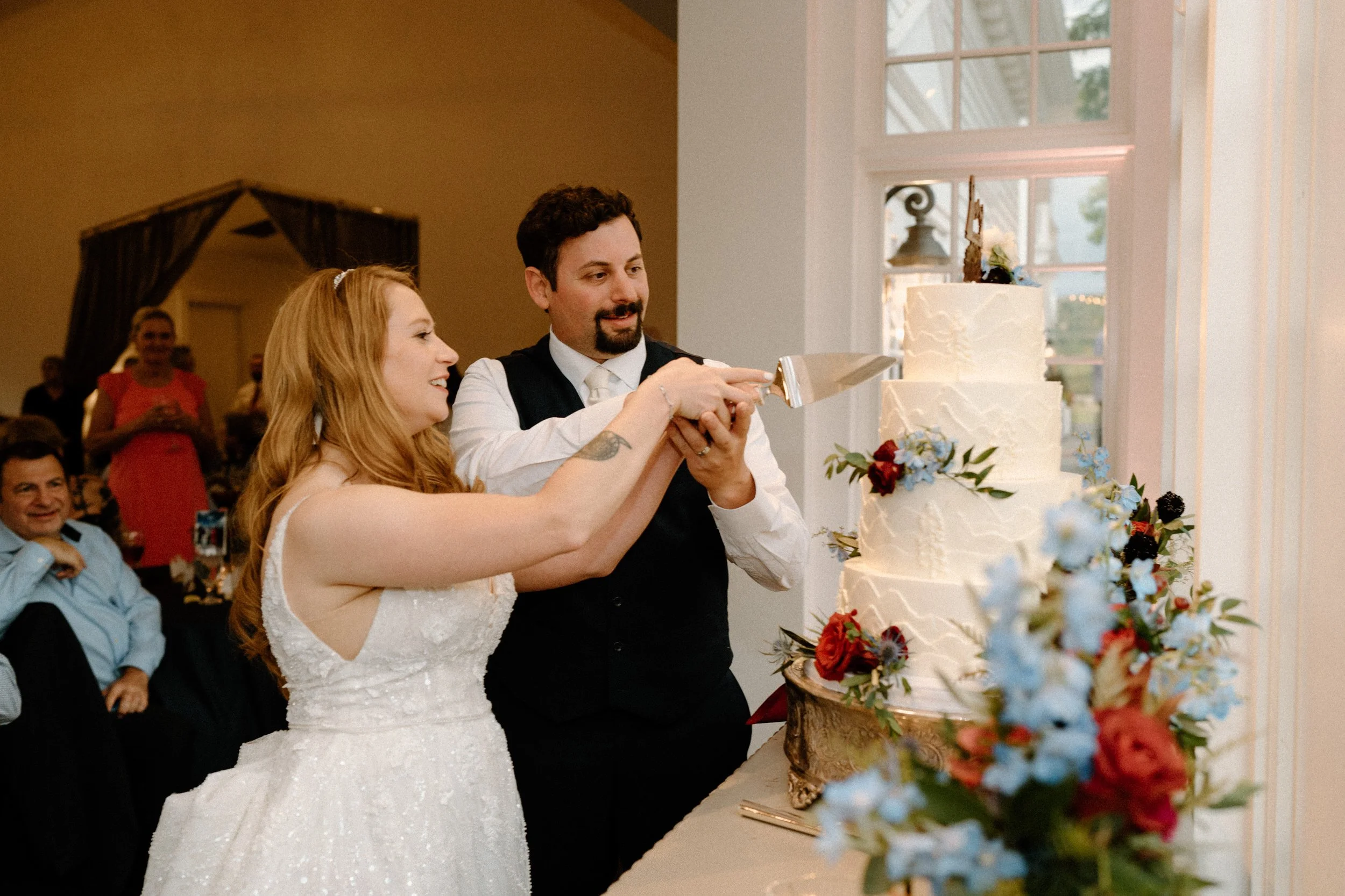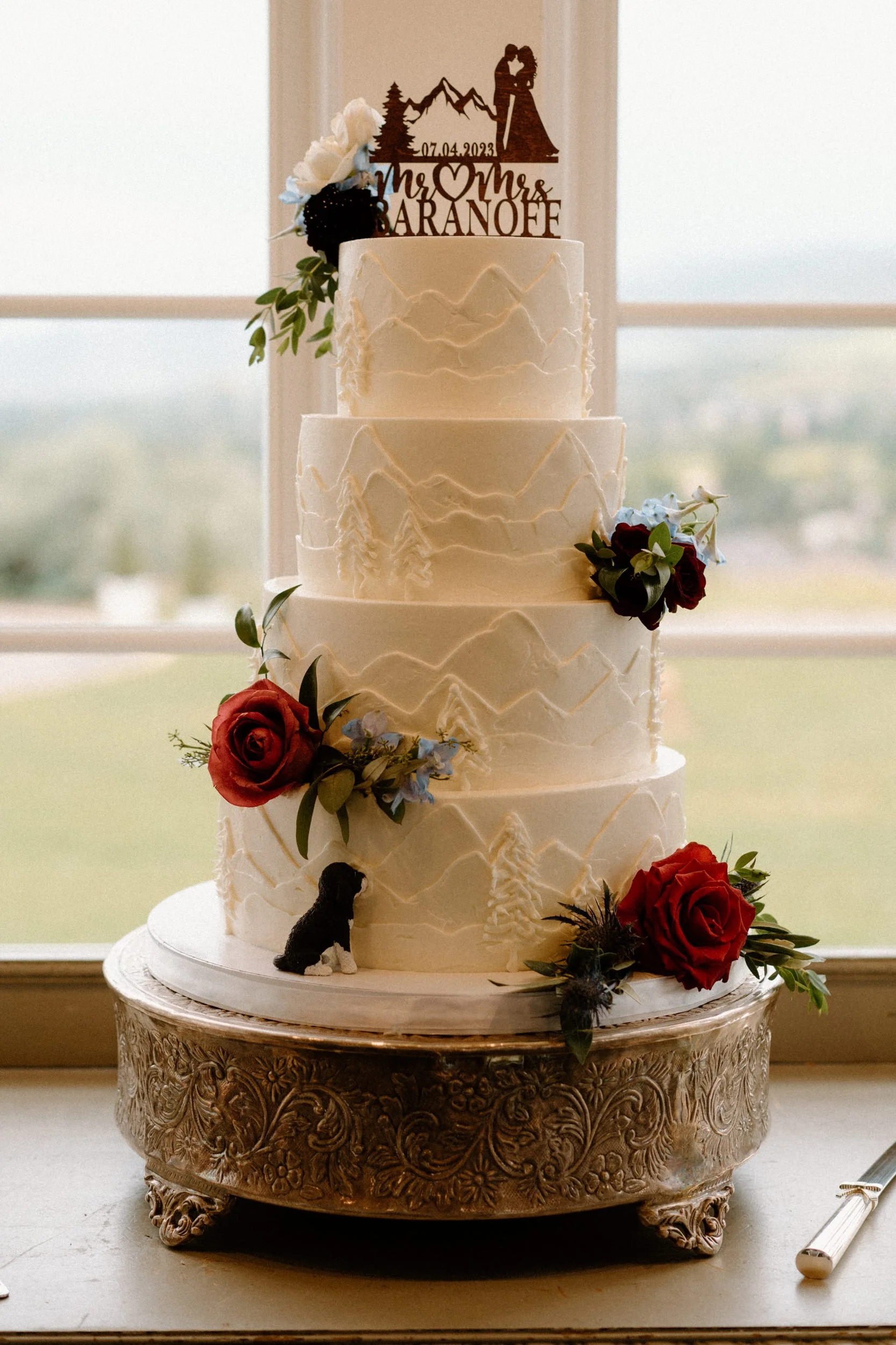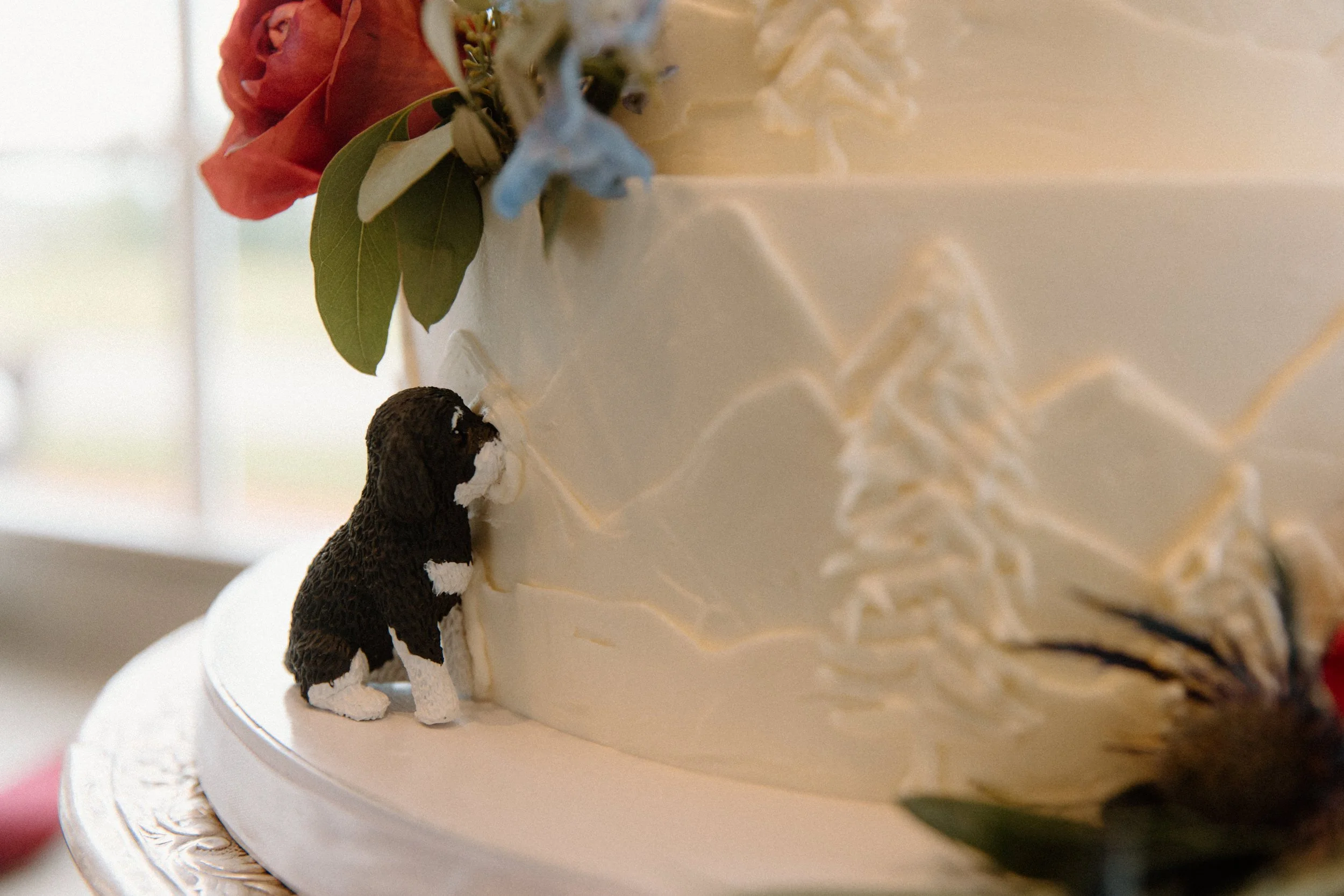 After their heartfelt vows, the celebration continued with an evening of laughter, delicious food, and unforgettable dance floor moments. Can we talk about that cake from The Makery?? The dog accessory was absolutely adorable and added such a fun touch to the cake.
