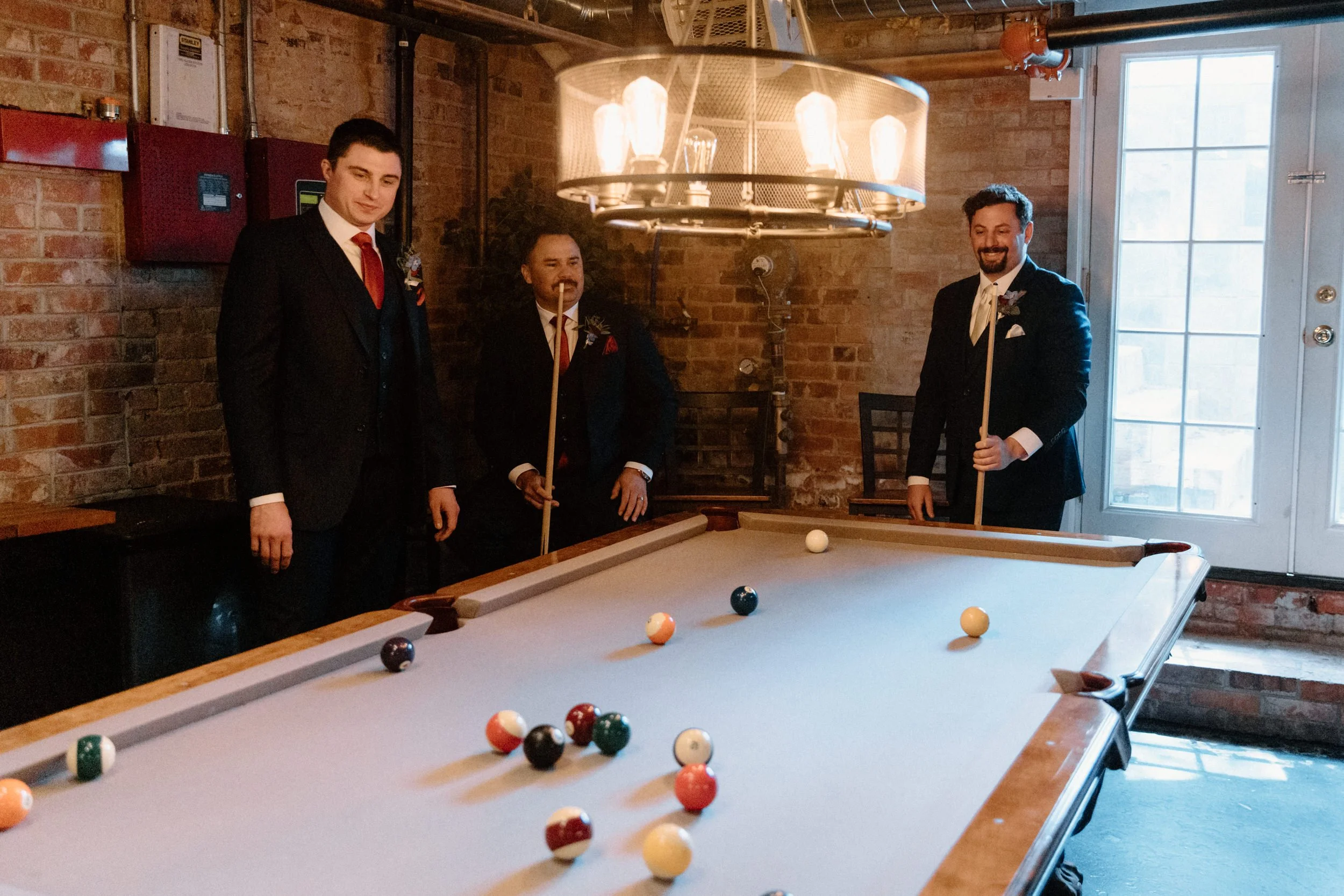 Eric and his groomsmen kicked off the day with a game of pool, sharing jokes and soaking in the excitement of what was to come. Meanwhile, Ashley and her bridal party were in full glam mode, getting ready with smiles, laughter, and a few happy tears.