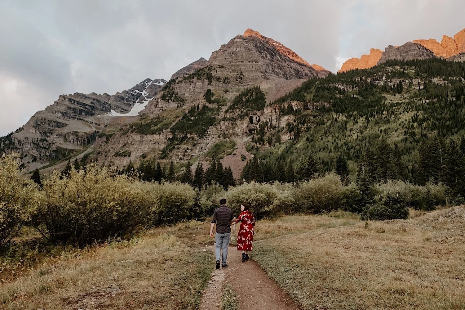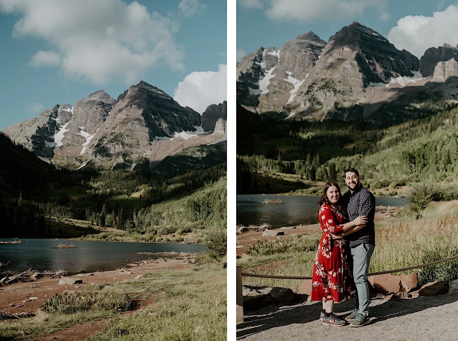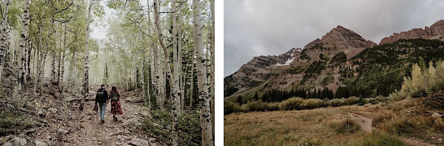 We woke up in the middle of the night and hiked in the dark up to Crater Lake in time to catch the sunrise. It was amazing! Thee Maroon Bells are absolutely stunning at sunrise, so it is always my favorite time of day to go – even though it means no sleep. Even though Emily and Evan were here from out of state – they were up for whatever and totally trusted me when I told them we need a 3am wake up call and to hike in the dark lol! I love it when couples are up for anything and just along for the adventure. We spent the morning hiking around the Maroon Bells, and ended with a nice brunch and mimosas.