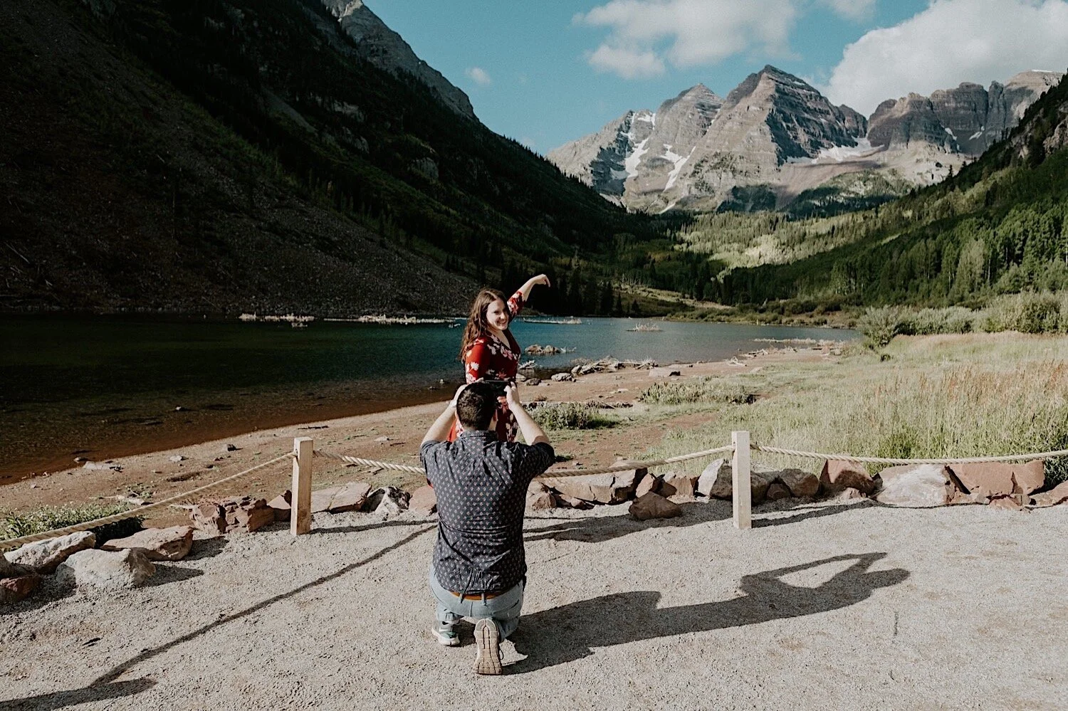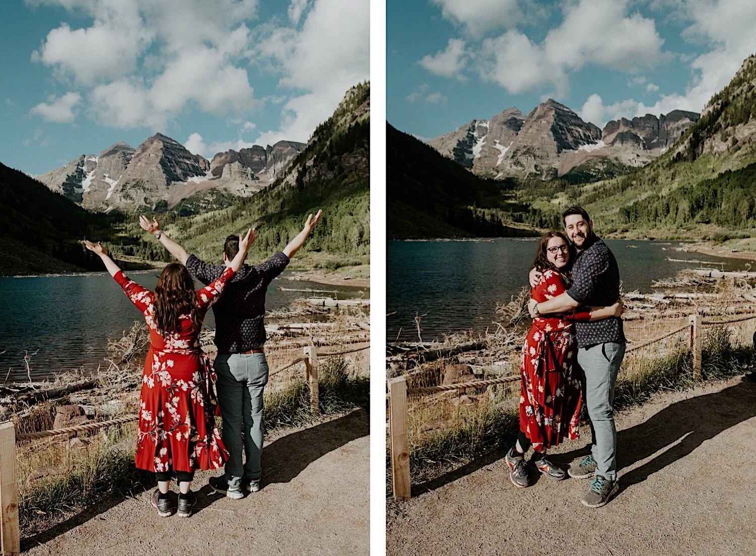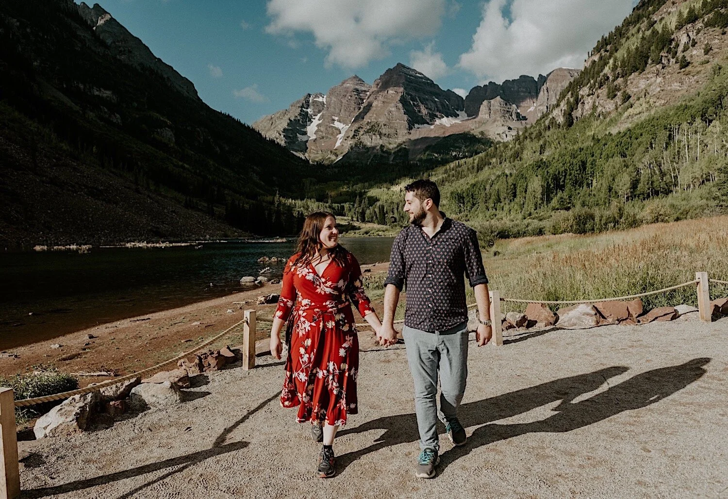 We woke up in the middle of the night and hiked in the dark up to Crater Lake in time to catch the sunrise. It was amazing! Thee Maroon Bells are absolutely stunning at sunrise, so it is always my favorite time of day to go – even though it means no sleep. Even though Emily and Evan were here from out of state – they were up for whatever and totally trusted me when I told them we need a 3am wake up call and to hike in the dark lol! I love it when couples are up for anything and just along for the adventure. We spent the morning hiking around the Maroon Bells, and ended with a nice brunch and mimosas.