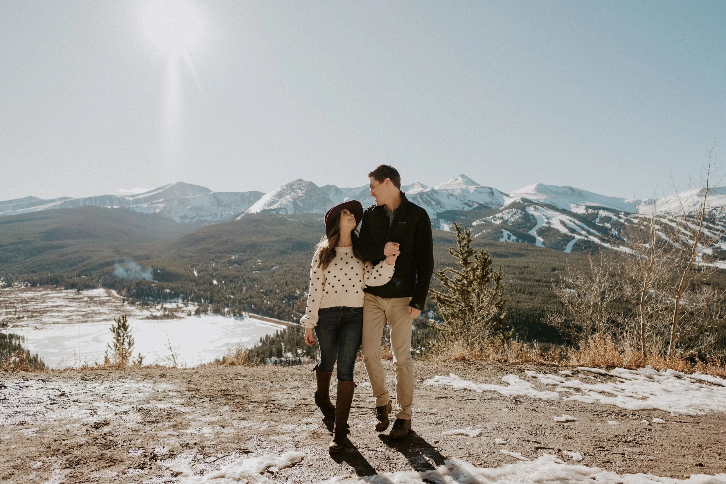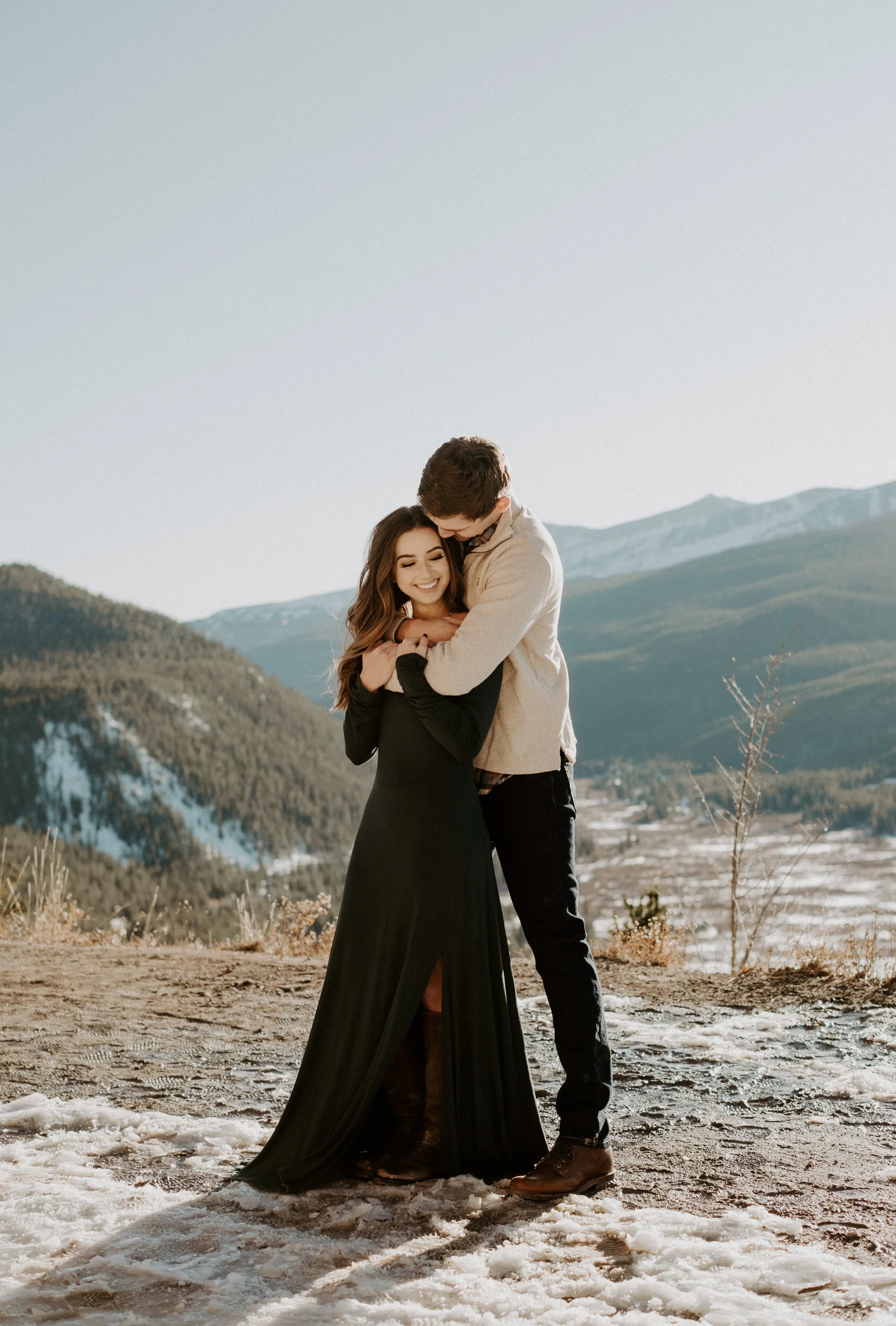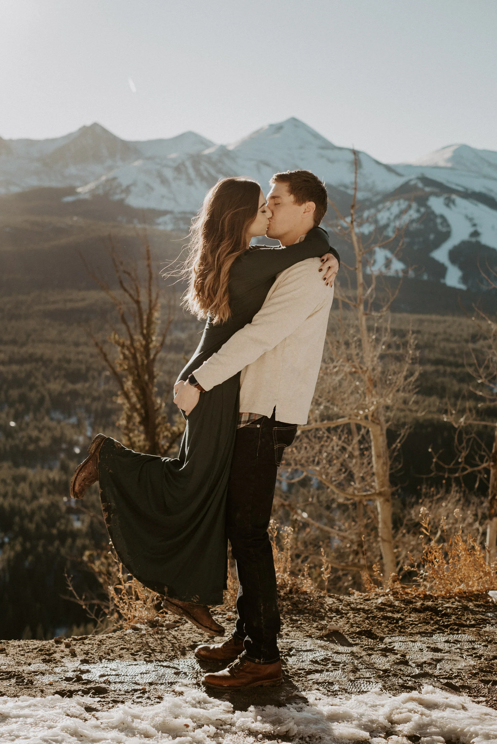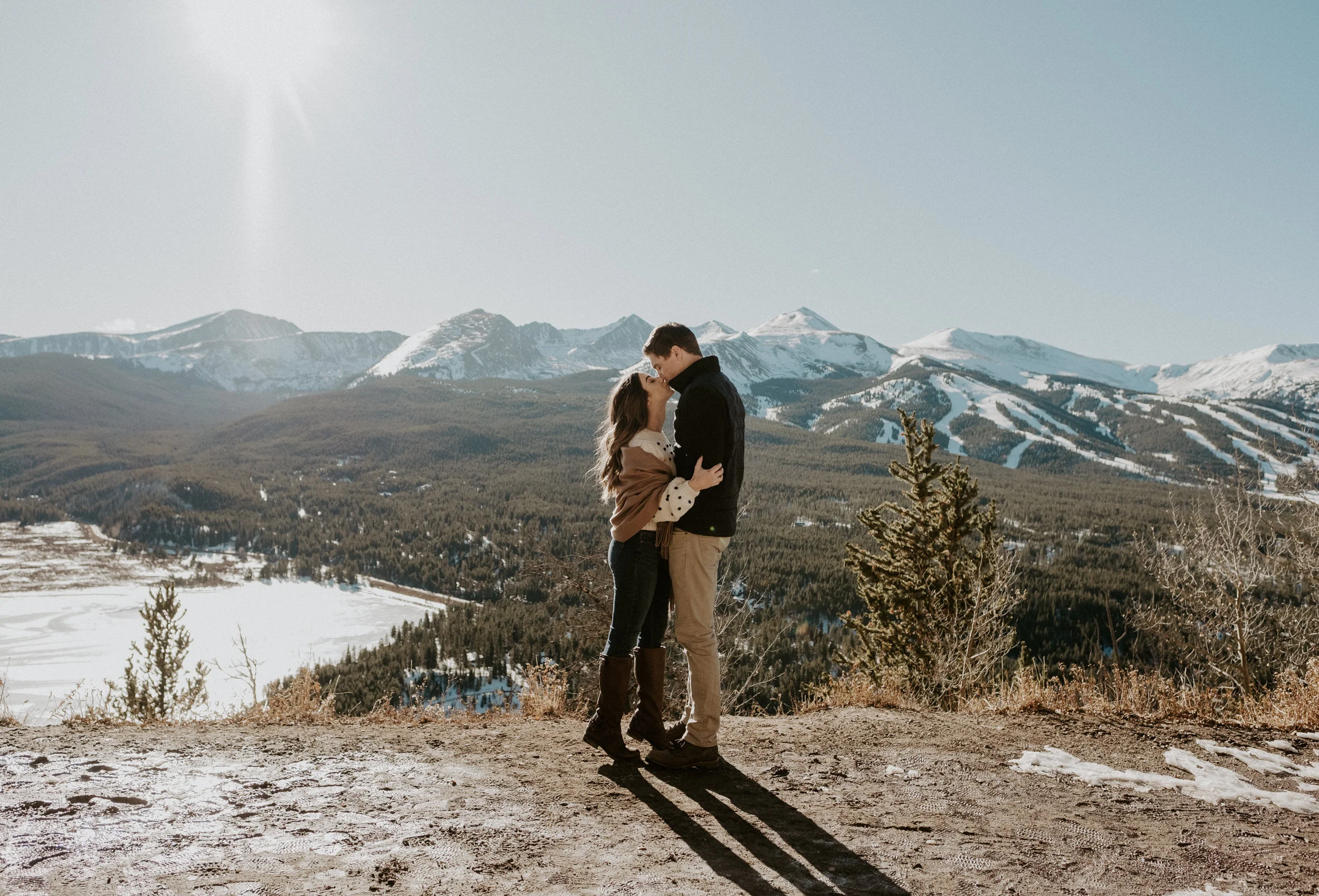 Abbey and Collin’s adventure engagement session at Boreas Pass in Breckenridge, Colorado this past winter was such a blast and so much fun to photograph! Boreas Pass in Breckenridge is one of my favorite locations in Summit County, especially in the winter! It has such amazing views and is absolutely gorgeous! We had such a fun time exploring, hanging out, and taking photos. If you’re considering engagement photos in Breckenridge – check out Boreas Pass! It is such a gorgeous location for an elopement, intimate wedding, or engagement session.