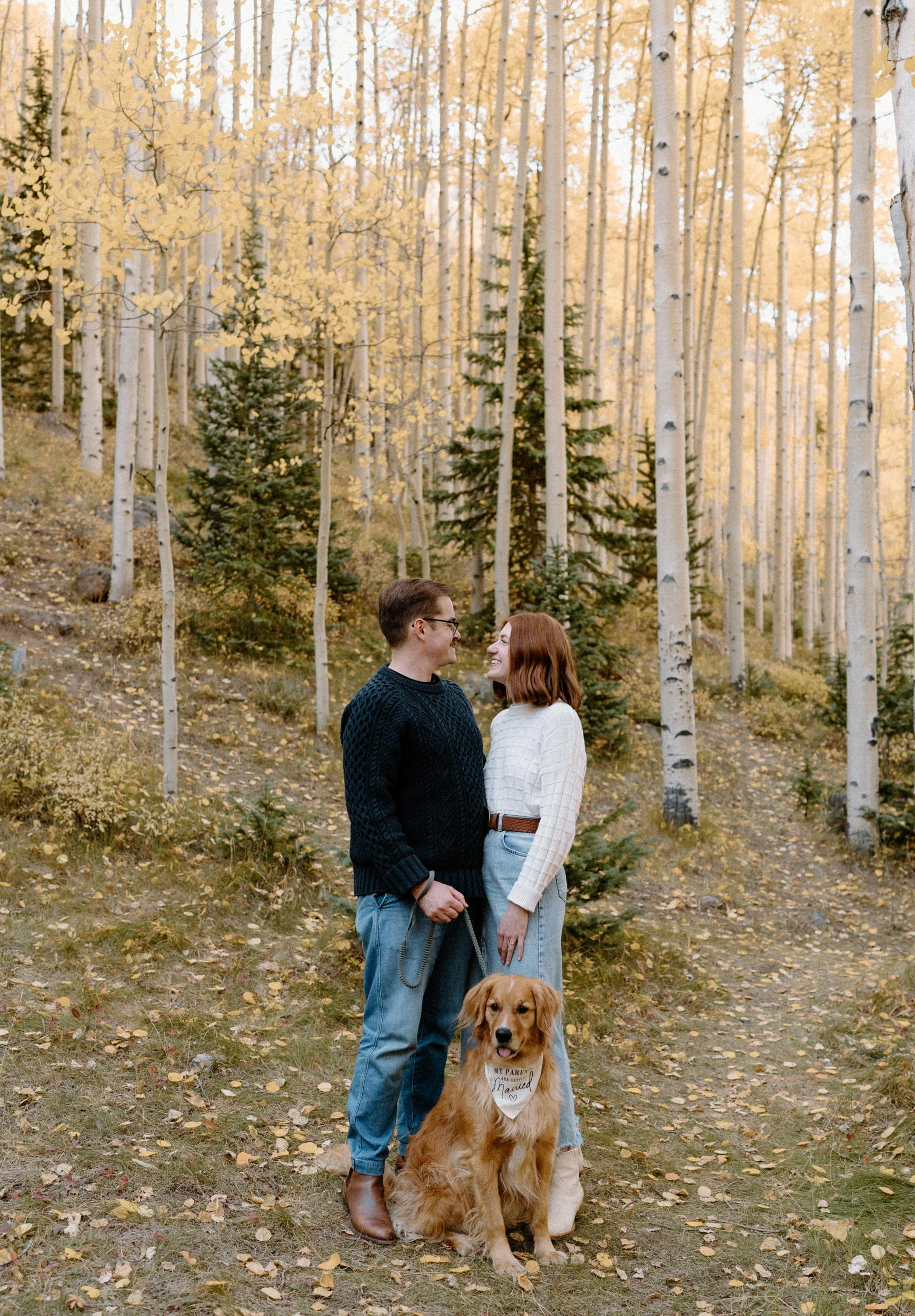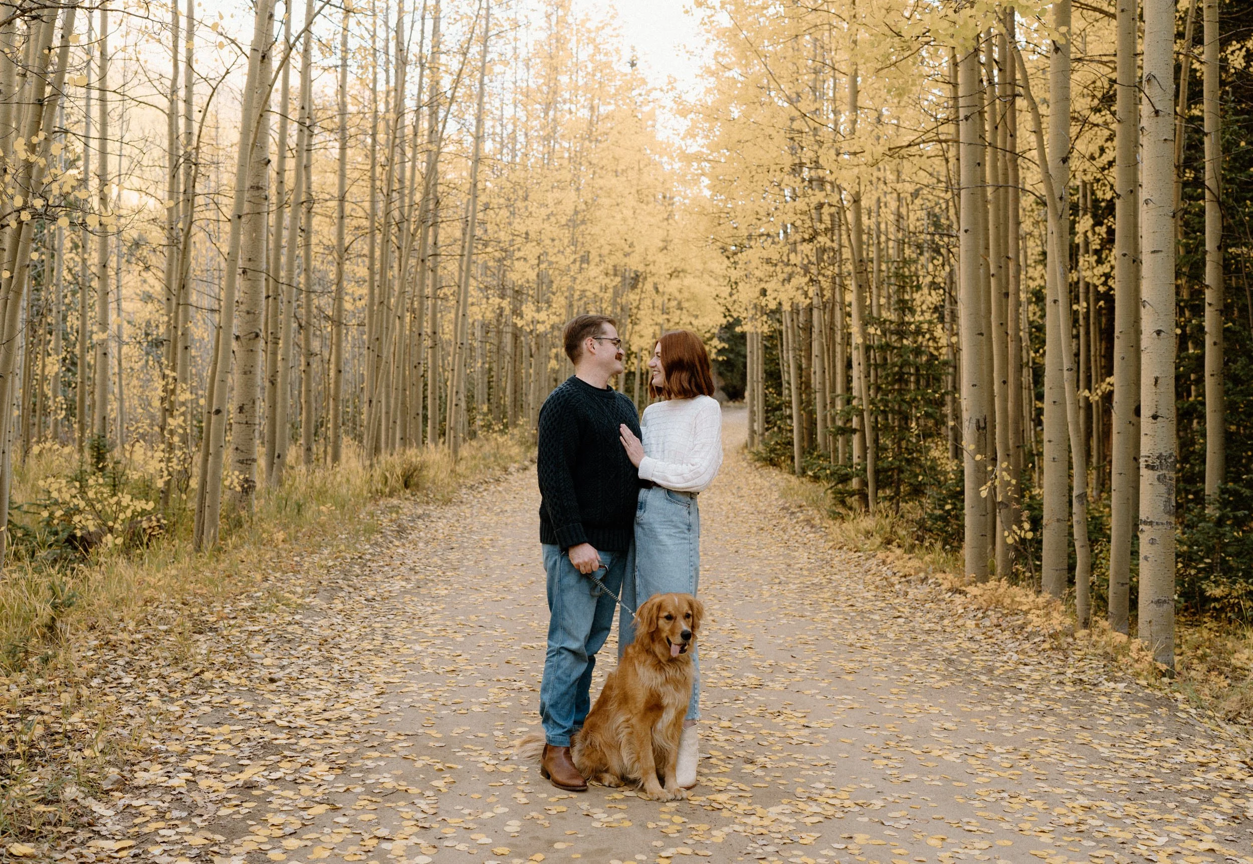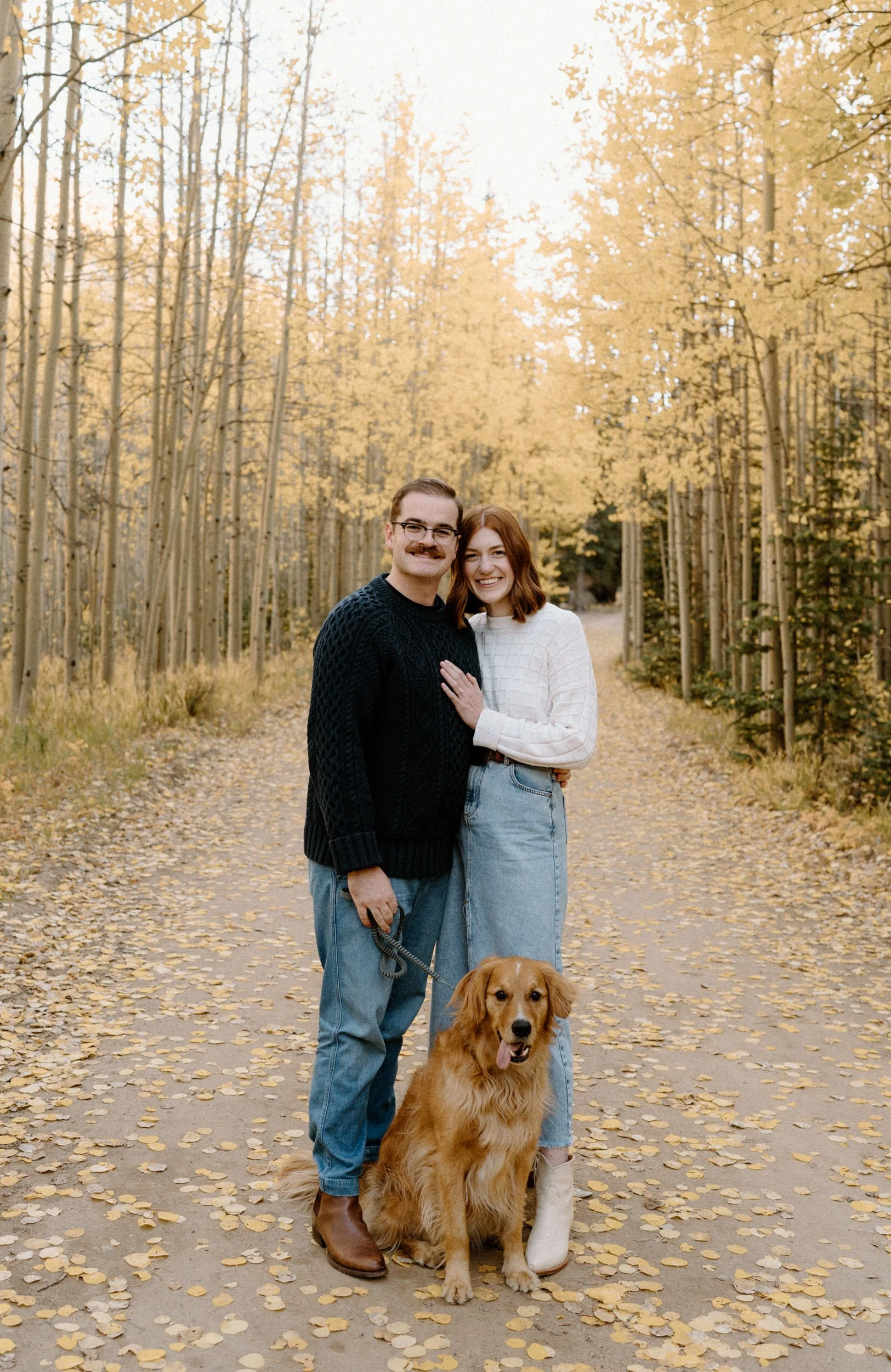 There’s something undeniably magical about Guanella Pass in the fall. With golden aspens stretching as far as the eye can see and crisp mountain air that makes everything feel a little more alive, it’s the perfect backdrop for an engagement session. Add in a couple madly in love and their playful golden retriever, and you’ve got a recipe for pure photo perfection.