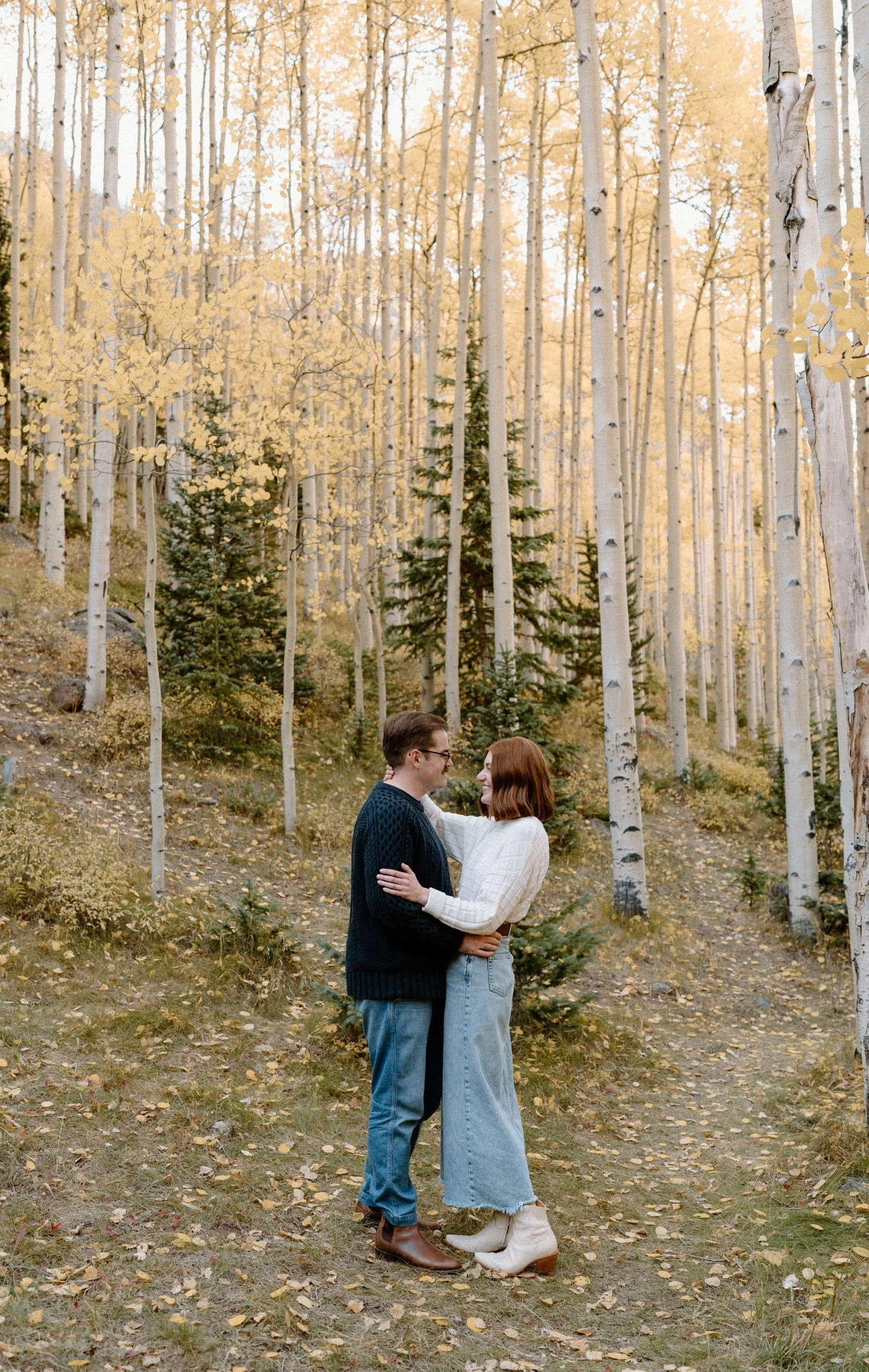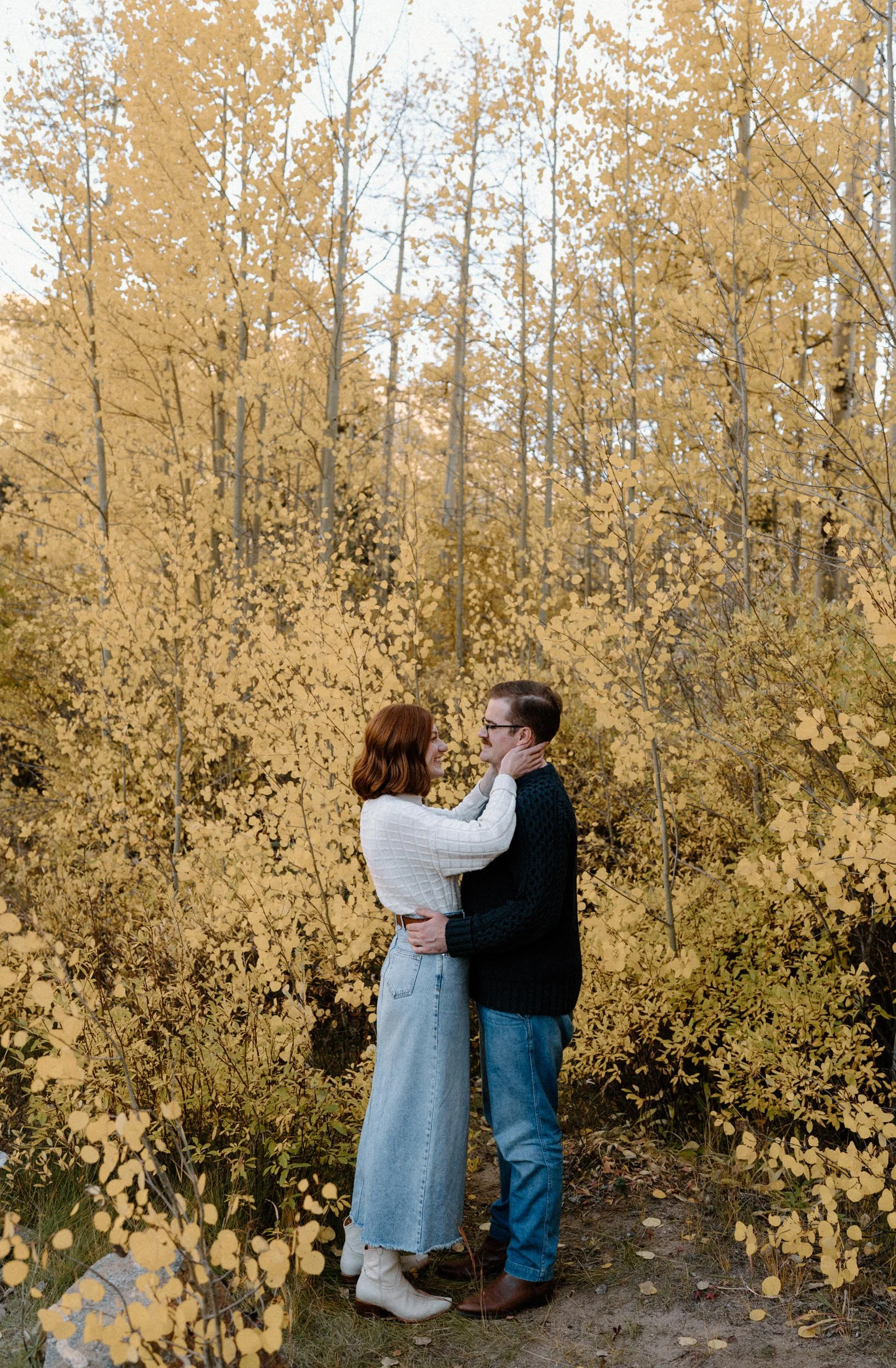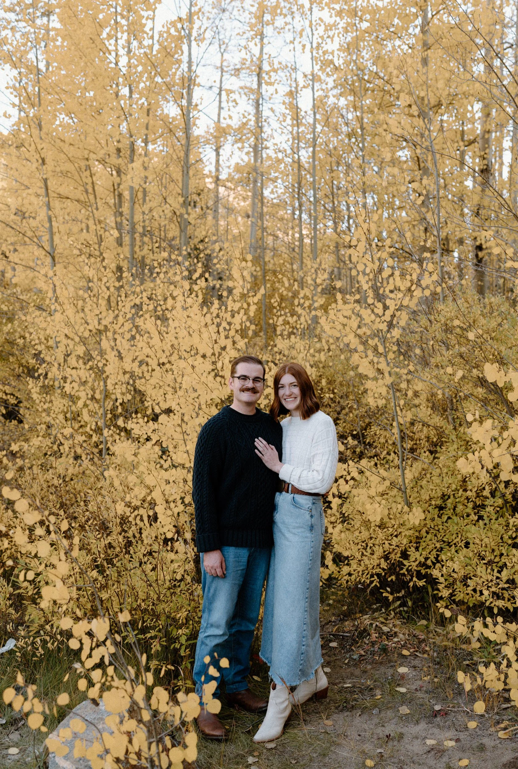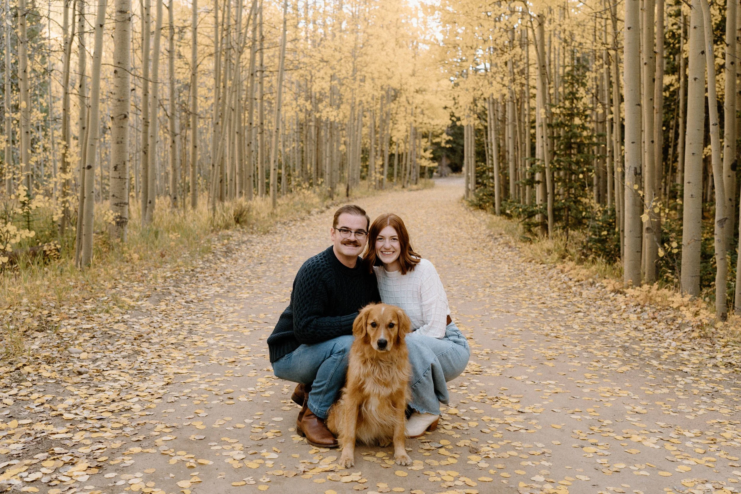 There’s something undeniably magical about Guanella Pass in the fall. With golden aspens stretching as far as the eye can see and crisp mountain air that makes everything feel a little more alive, it’s the perfect backdrop for an engagement session. Add in a couple madly in love and their playful golden retriever, and you’ve got a recipe for pure photo perfection.