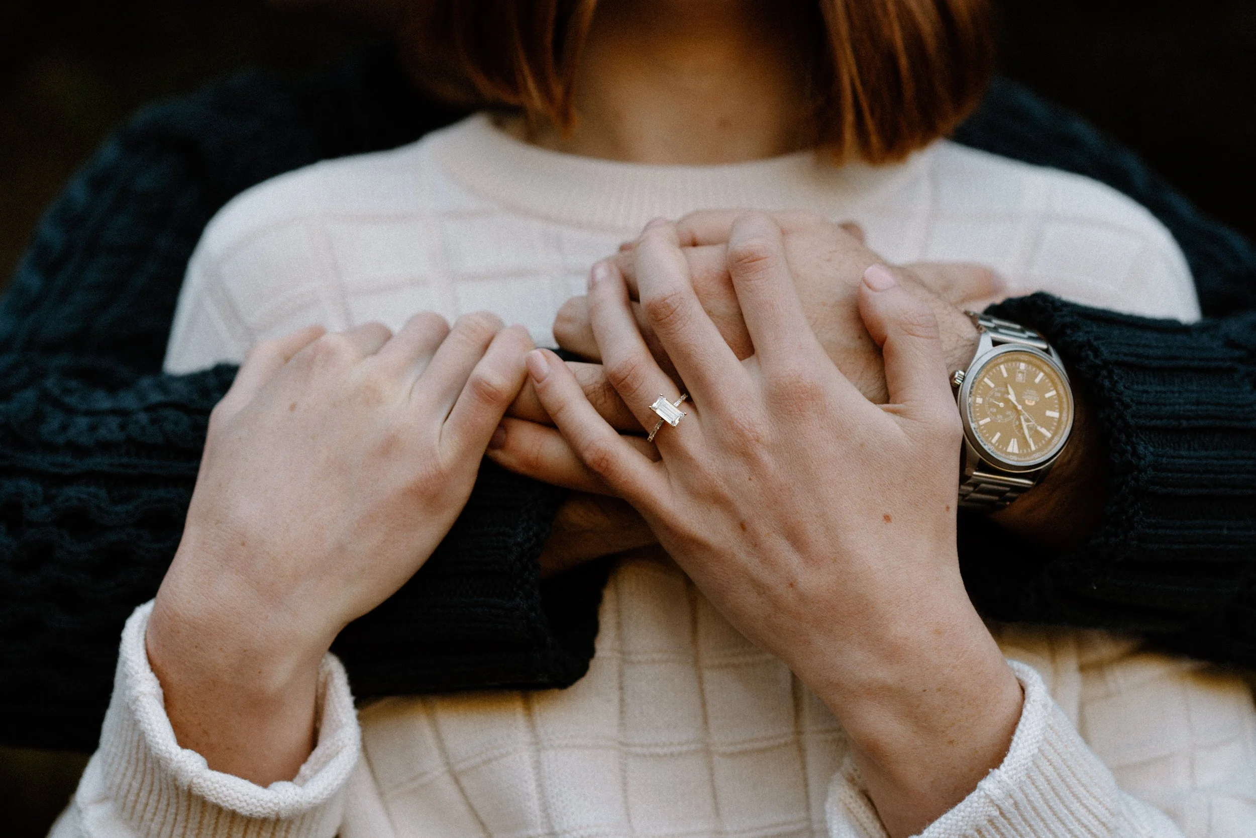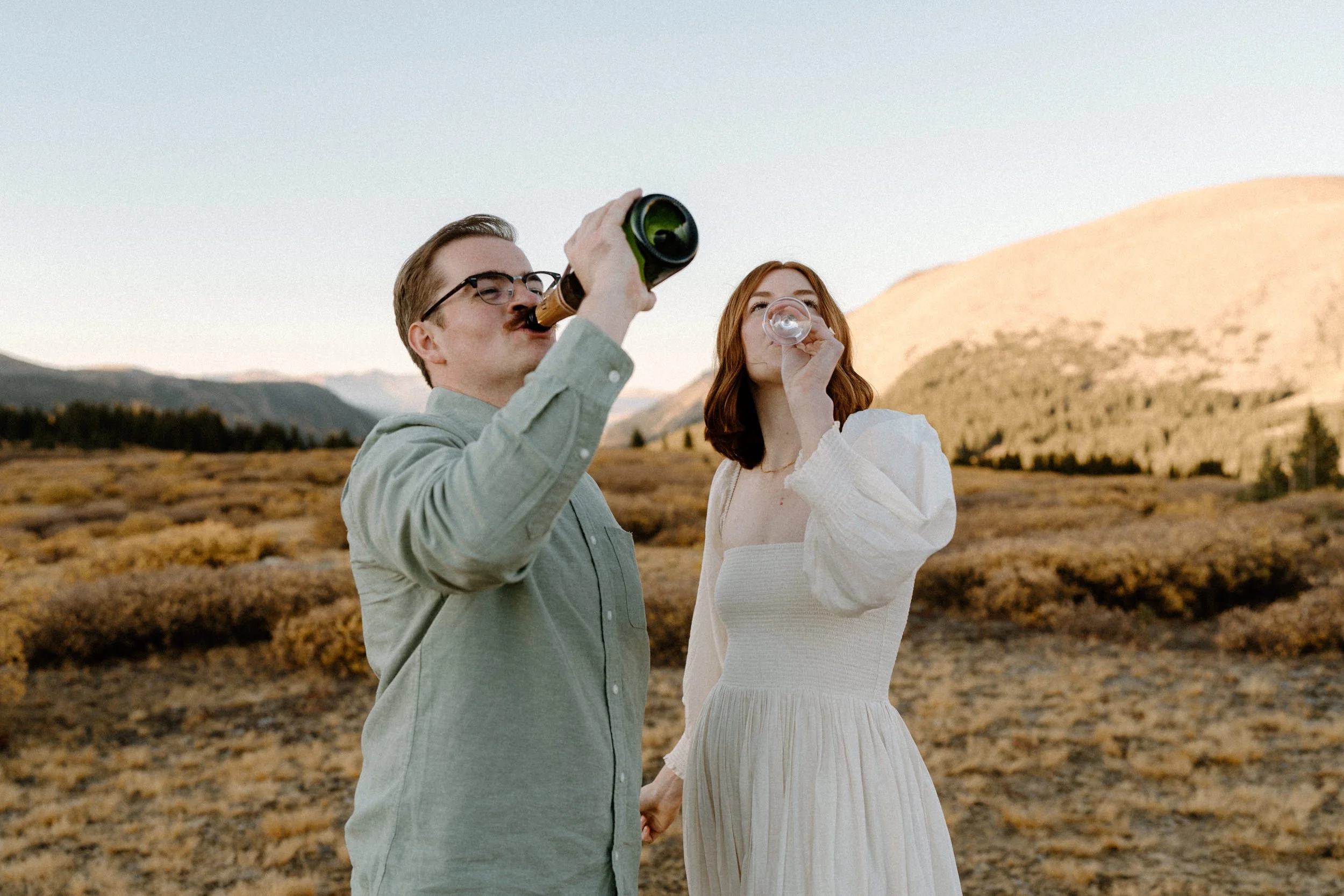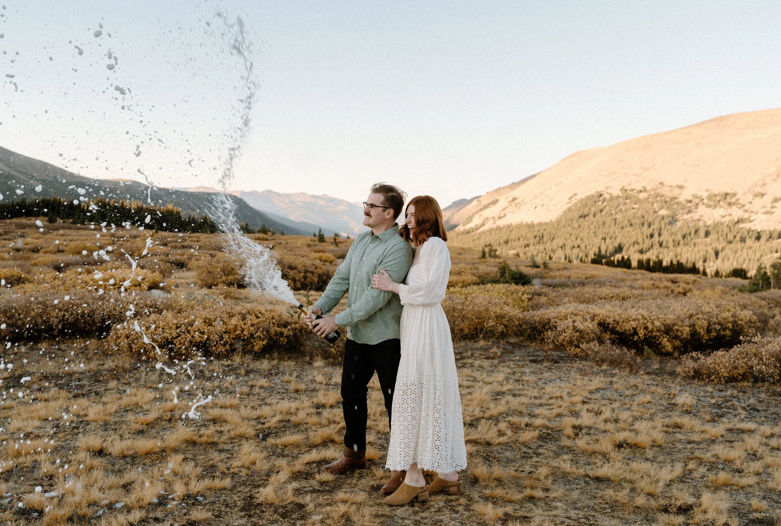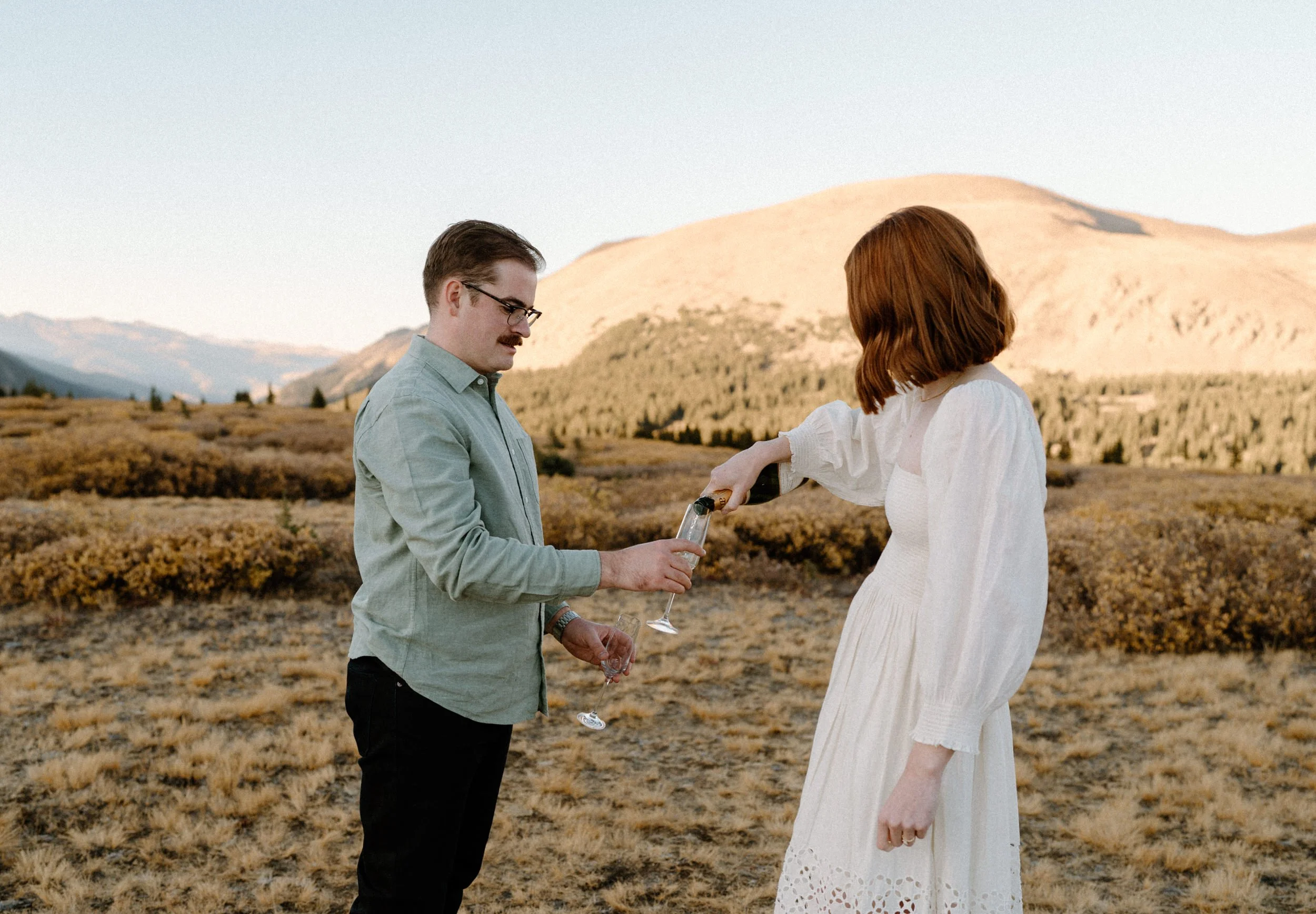 As the sun dipped lower, we found the perfect spot to pop a bottle of champagne. The cork flew, bubbles spilled, and laughter echoed through the valley. You could feel the excitement from a mile away! It was the perfect way to celebrate not just their engagement, but the beginning of a lifetime of adventure together.