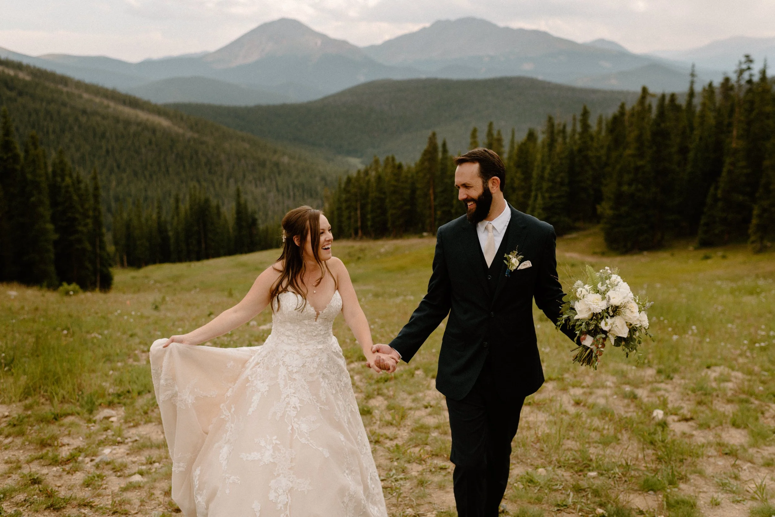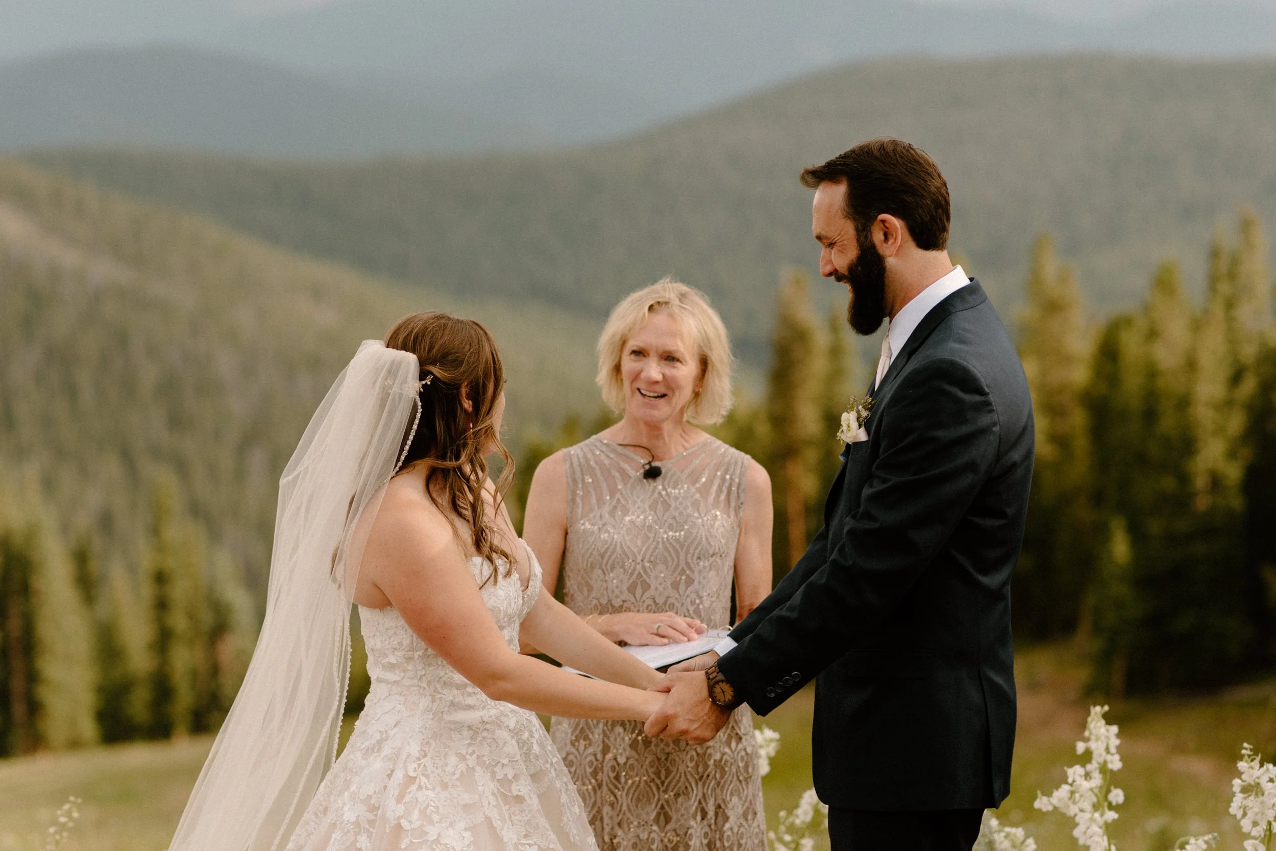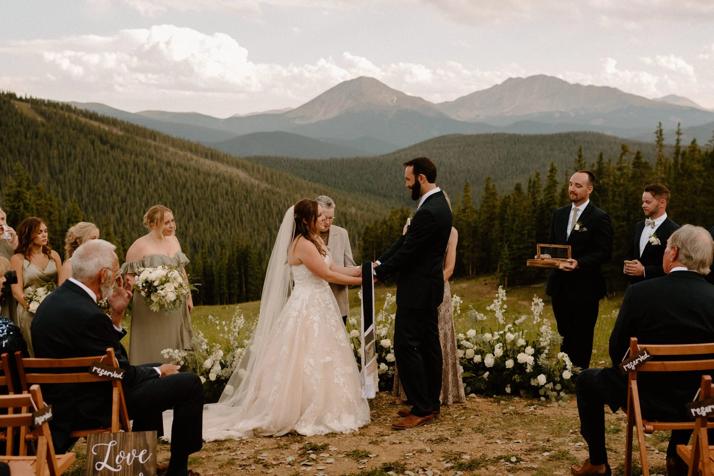 We started Mallory and Nick’s day out in Keystone getting ready and doing their first look and some photos at the river at the base of the gondola before we headed up top. Once we arrived to the top for their ceremony, these two had the most perfect day filled with so much love and laughter. It was so much fun getting to be a part of their wedding day and also their engagement session up on Guanella Pass the year prior!