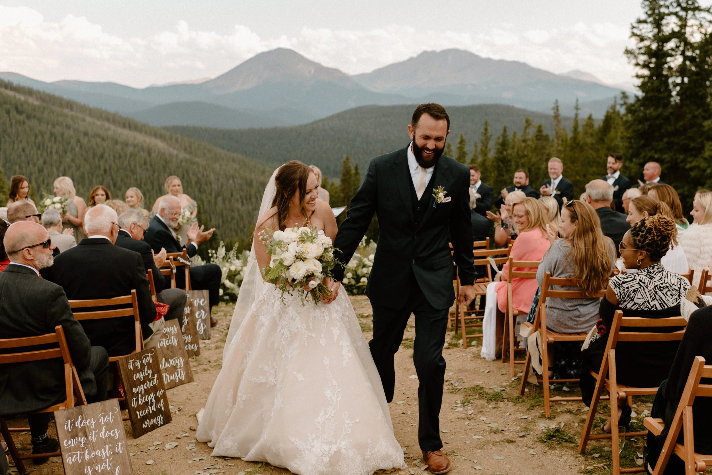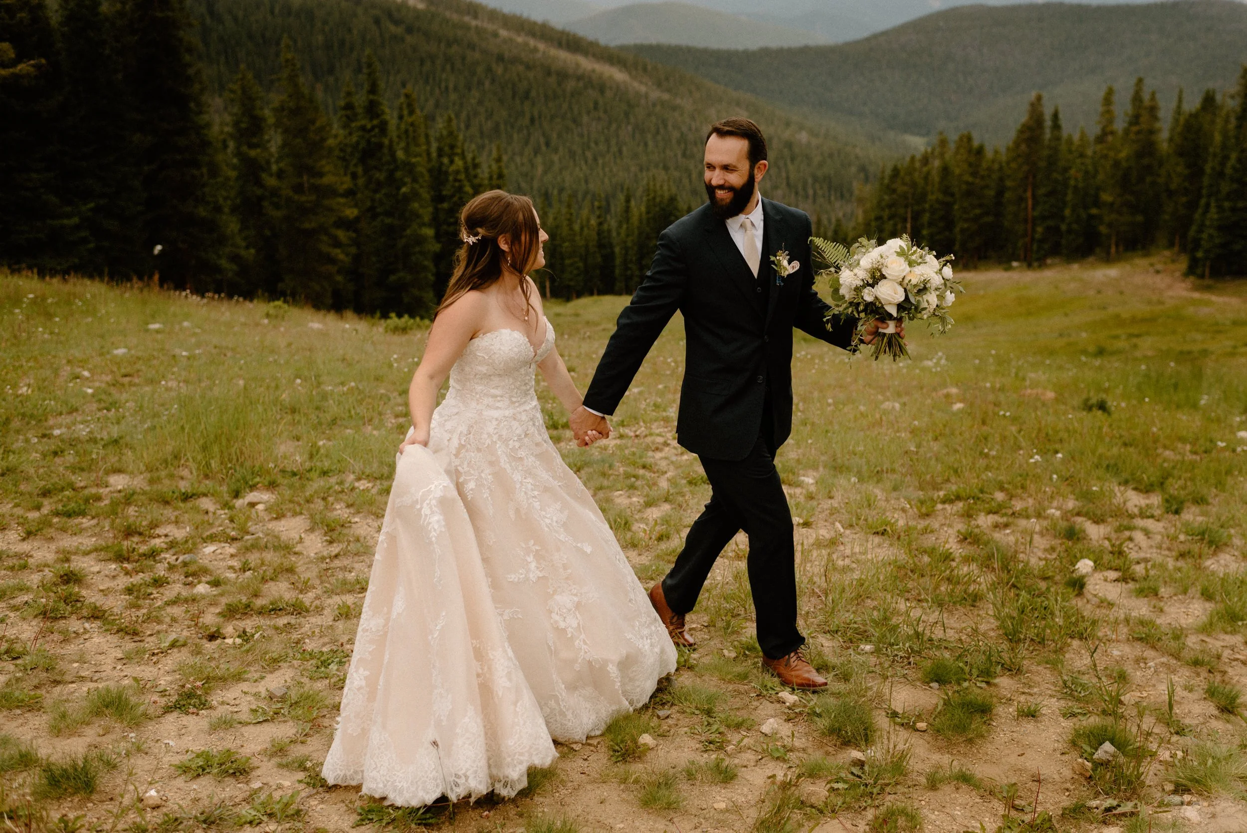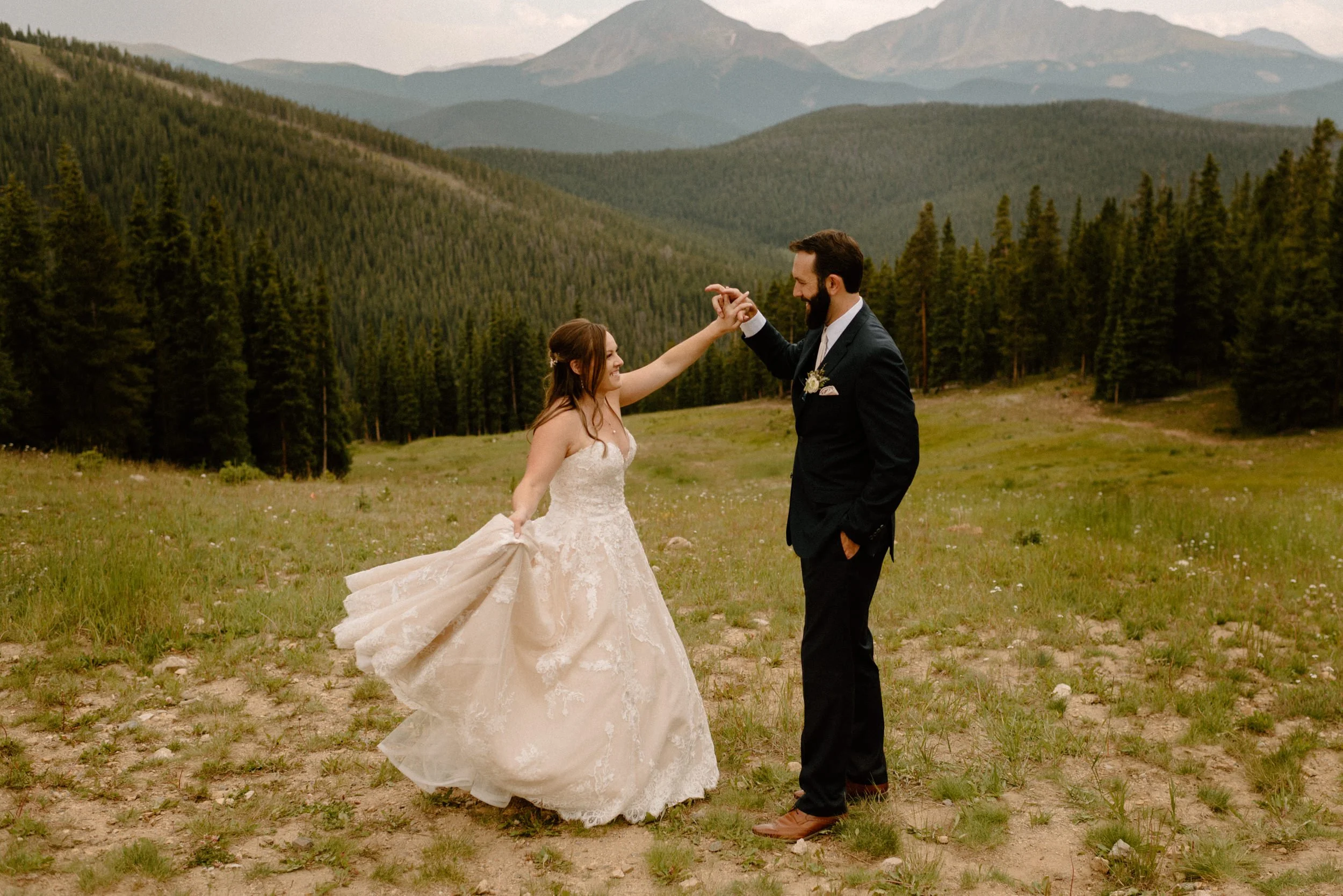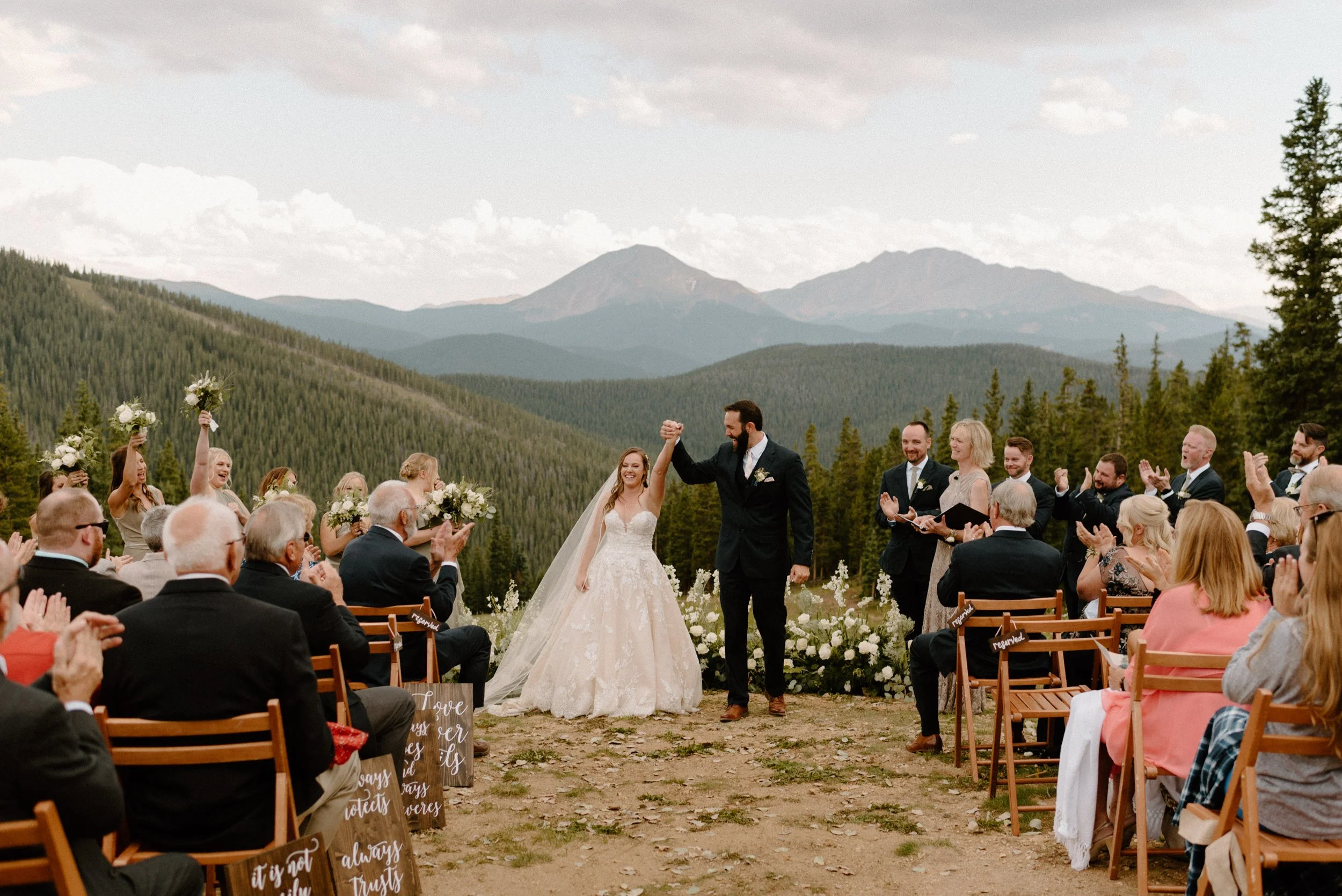We started Mallory and Nick’s day out in Keystone getting ready and doing their first look and some photos at the river at the base of the gondola before we headed up top. Once we arrived to the top for their ceremony, these two had the most perfect day filled with so much love and laughter. It was so much fun getting to be a part of their wedding day and also their engagement session up on Guanella Pass the year prior!