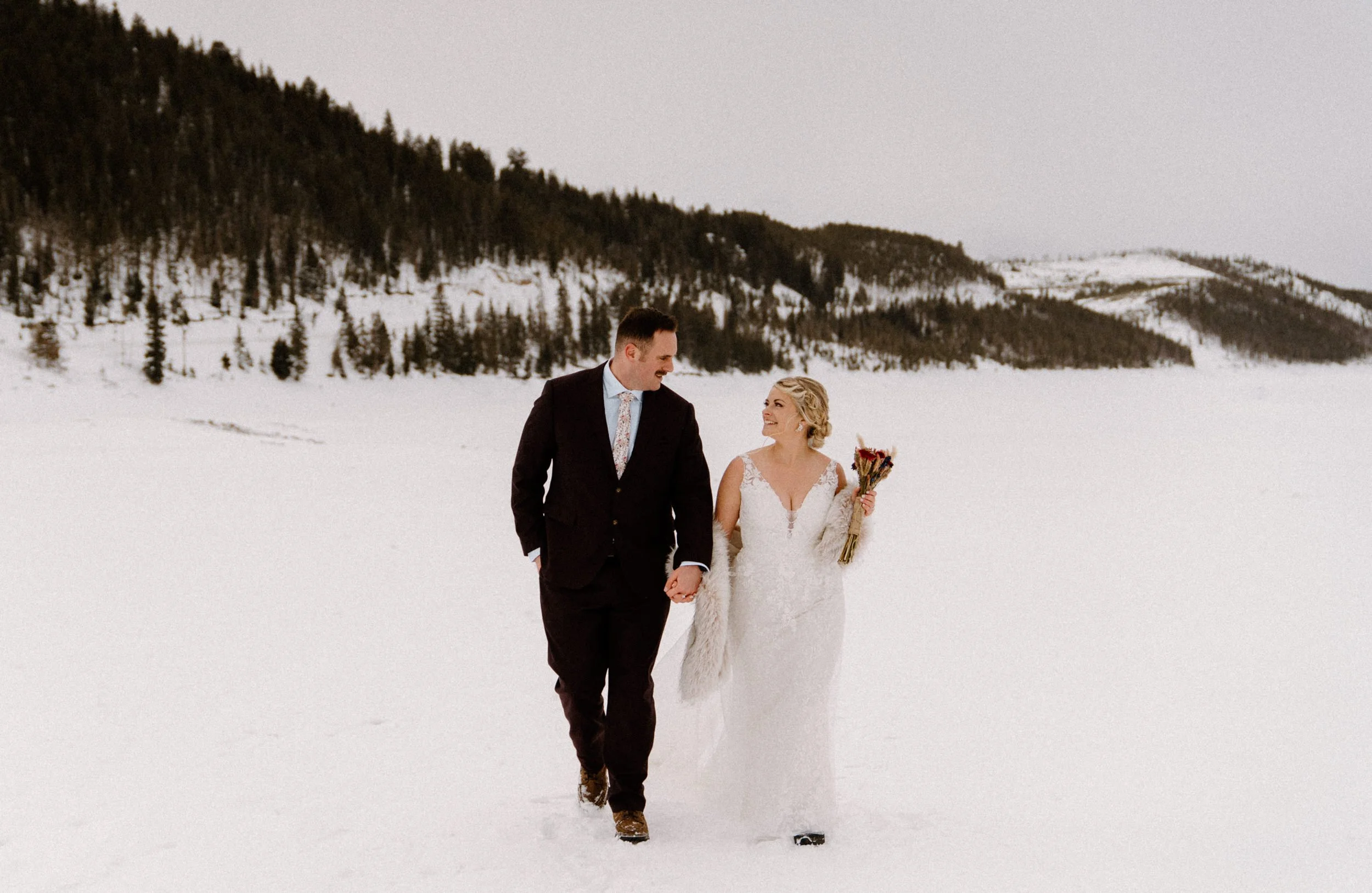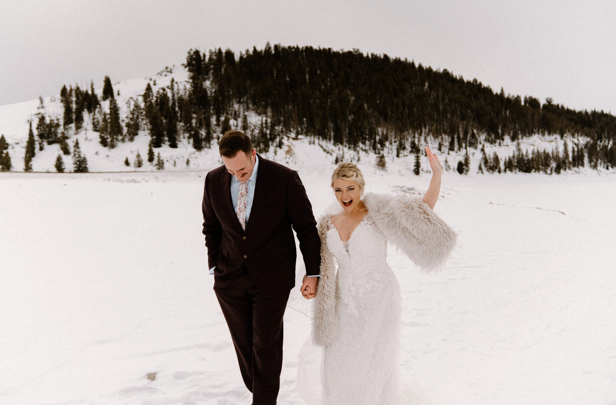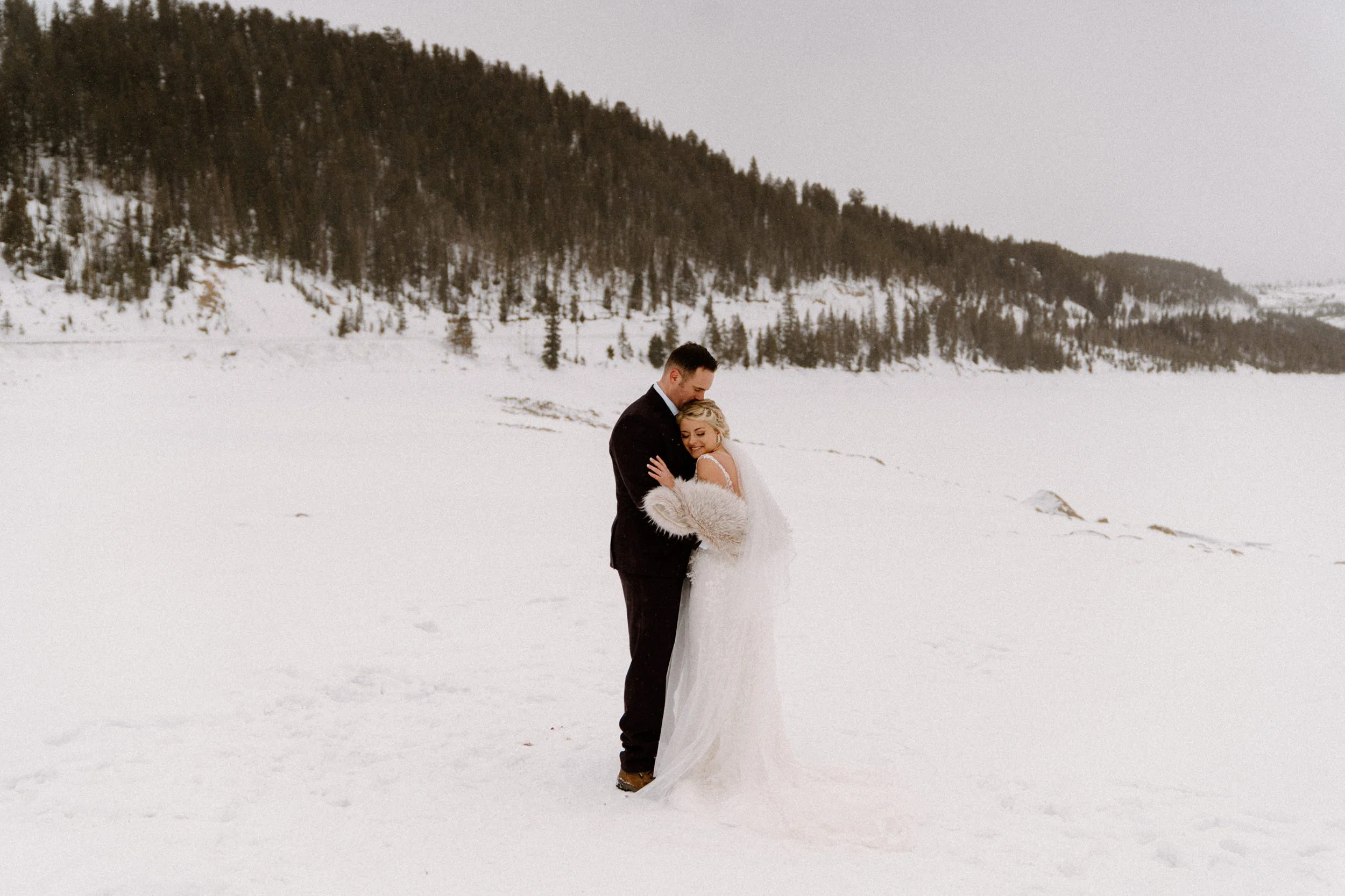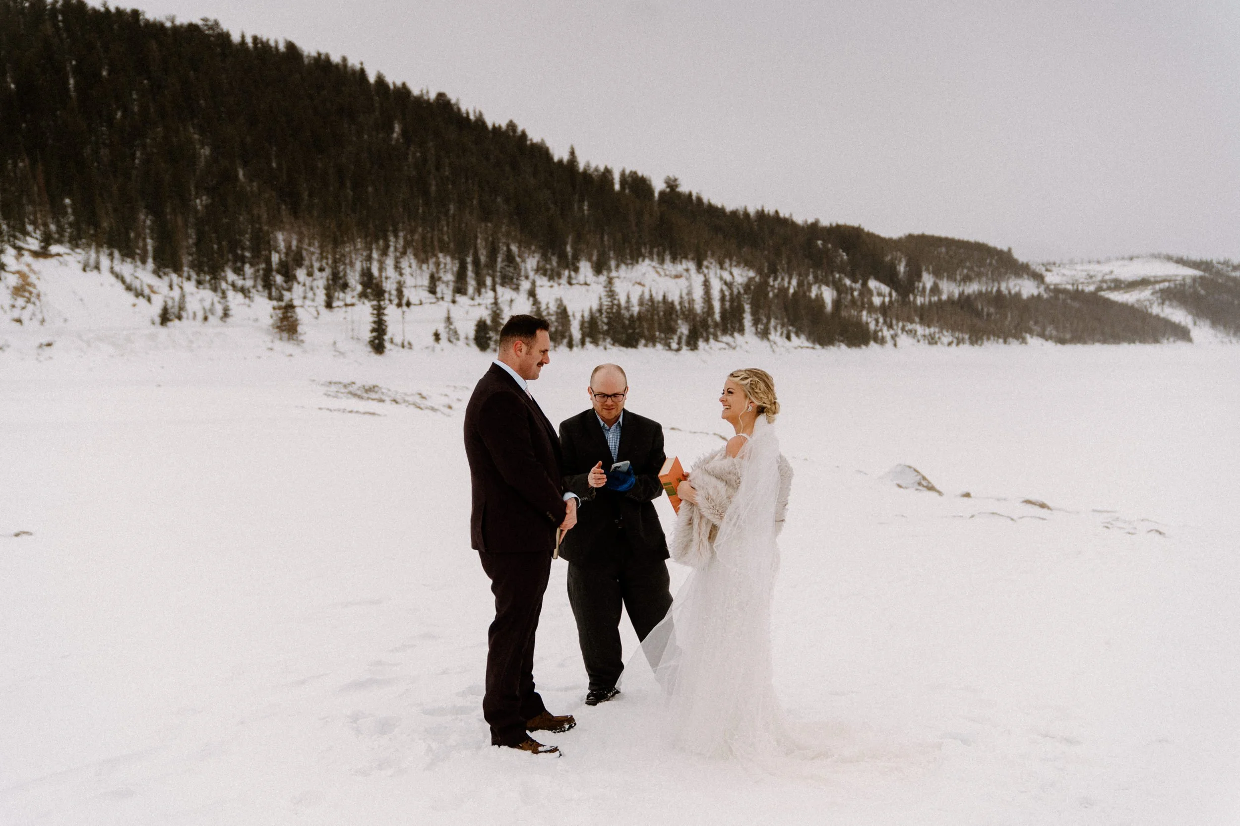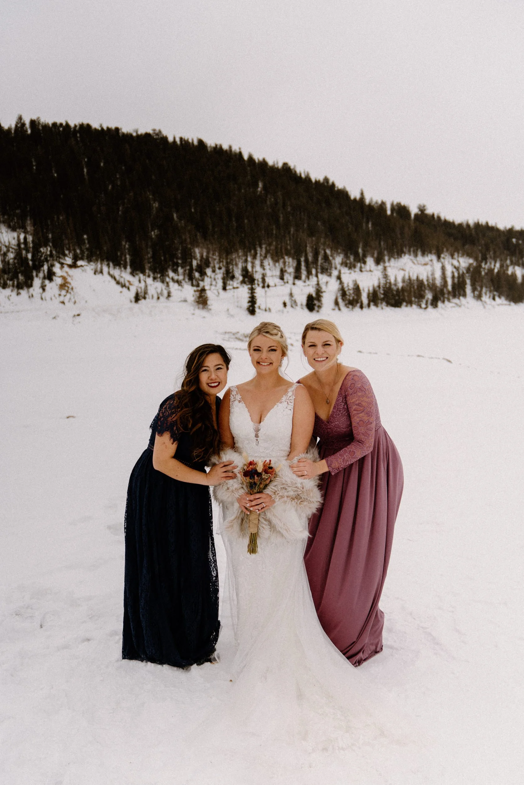 Like so many couples navigating the craziness of planning a wedding during a pandemic, Dayna and Justin decided to have a small, intimate elopement with a few of their closest friends. We decided on Lake Dillon near Breckenridge, Colorado because it’s easy to access year round, in an awesome location, and it’s absolutely stunning! Of course on the day of Justin and Dayna’s elopement it was record freezing cold temps. These two made the most of it and were determined to have the most fun day ever even if it was freezing outside!