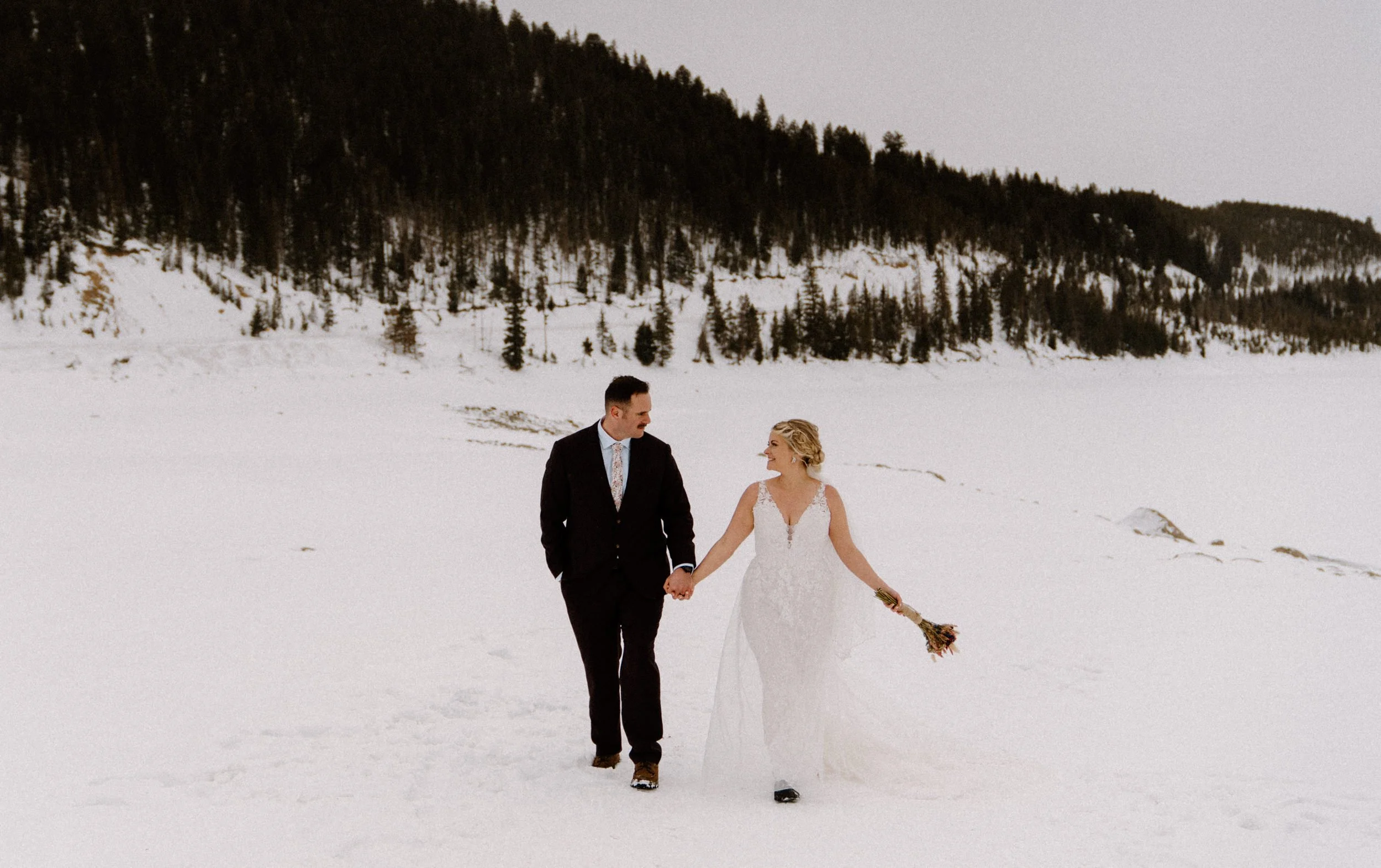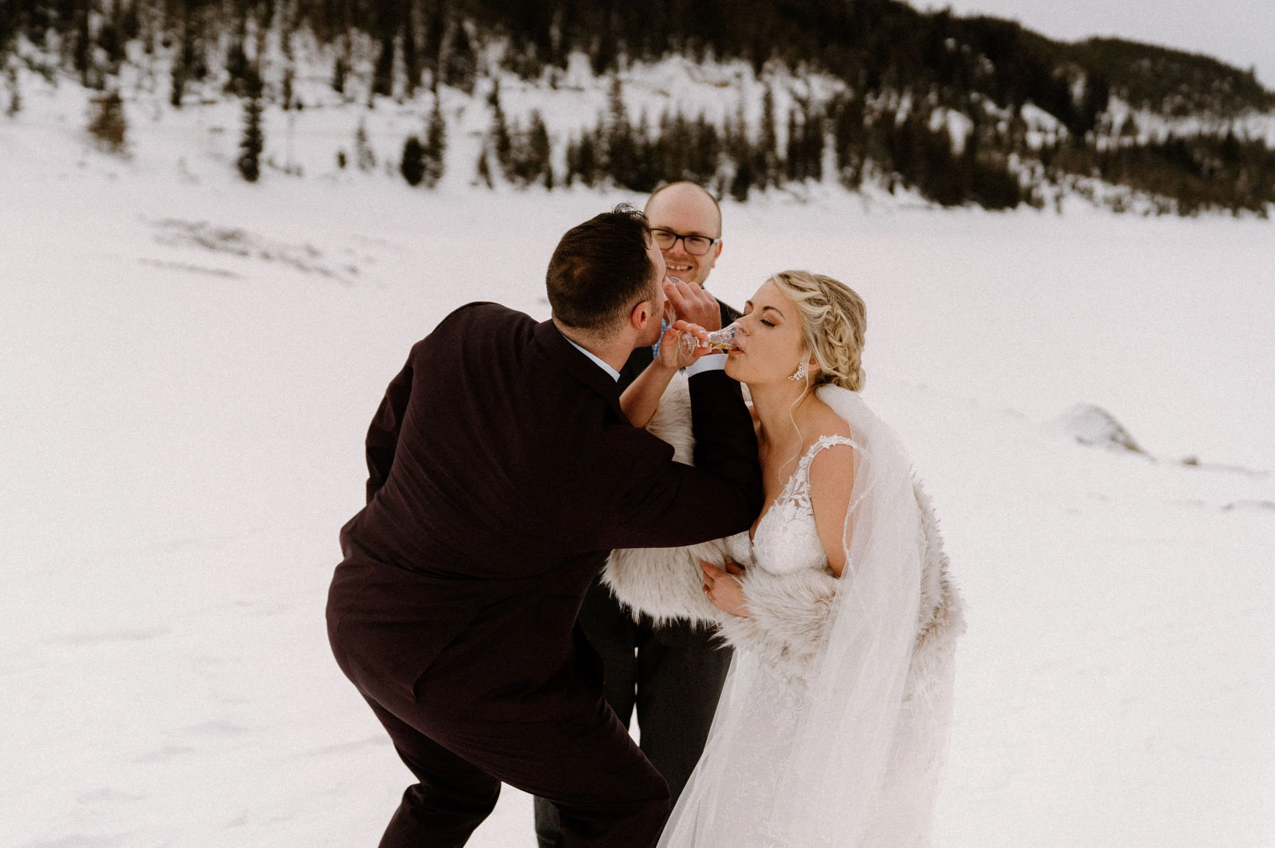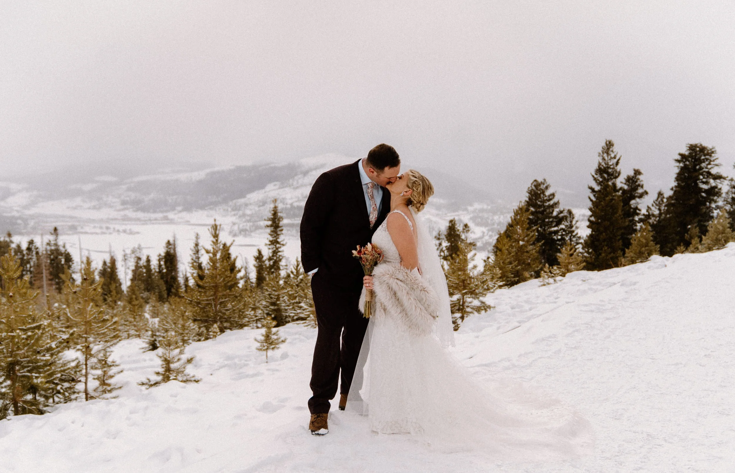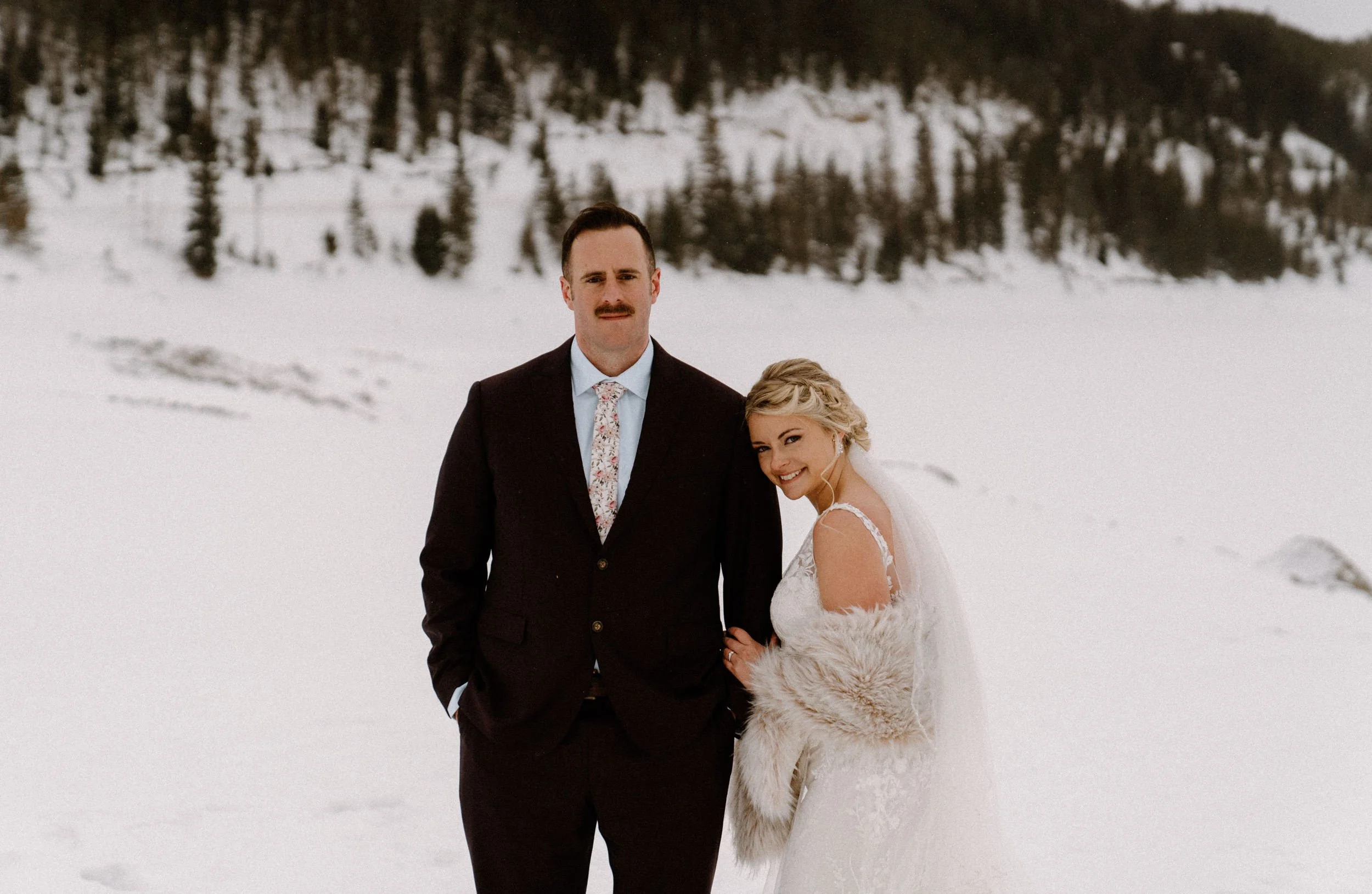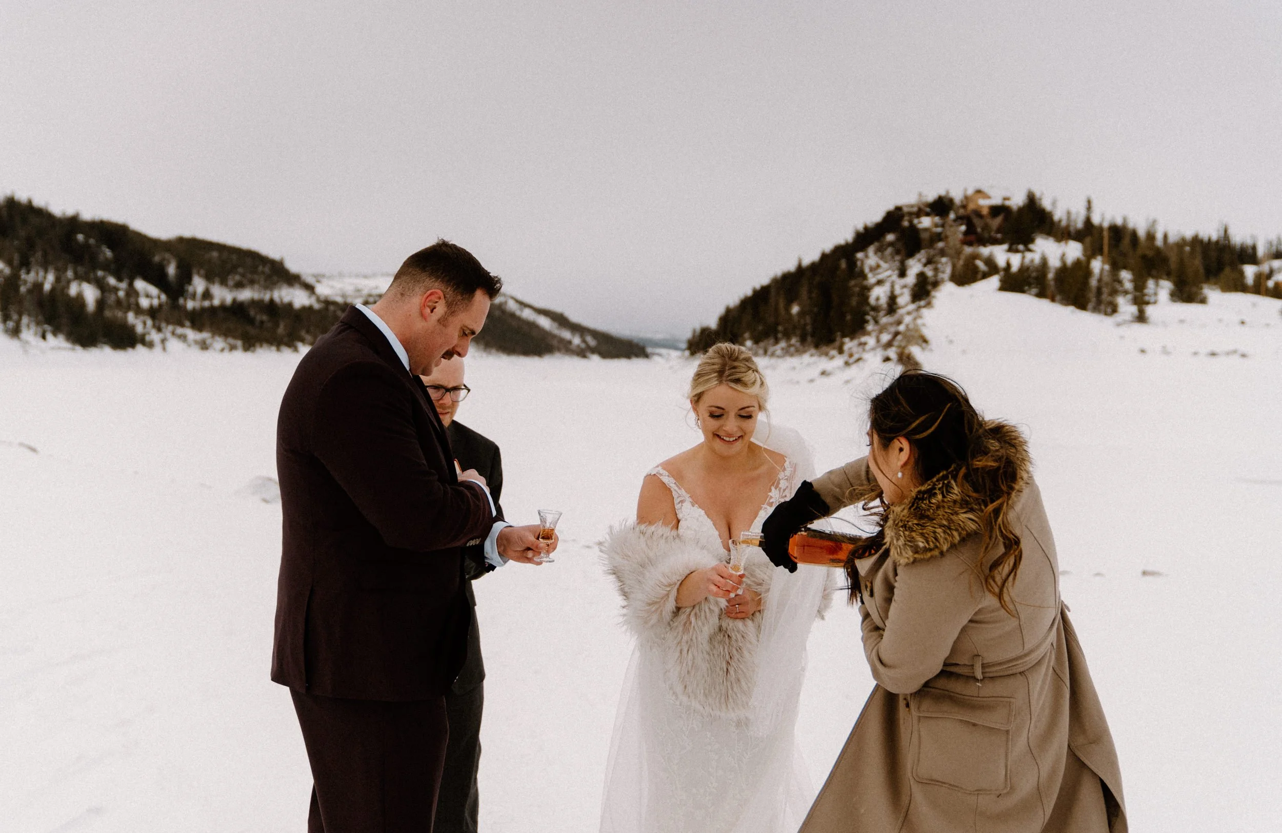 Like so many couples navigating the craziness of planning a wedding during a pandemic, Dayna and Justin decided to have a small, intimate elopement with a few of their closest friends. We decided on Lake Dillon near Breckenridge, Colorado because it’s easy to access year round, in an awesome location, and it’s absolutely stunning! Of course on the day of Justin and Dayna’s elopement it was record freezing cold temps. These two made the most of it and were determined to have the most fun day ever even if it was freezing outside!
