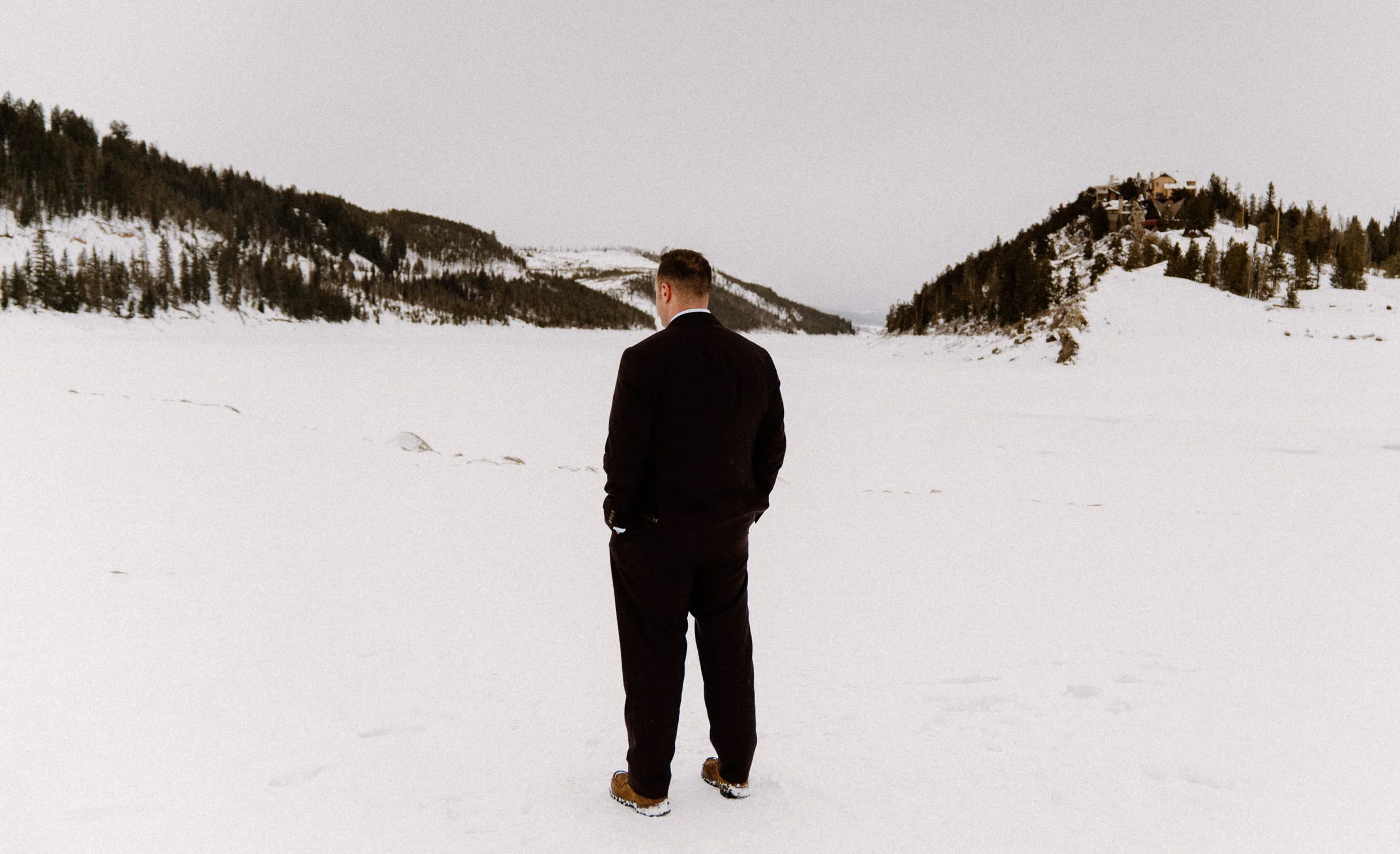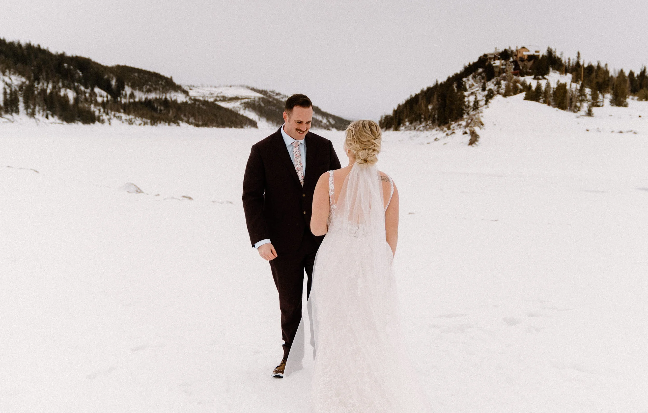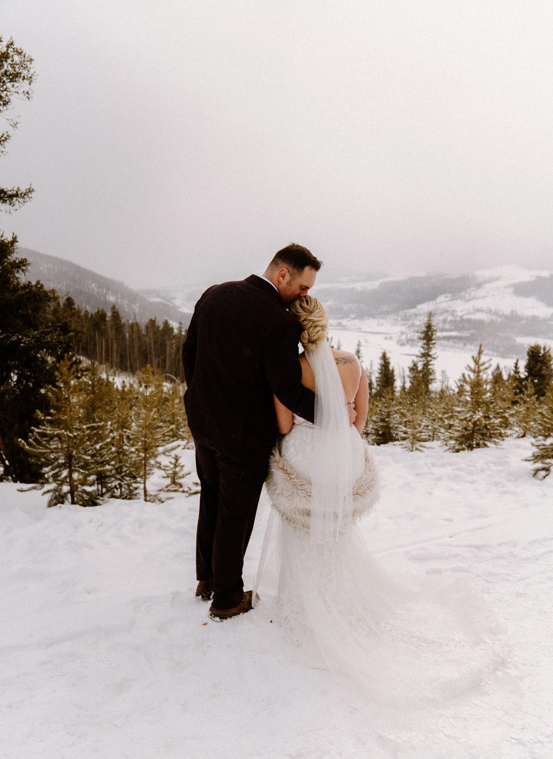 We started Dayna and Justin’s elopement day at the base of Lake Dillon where they had the the cutest first look, followed by a super sweet ceremony and exchanging of their vows. After that we took some photos with their friends before venturing off! Dayna, Justin and I spent the rest of the afternoon freezing our butts off wandering around lake Dillon and taking portraits in different spots. It was such a fun, low key, no stress day and a winter wonderland!