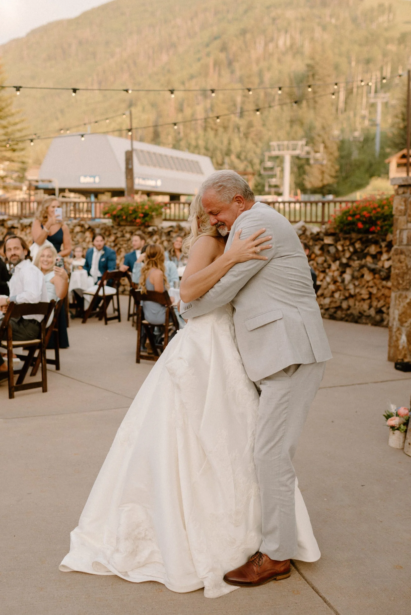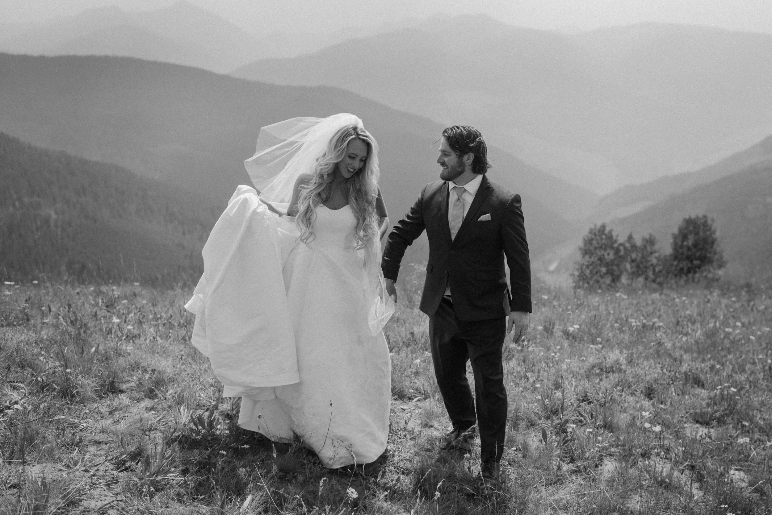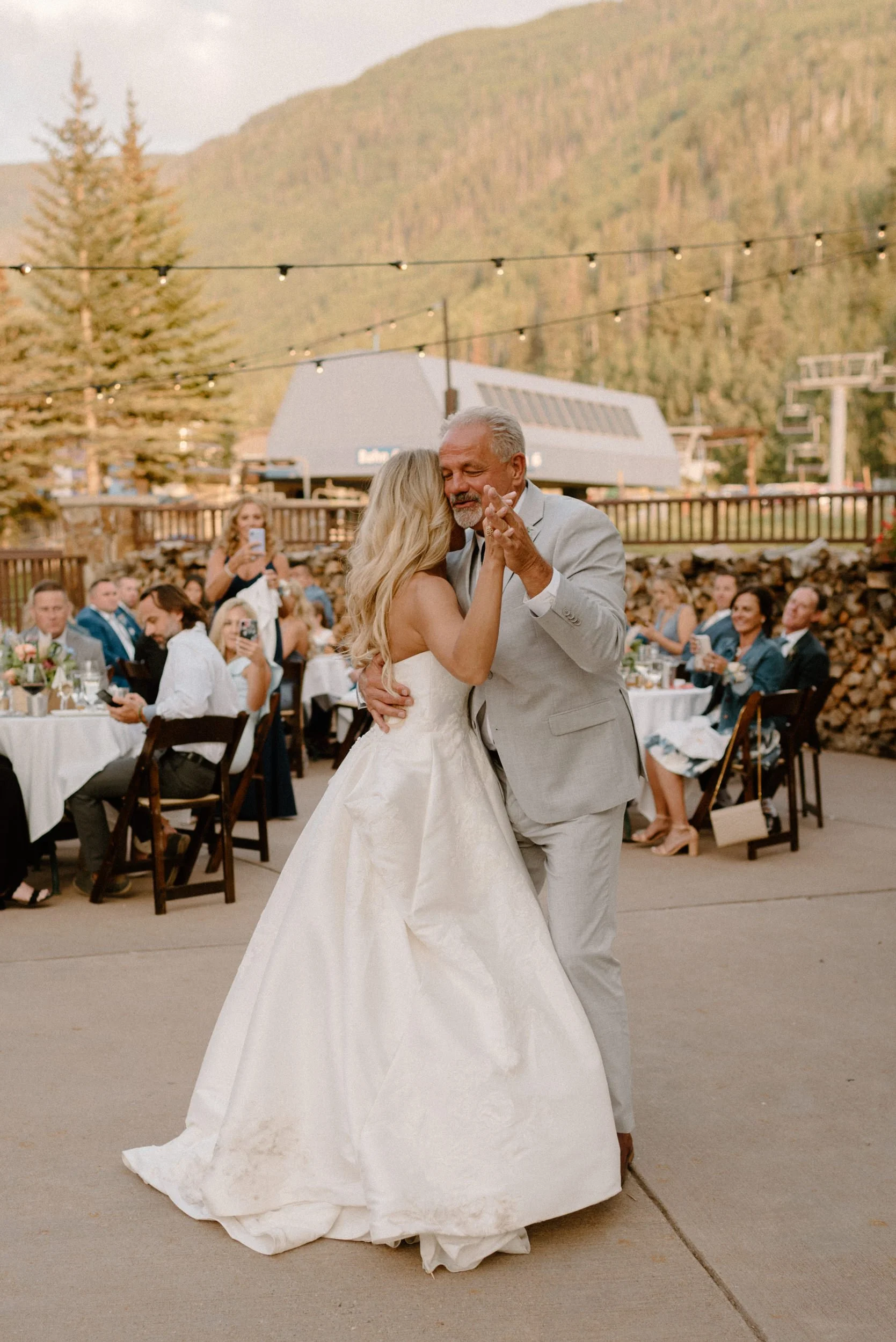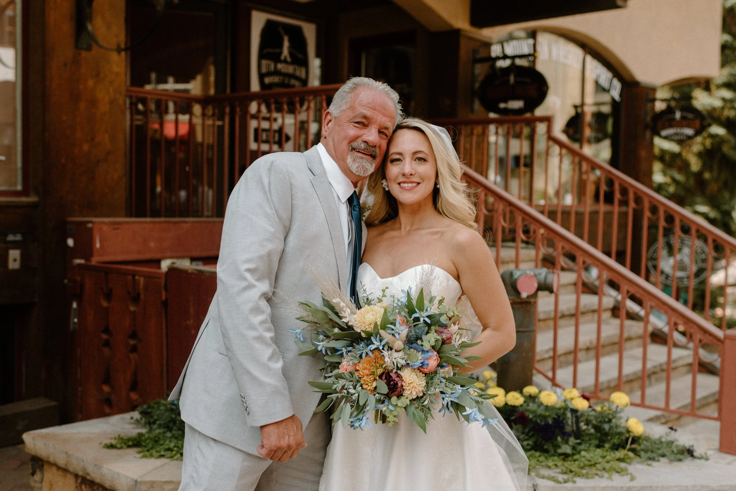 On the day of their wedding, after we finished getting ready we headed up the gondola for their first look and couples portraits. It was AMAZING and so gorgeous! We finished the after noon by meeting their wedding party in Vail Village for photos, the cutest first look ever with Katie and her dad, and of course finished with drinks at the 10th Mountain Whiskey & Spirits before heading to the venue for the ceremony.