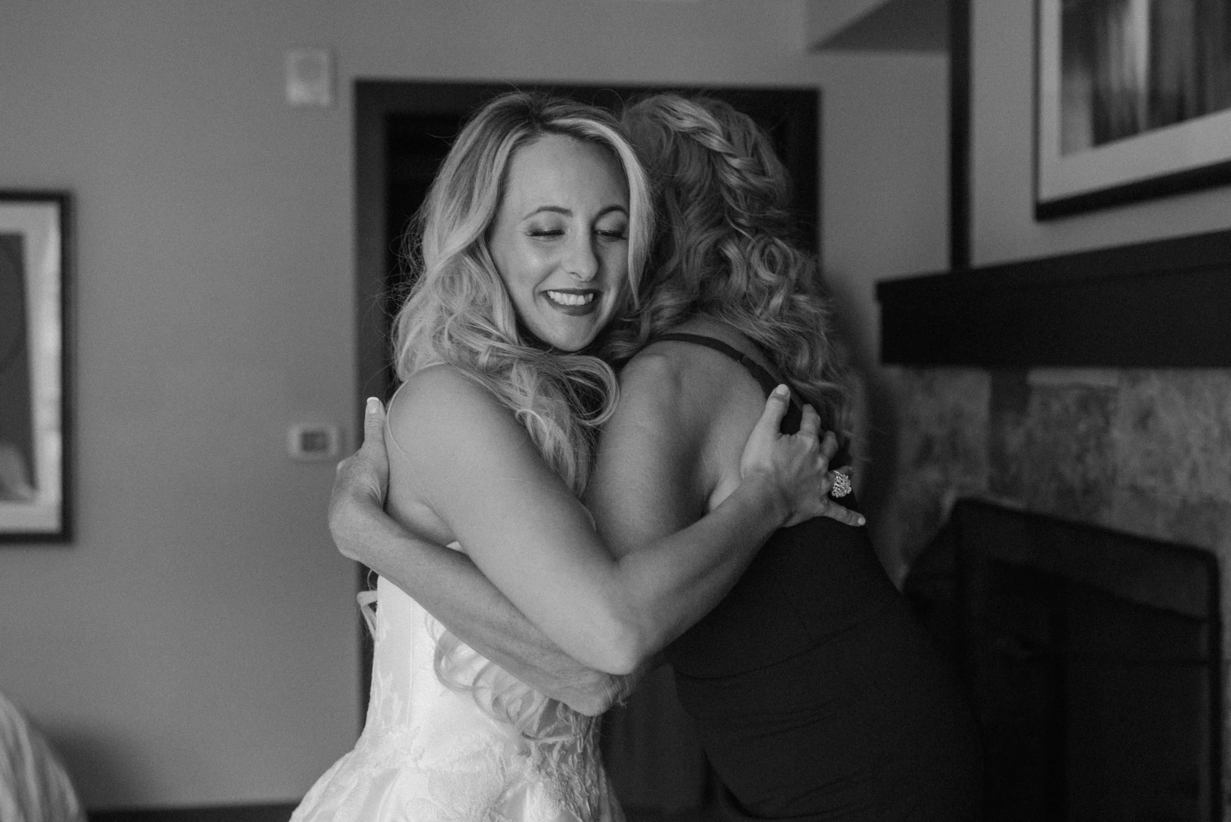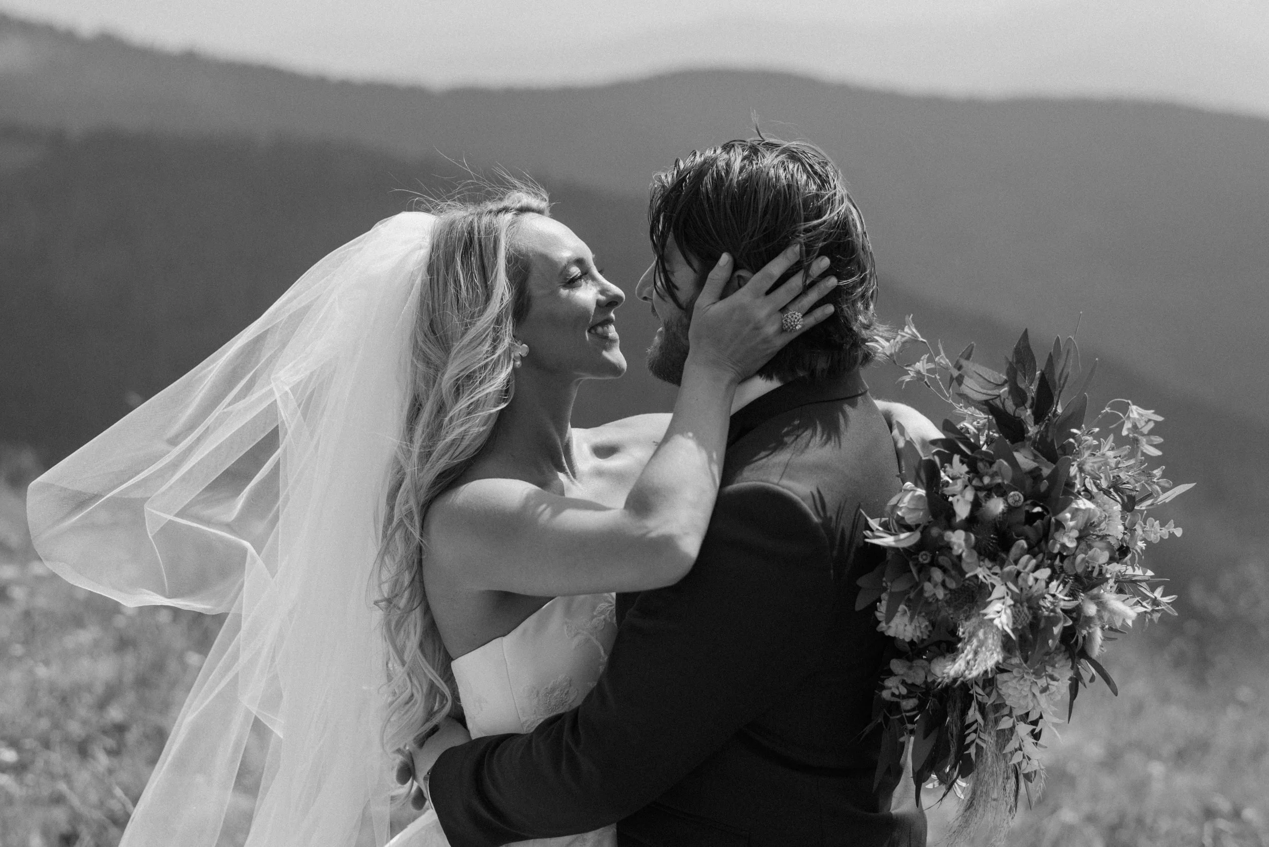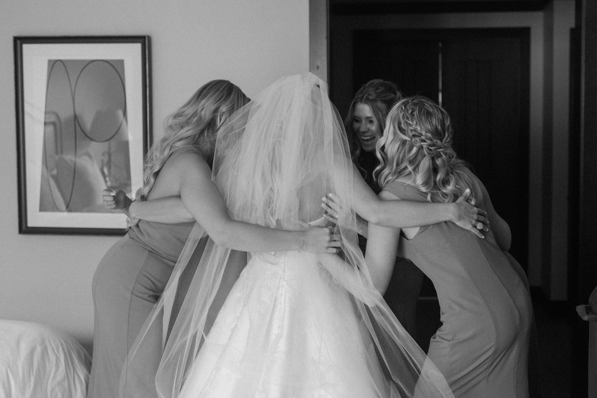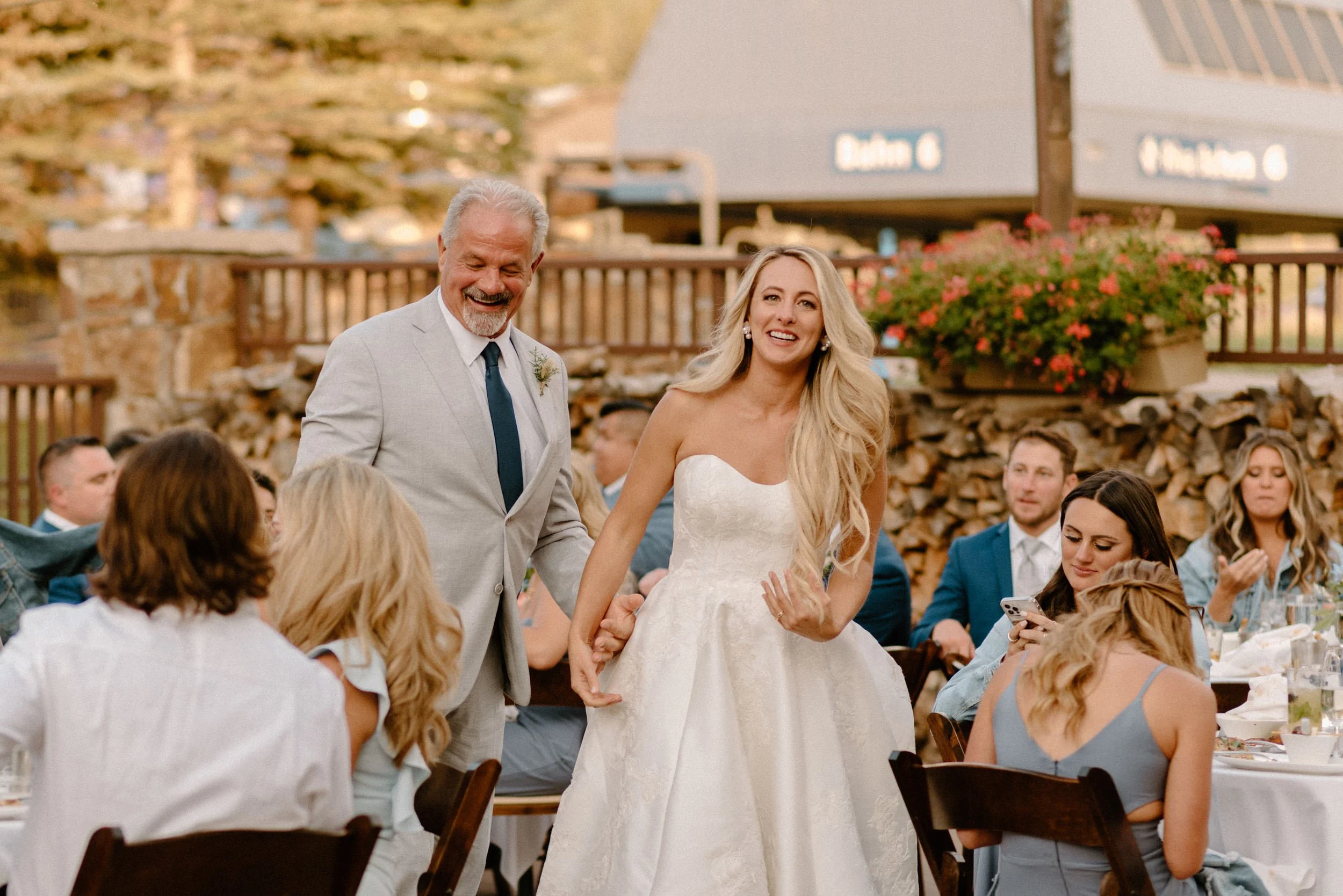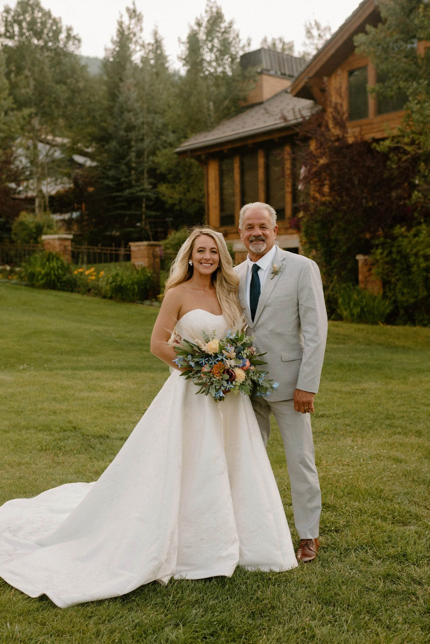 On the day of their wedding, after we finished getting ready we headed up the gondola for their first look and couples portraits. It was AMAZING and so gorgeous! We finished the after noon by meeting their wedding party in Vail Village for photos, the cutest first look ever with Katie and her dad, and of course finished with drinks at the 10th Mountain Whiskey & Spirits before heading to the venue for the ceremony.