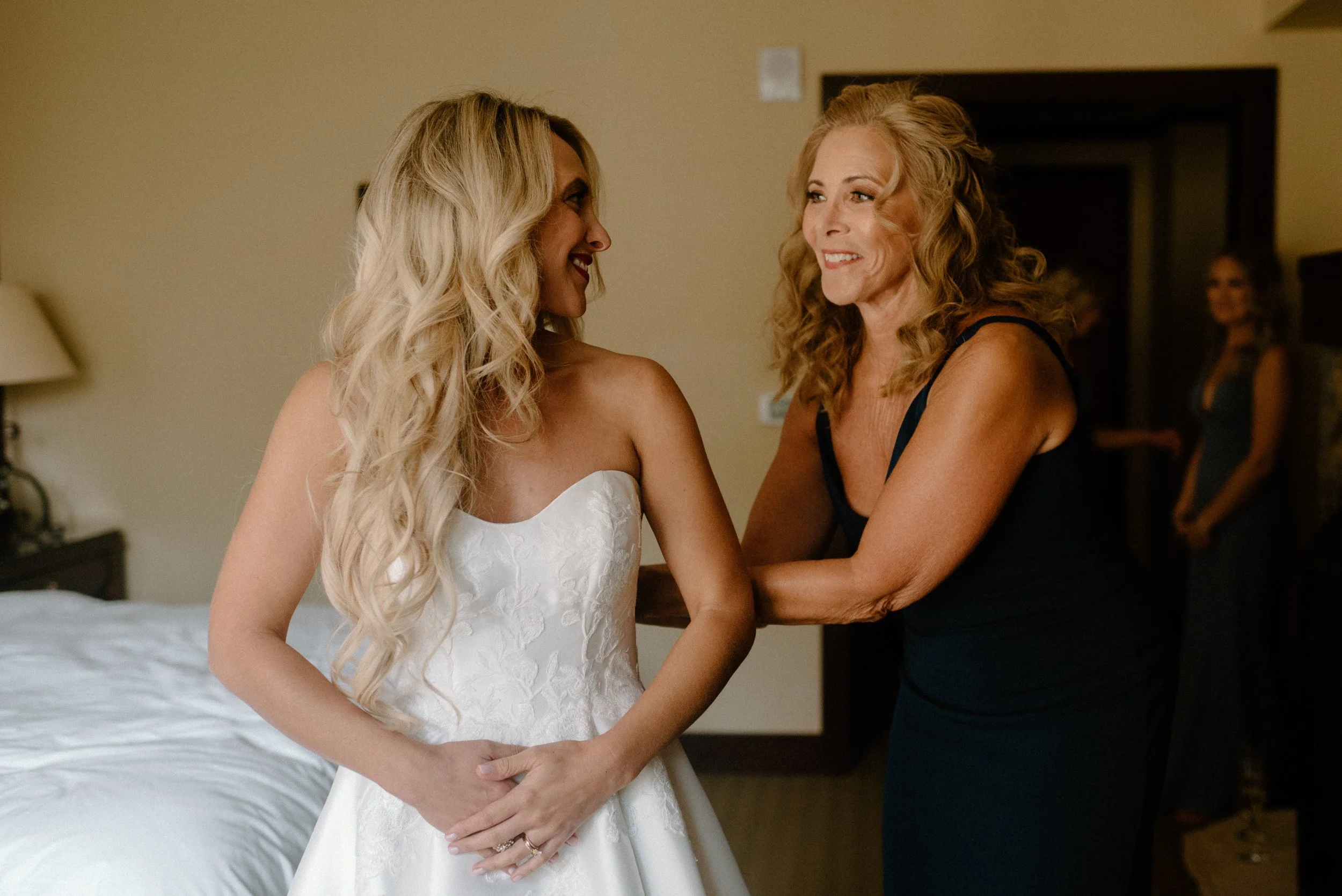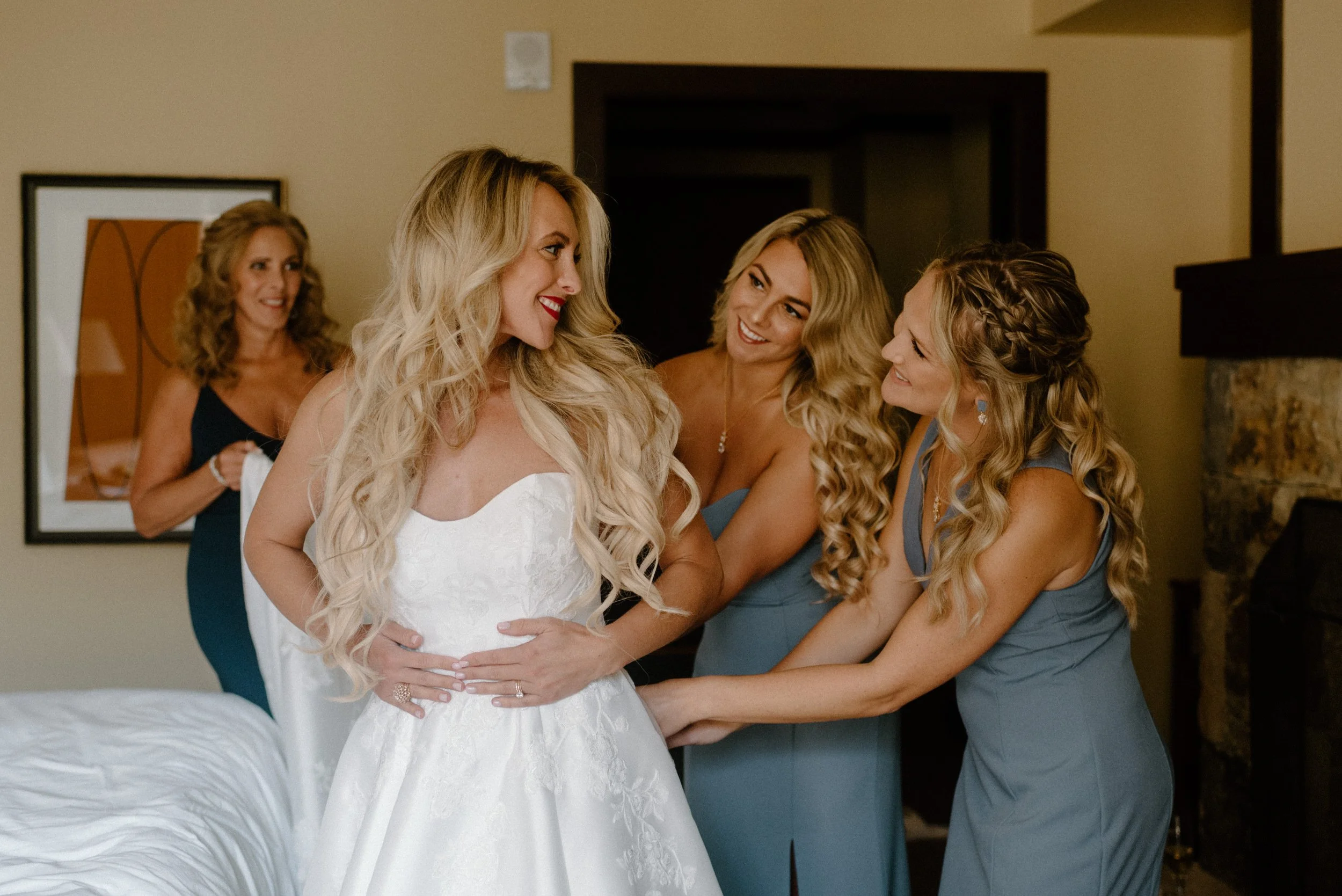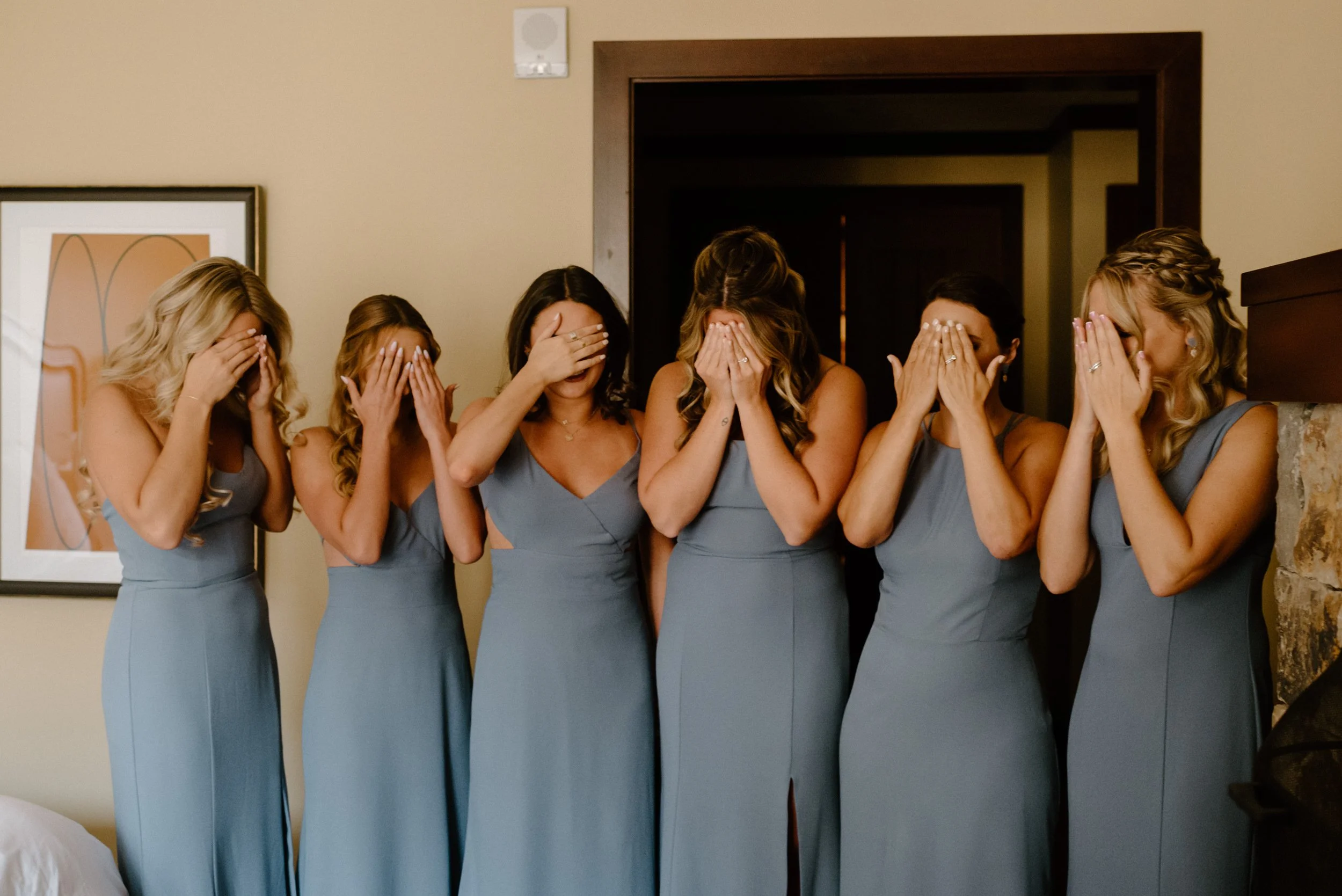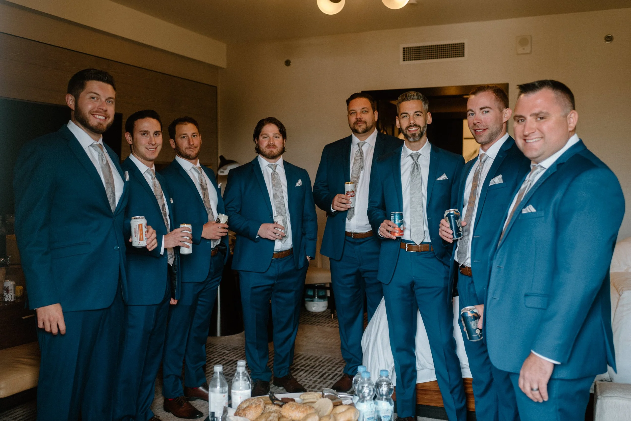 On the day of their wedding, after we finished getting ready we headed up the gondola for their first look and couples portraits. It was AMAZING and so gorgeous! We finished the after noon by meeting their wedding party in Vail Village for photos, the cutest first look ever with Katie and her dad, and of course finished with drinks at the 10th Mountain Whiskey & Spirits before heading to the venue for the ceremony.
