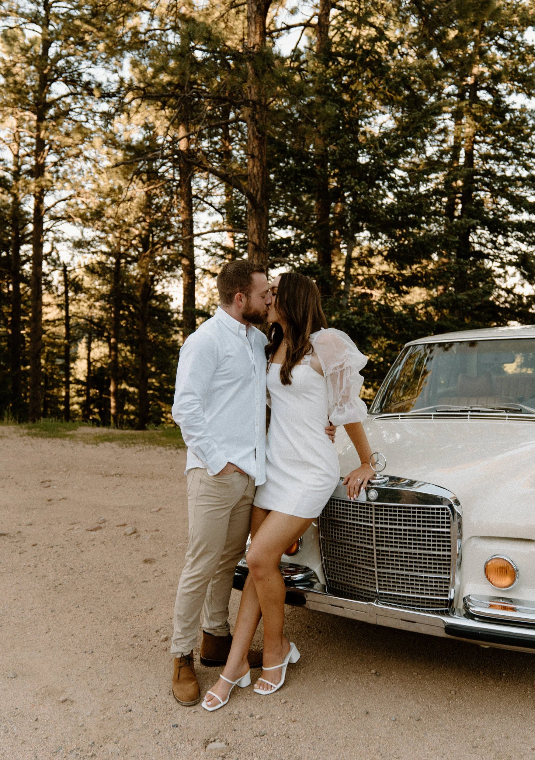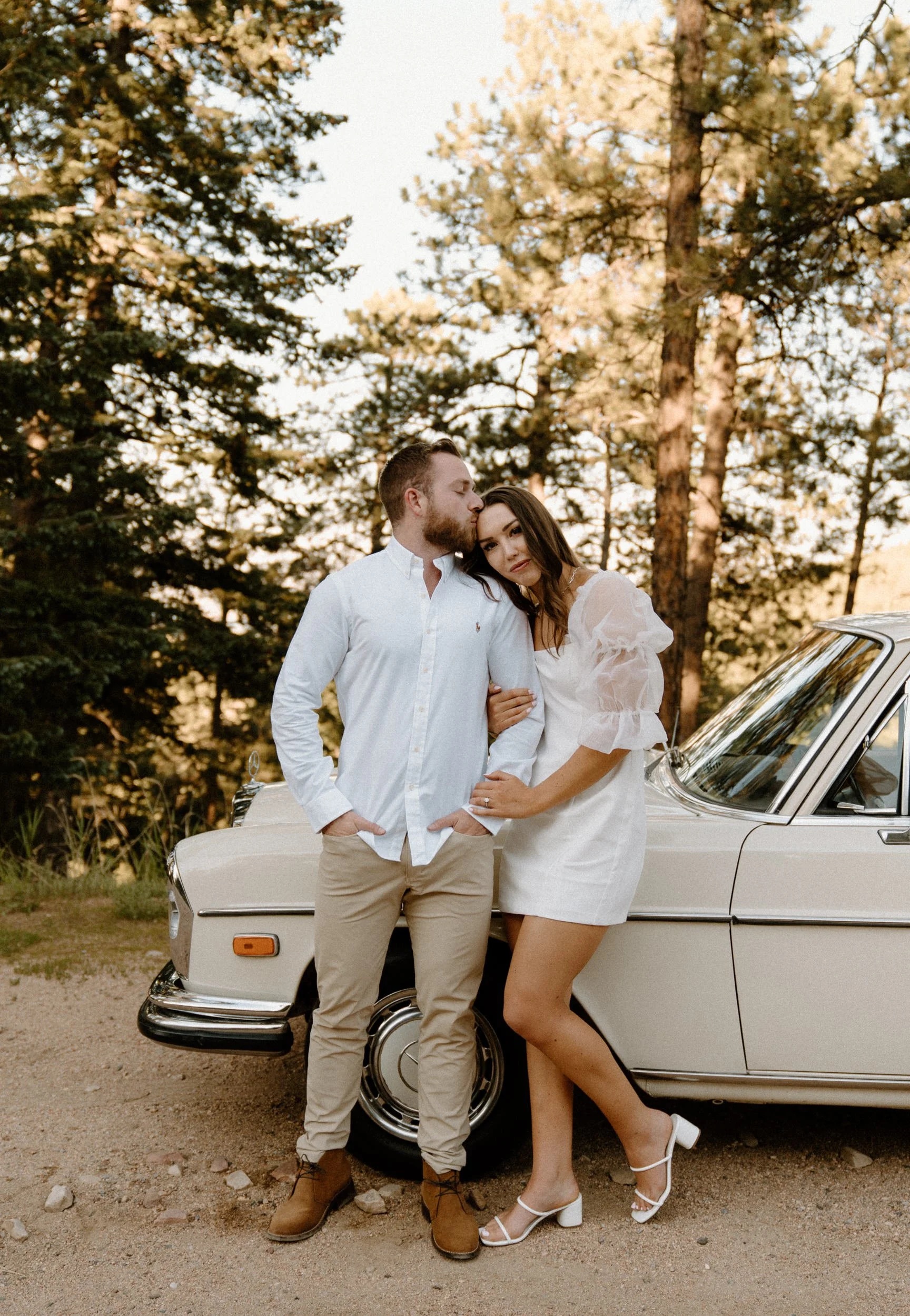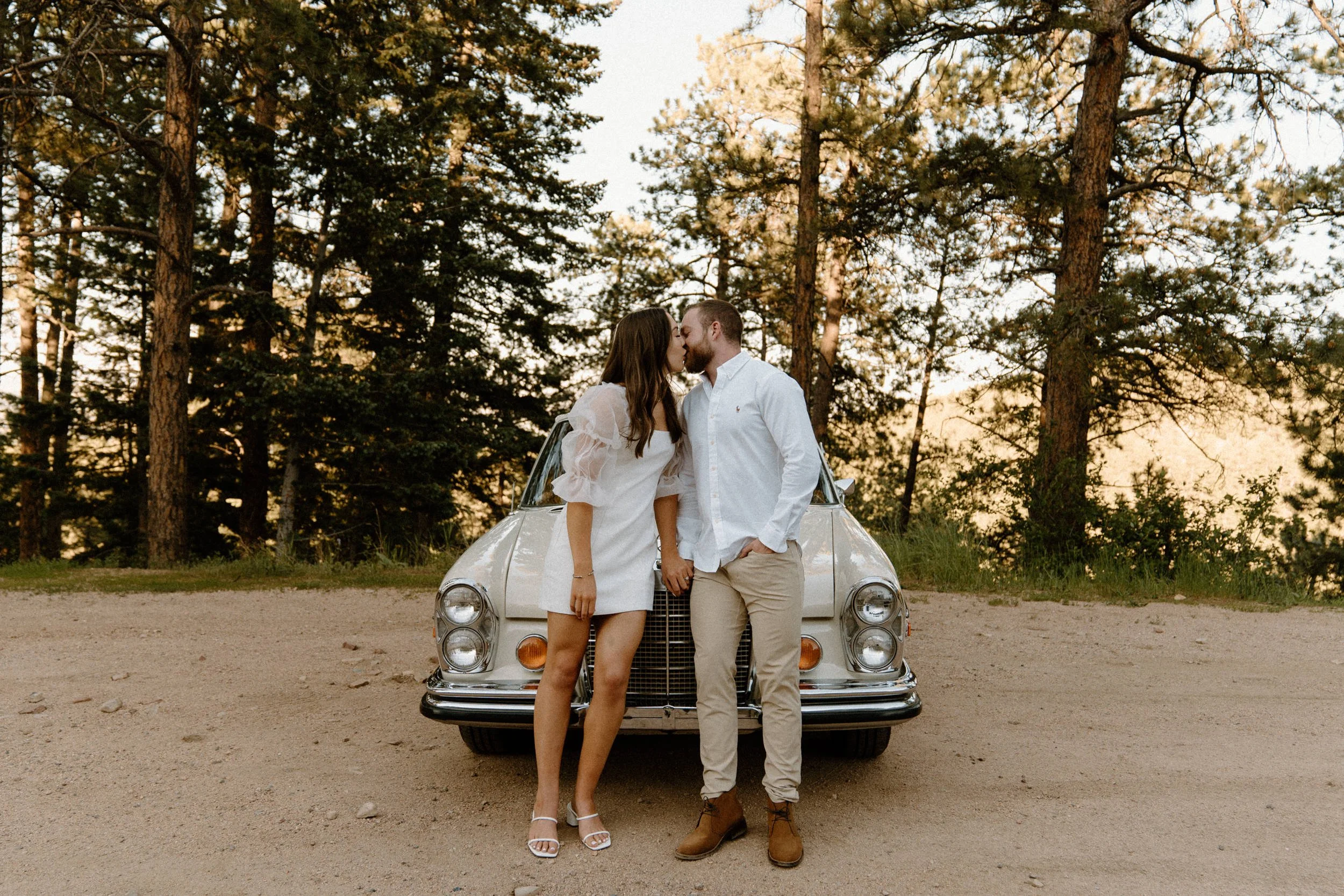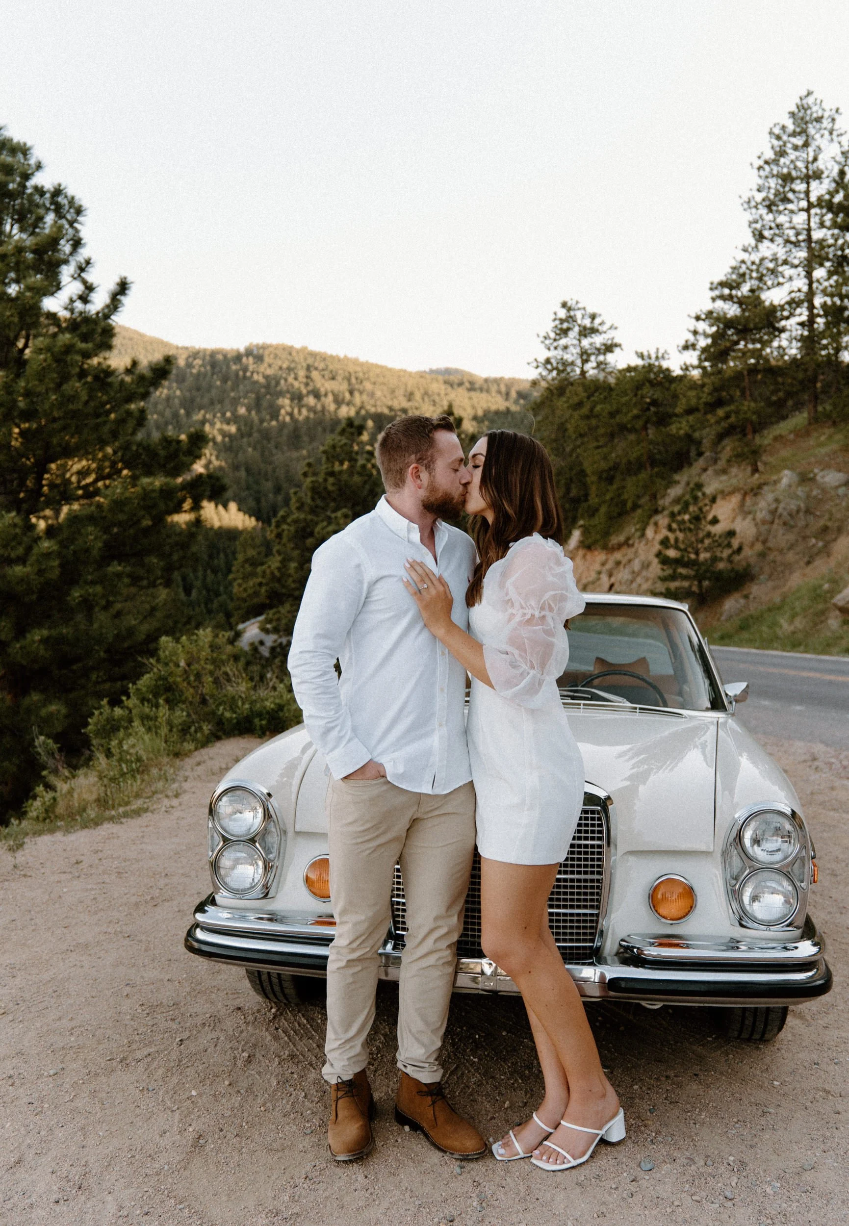 Diane and Joe’s Colorado adventure engagement session at Lost Gulch in Boulder, Colorado was one for the books! Everything about their engagement session at Lost Gulch was literal dream to photograph and the most perfect night ever! Not only are these two cuties the sweetest, most laid back and fun to be around people ever – they also rented a super cool vintage car from The Midnight Mercedes for their engagement session which was such a unique touch and made the most perfect combo ever! Golden hour, an awesome couple, stunning view and a vintage car?! I don’t think it gets any better than that!