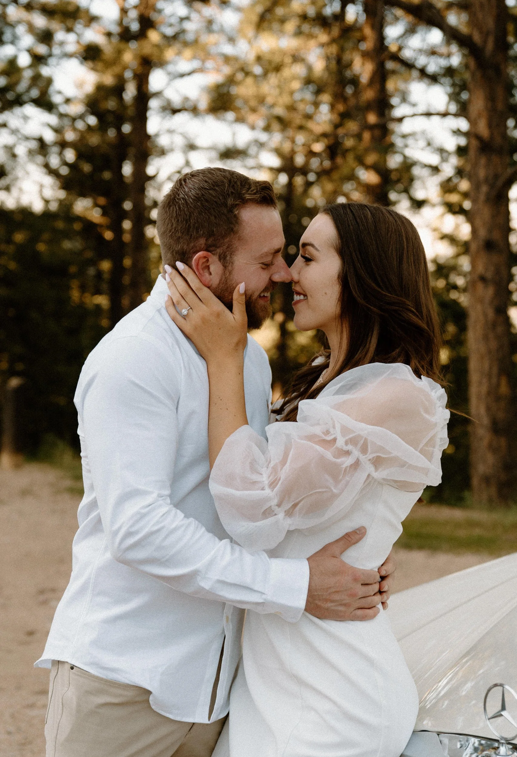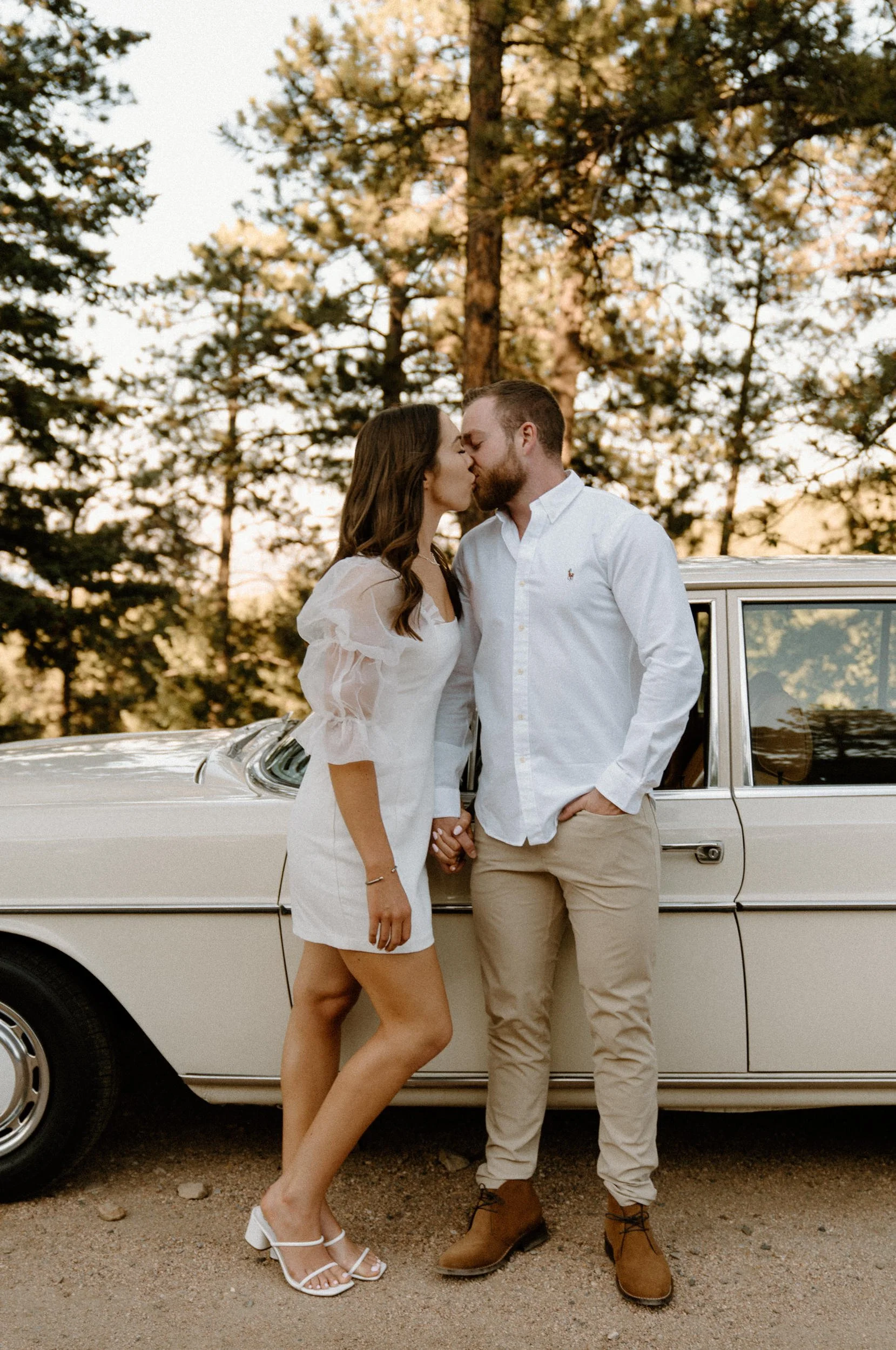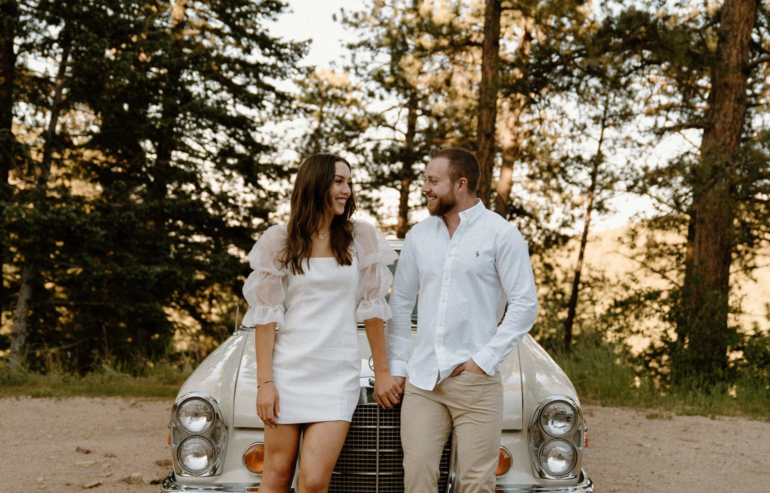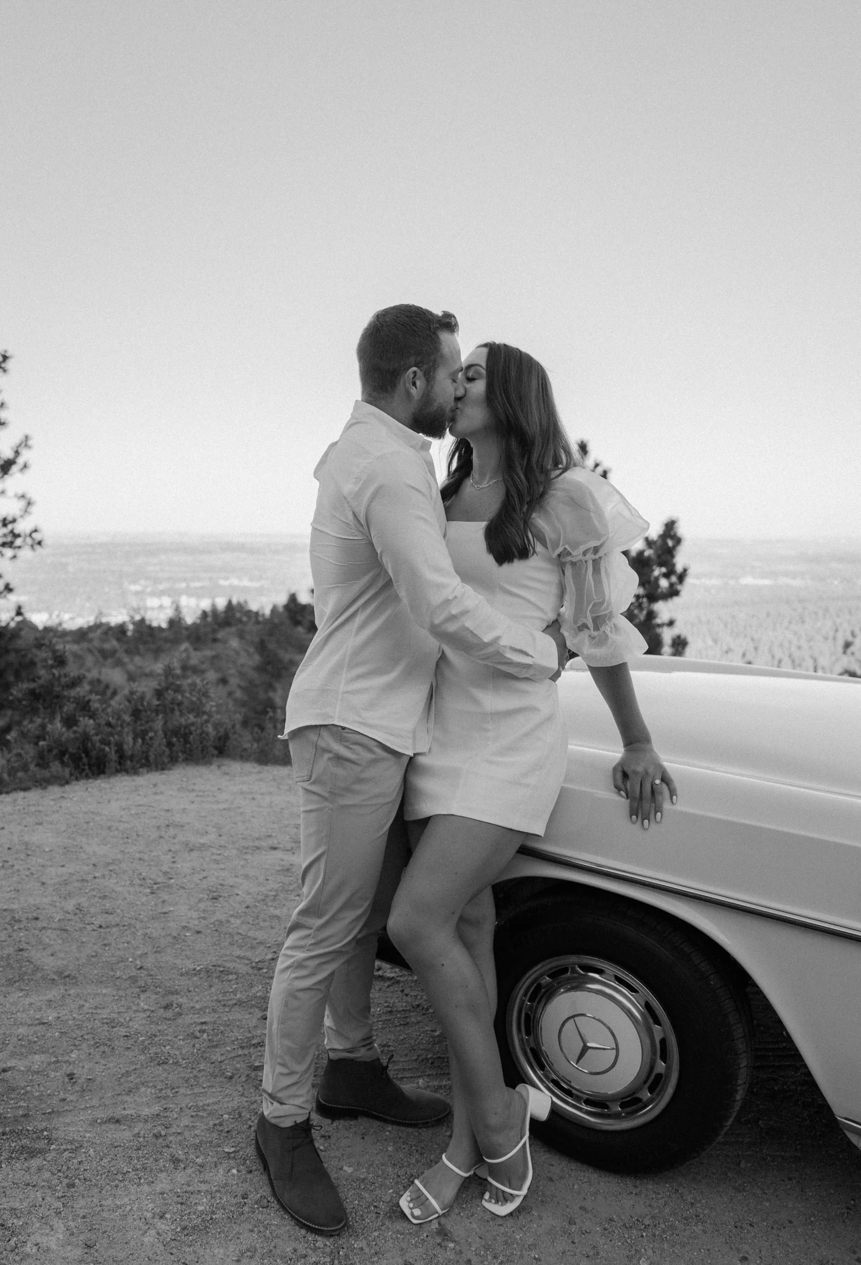 Diane and Joe’s Colorado adventure engagement session at Lost Gulch in Boulder, Colorado was one for the books! Everything about their engagement session at Lost Gulch was literal dream to photograph and the most perfect night ever! Not only are these two cuties the sweetest, most laid back and fun to be around people ever – they also rented a super cool vintage car from The Midnight Mercedes for their engagement session which was such a unique touch and made the most perfect combo ever! Golden hour, an awesome couple, stunning view and a vintage car?! I don’t think it gets any better than that!