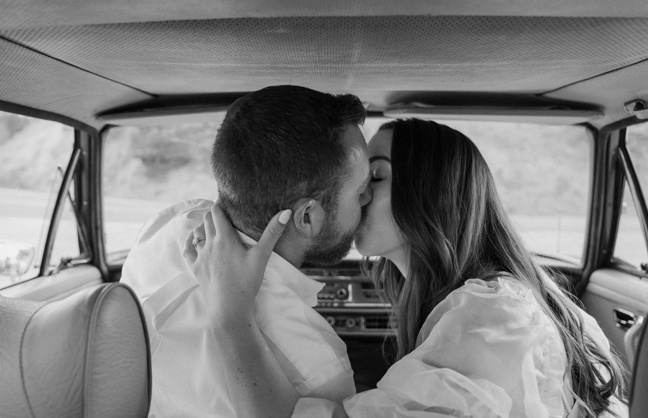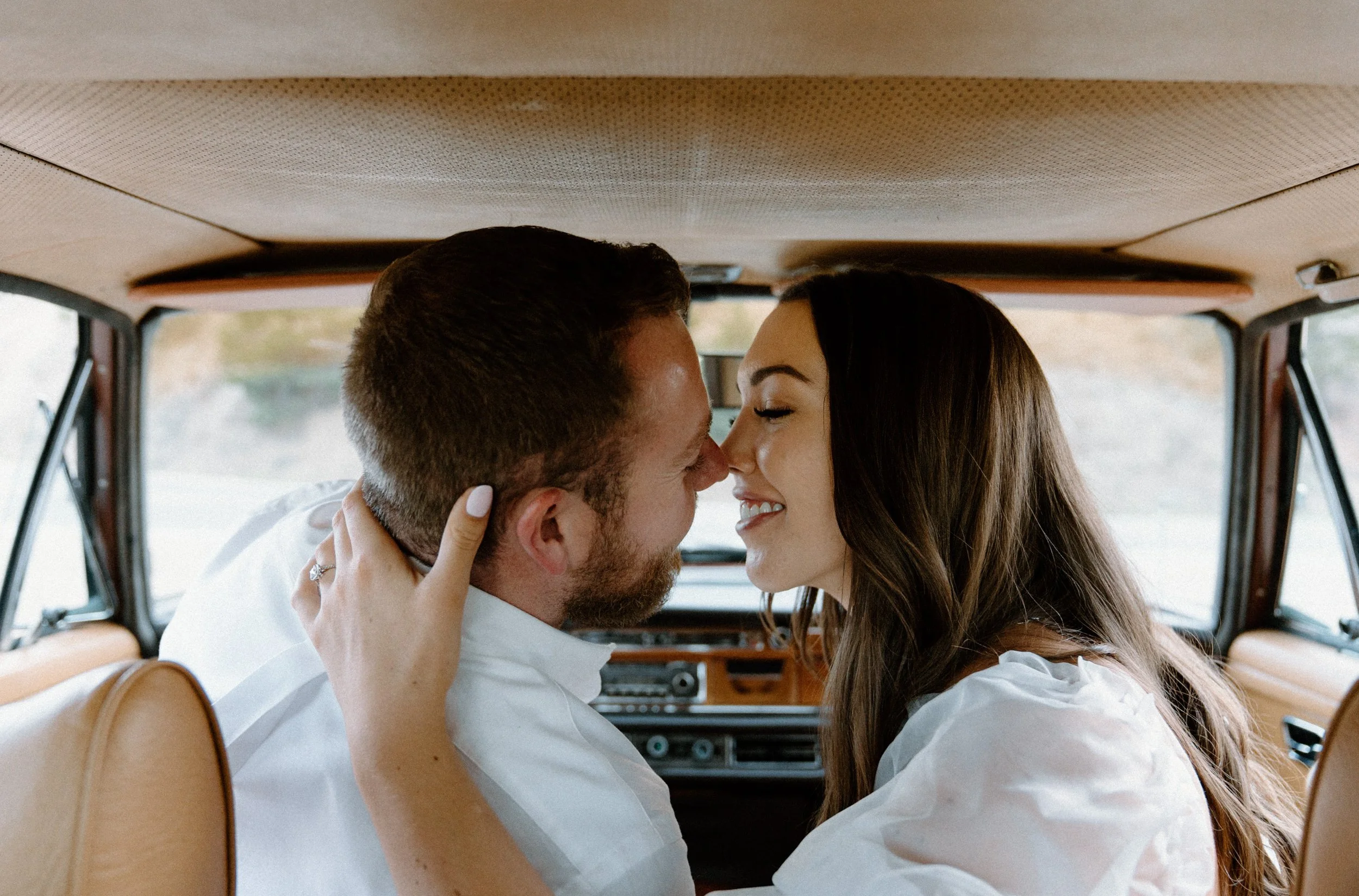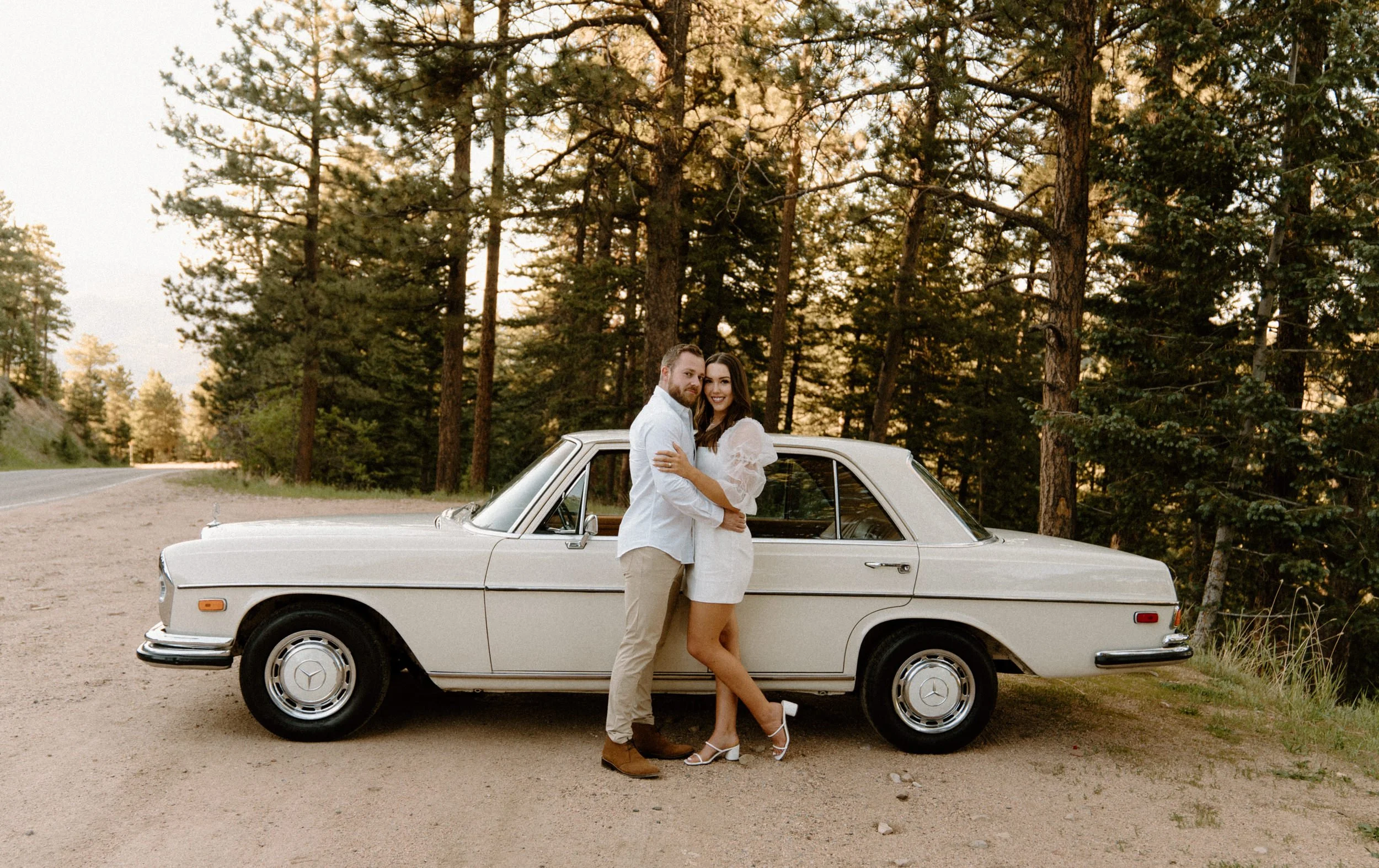 On the night of Diane and Joe’s engagement session in Boulder, Colorado, we spent the evening soaking up the golden hour by driving around flagstaff mountain in an old vintage Mercedes. The car they rented was such a fun and unique element to they shoot – not only was it SO fun to take photos in and also so fun to get to ride around in! If you’re looking for something a little different for your engagement shoot – definitely consider renting a cool vintage car! It was such a blast!