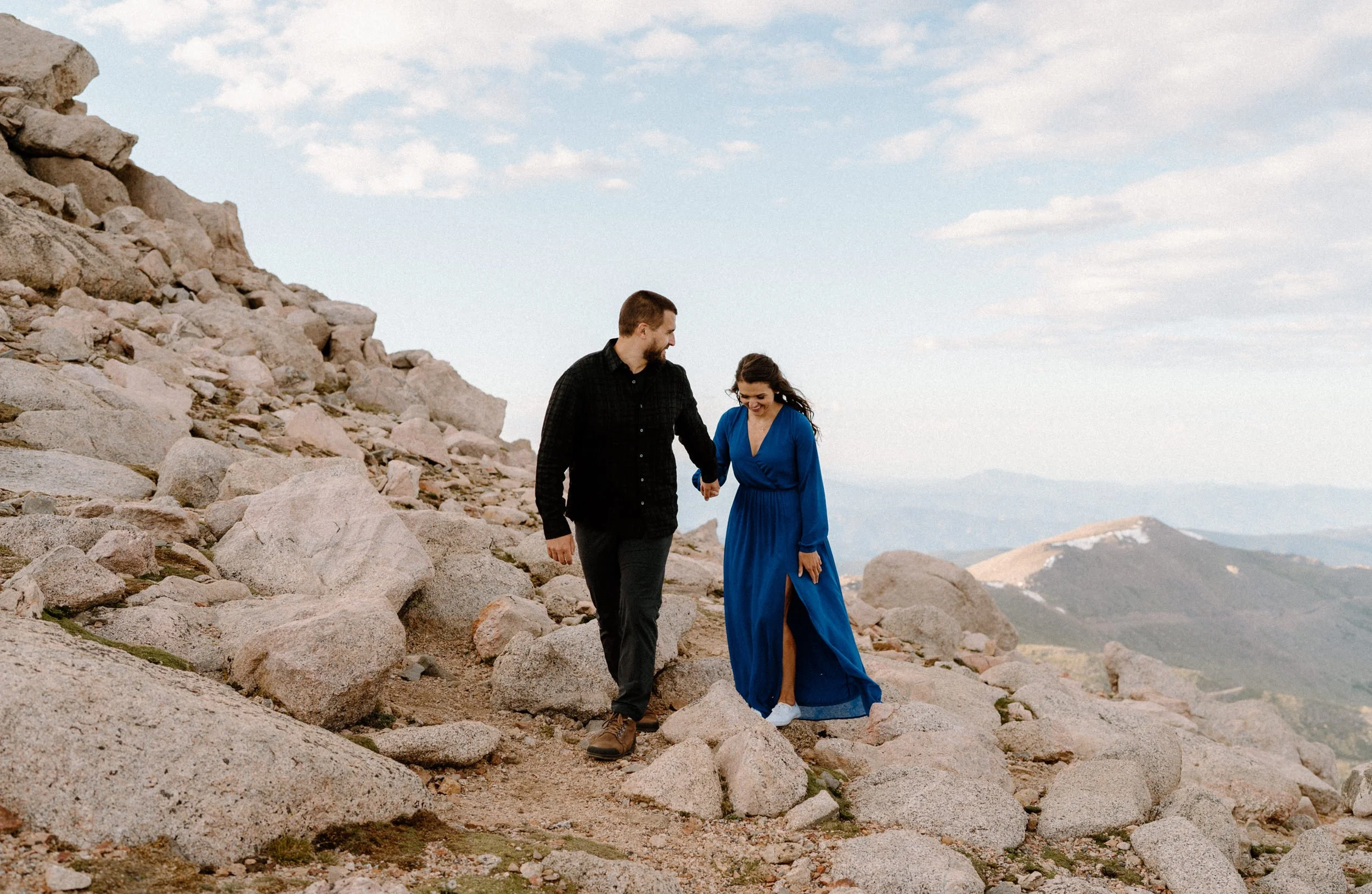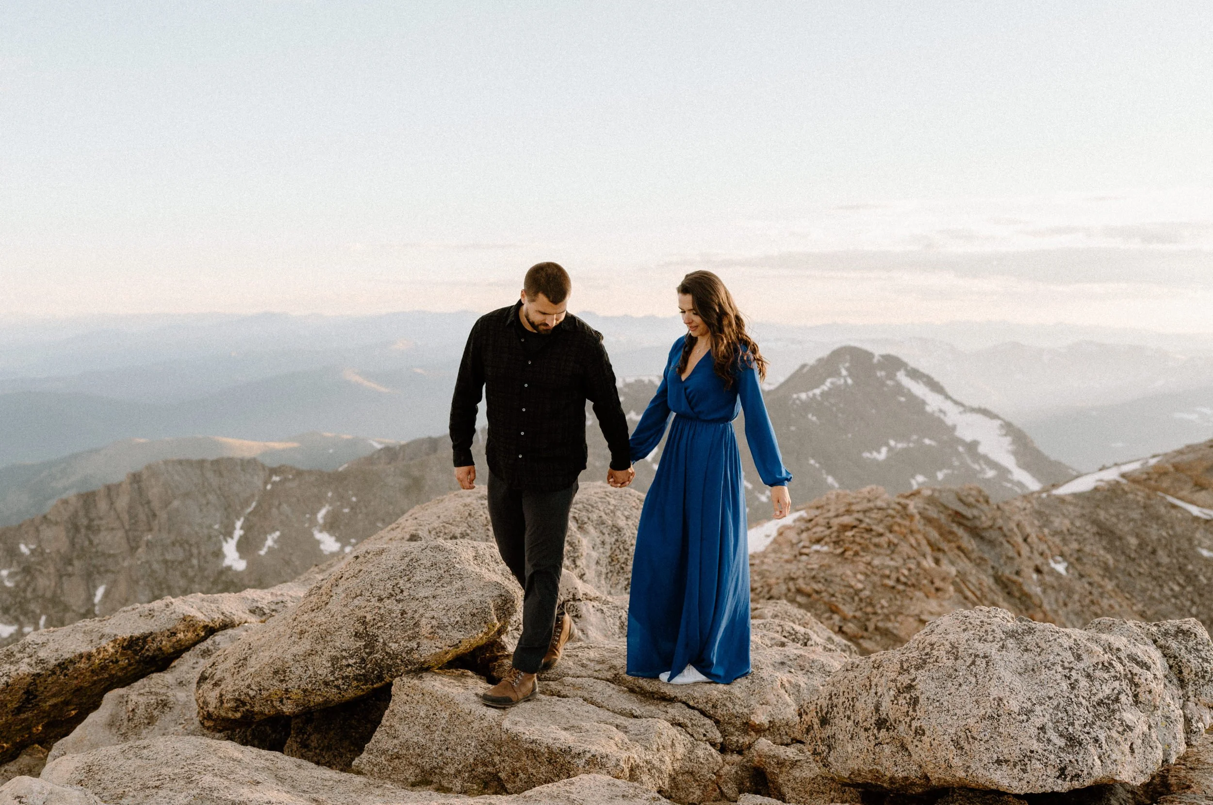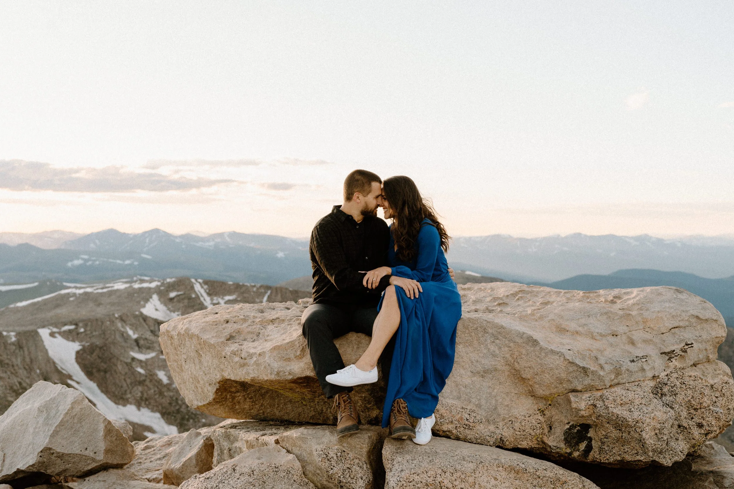 Calling all adventure seekers!! I’m so excited to share Kelly and Brandon’s unforgettable engagement session atop Mount Blue Sky, a towering Fourteener in the heart of Colorado. Fourteeners are mountains that are above 14,000 feet tall, and getting to the top of them is no joke!