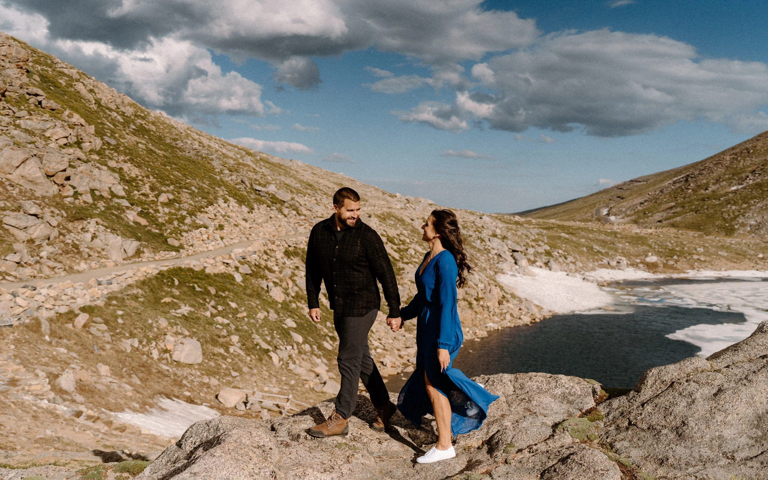 Starting our adventure at Summit Lake, we captured some breathtaking shots against the backdrop of crystal-clear waters and mountain peaks. The love and excitement between Kelly and Brandon were so obvious, making every moment feel truly magical!