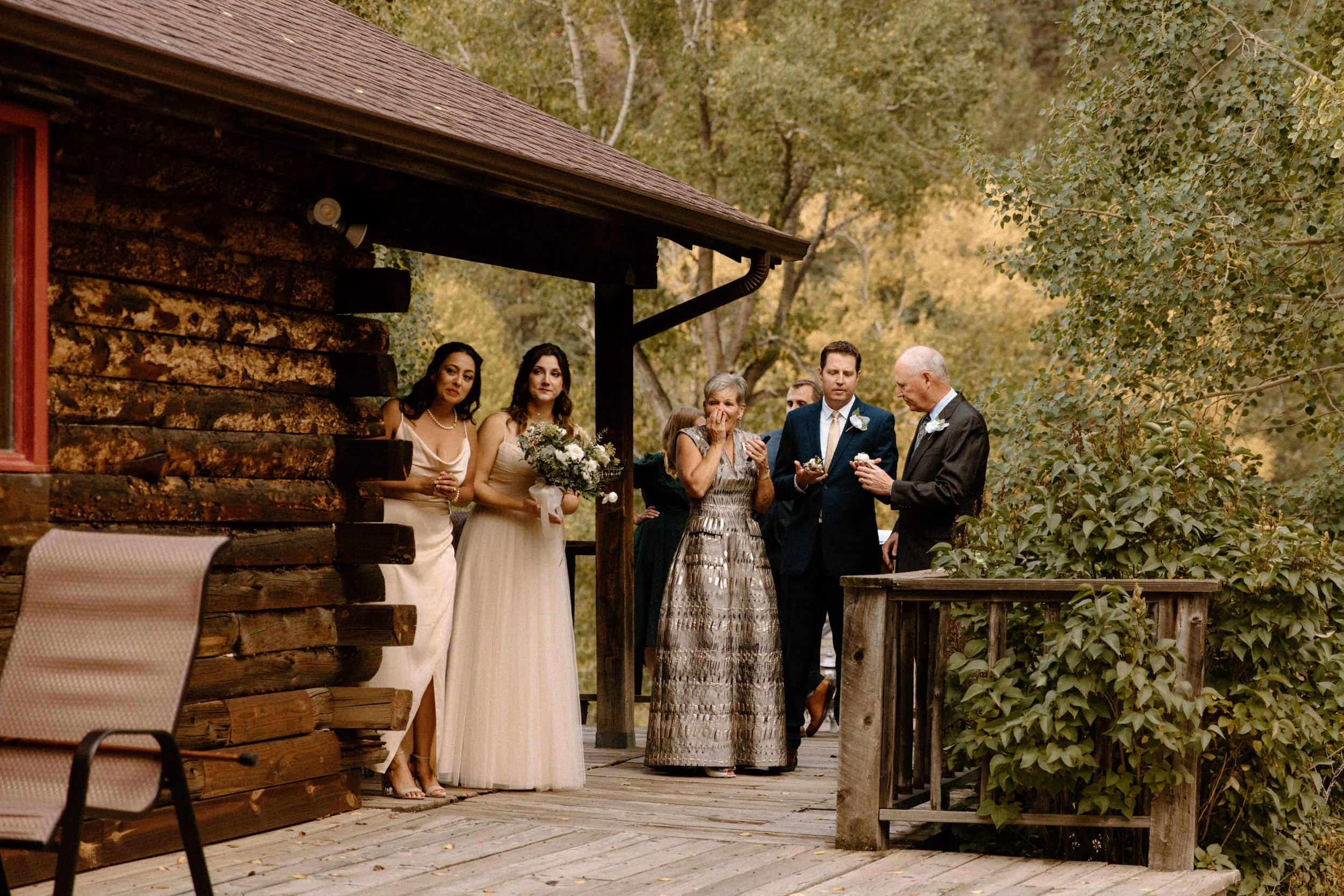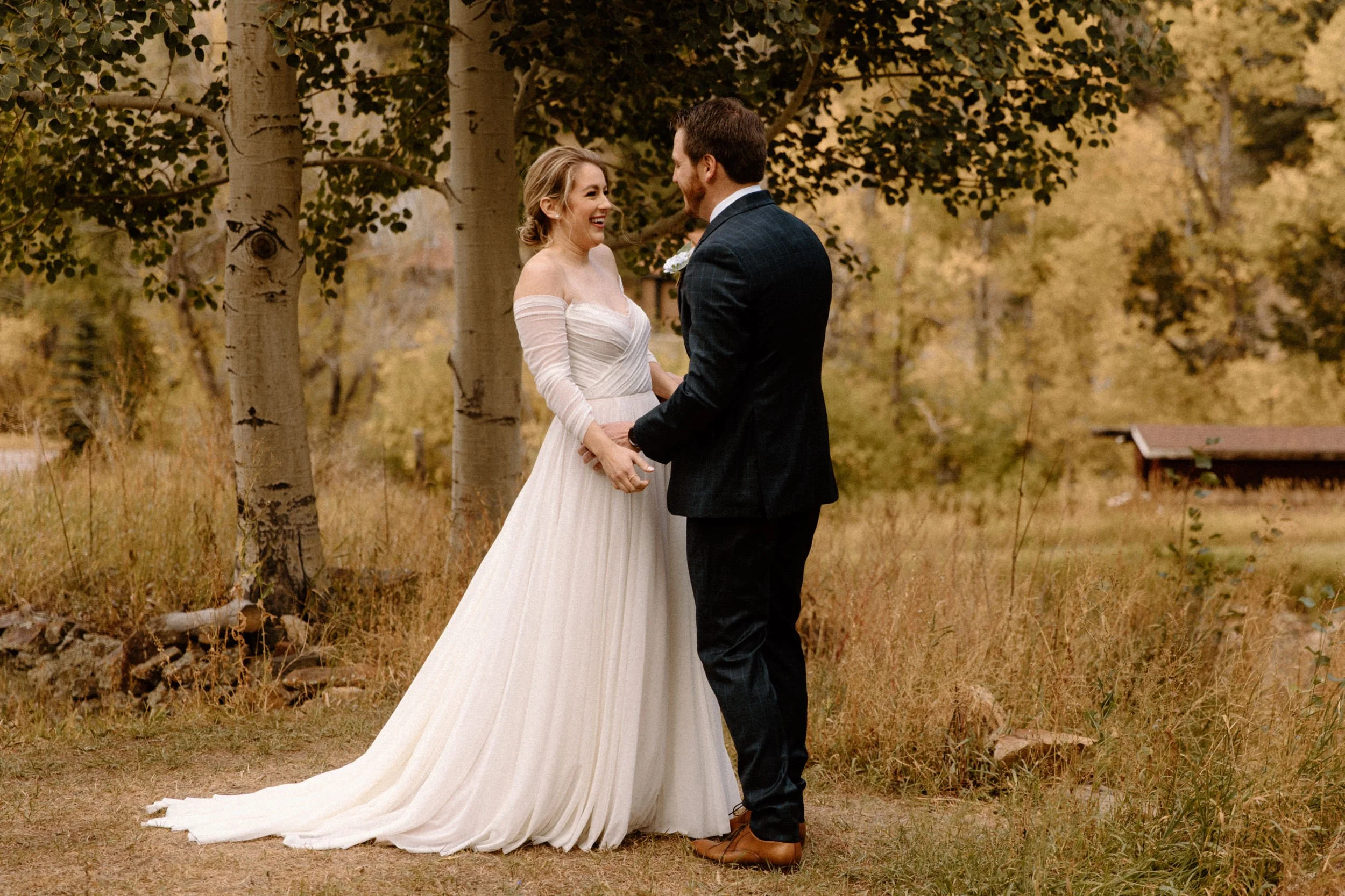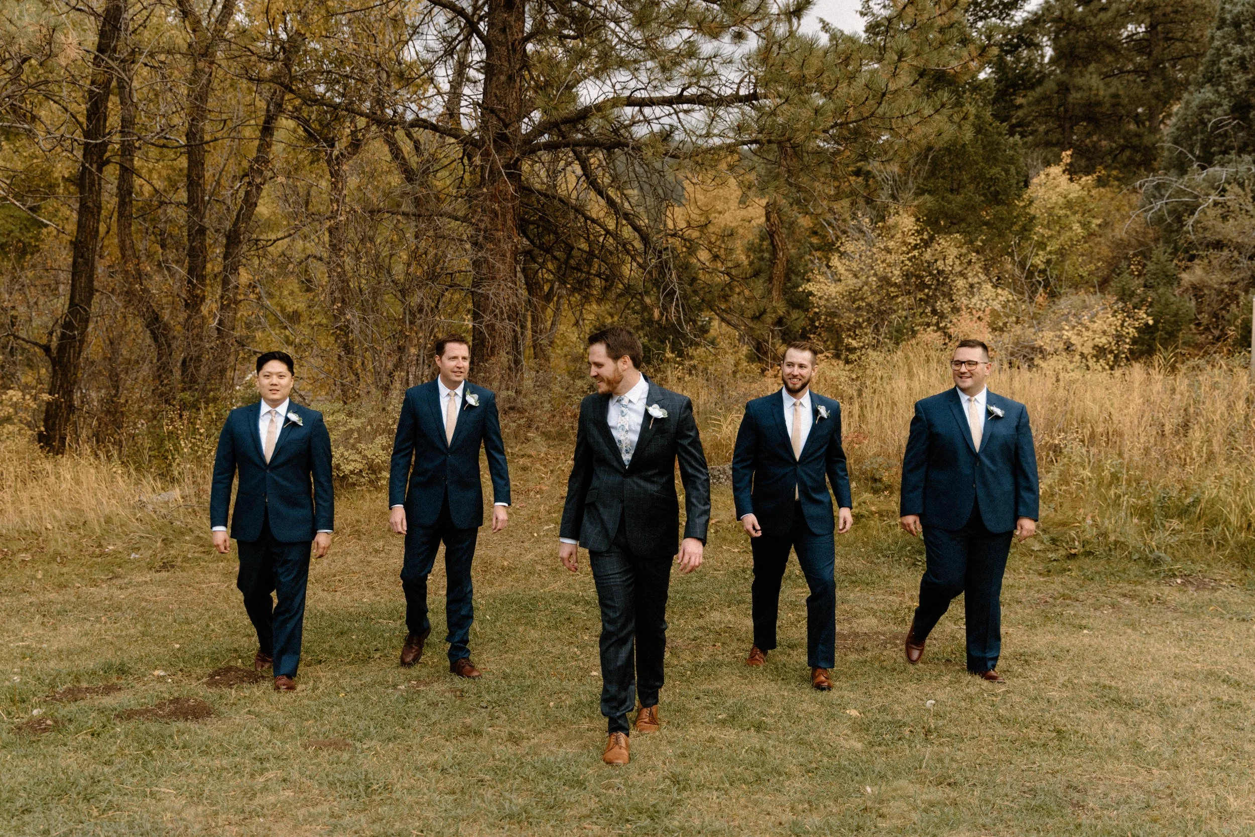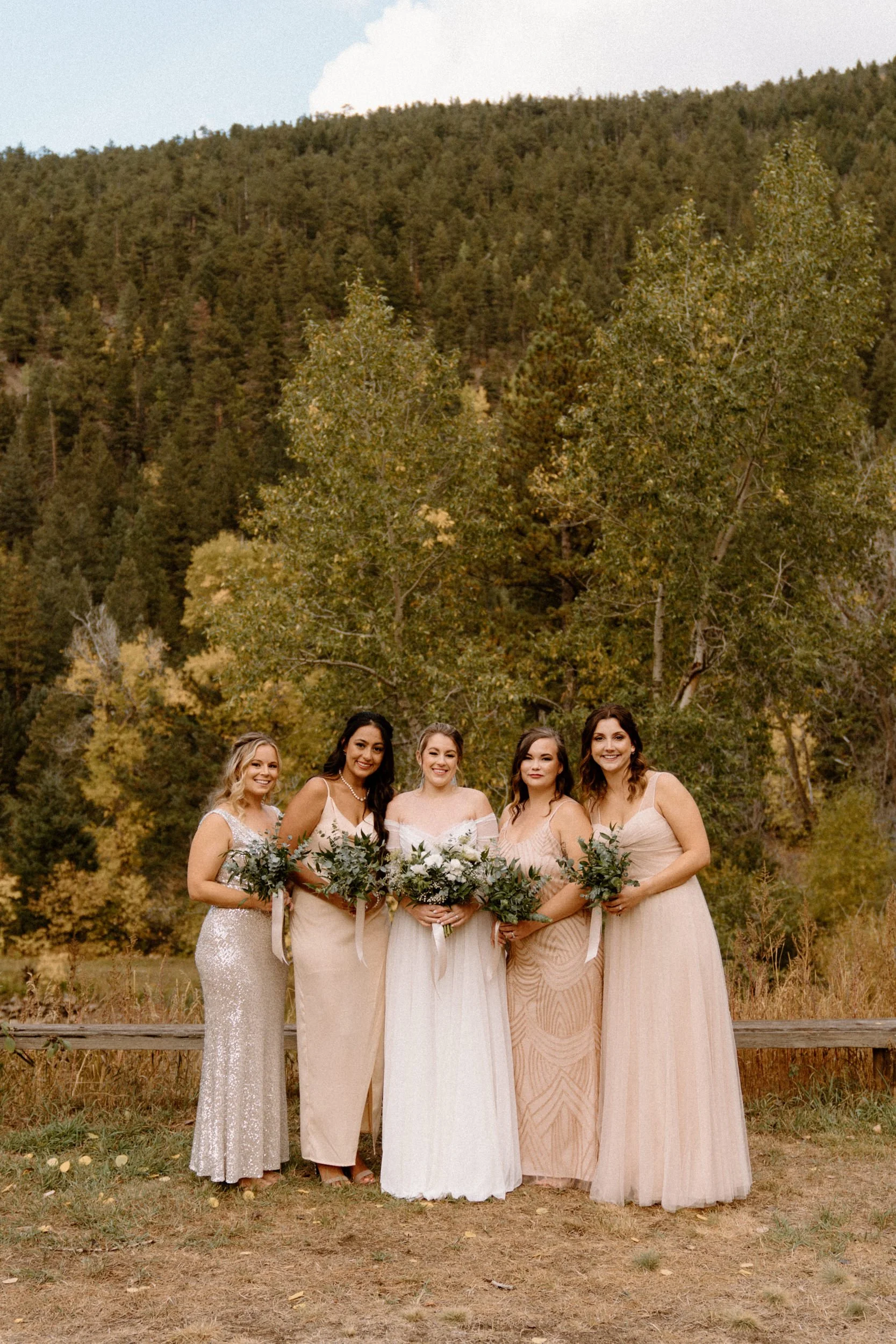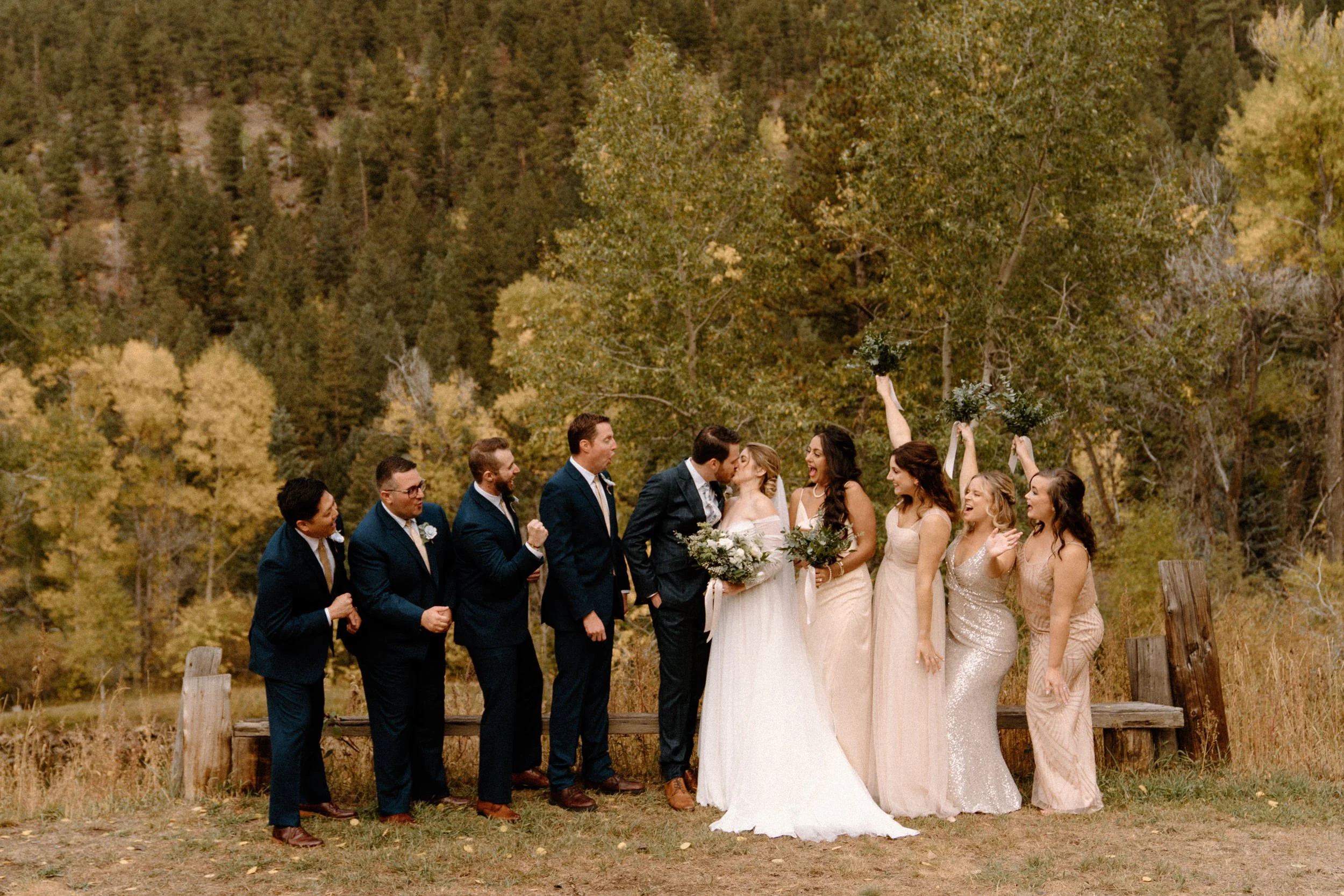 On the morning of Jordan and Molly’s wedding, we started the day out at the CUTEST Airbnb ever in Idaho Springs close to North Star Gatherings. We had the best morning getting ready, doing wedding party photos, and the sweetest first look between Molly and Jordan and also Molly and her dad! It was the perfect sunny, crisp fall day with the most gorgeous fall color ever! Having a slow paced morning is the best thing ever because it allows you to enjoy time with your wedding party and each other without feeling rushed!