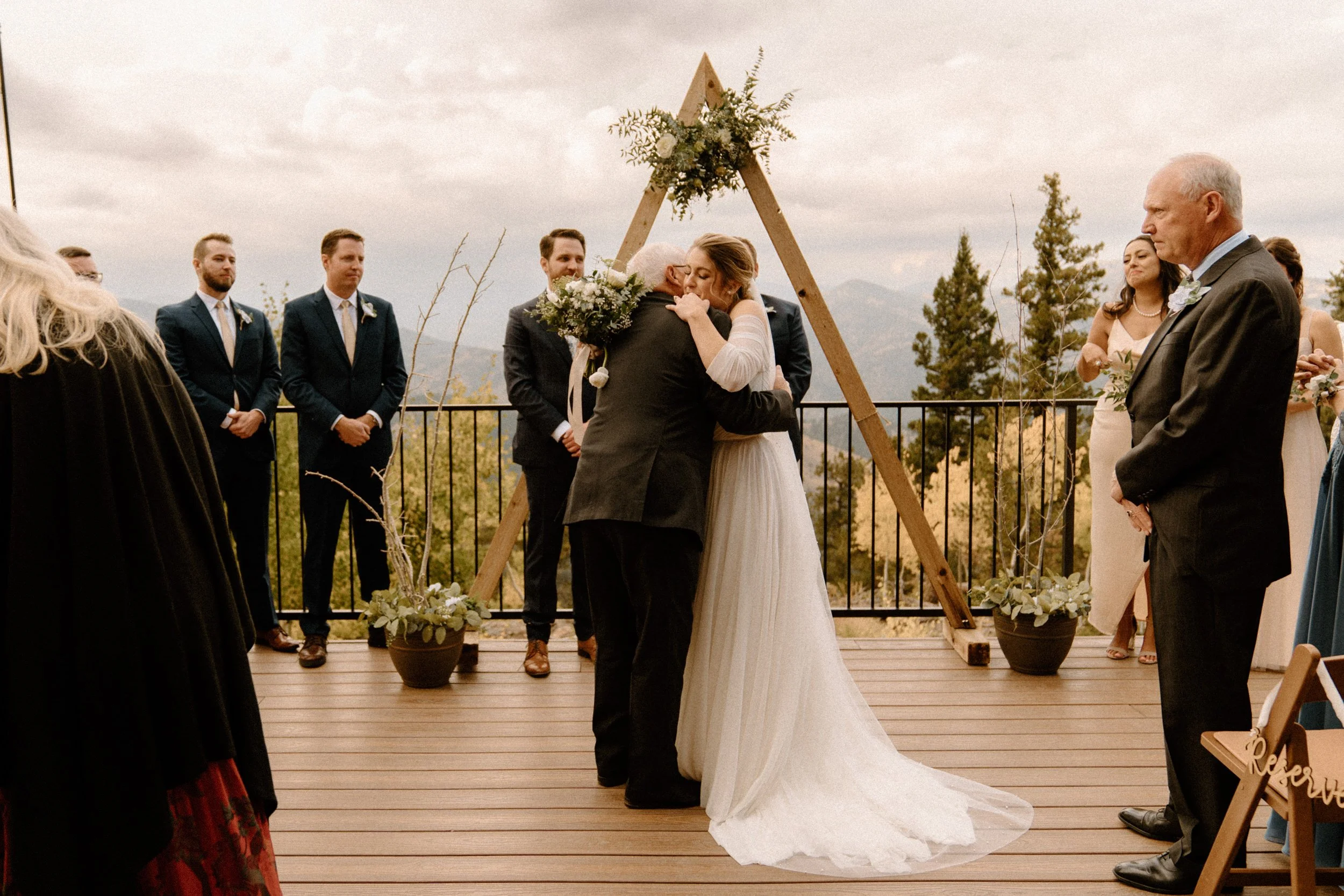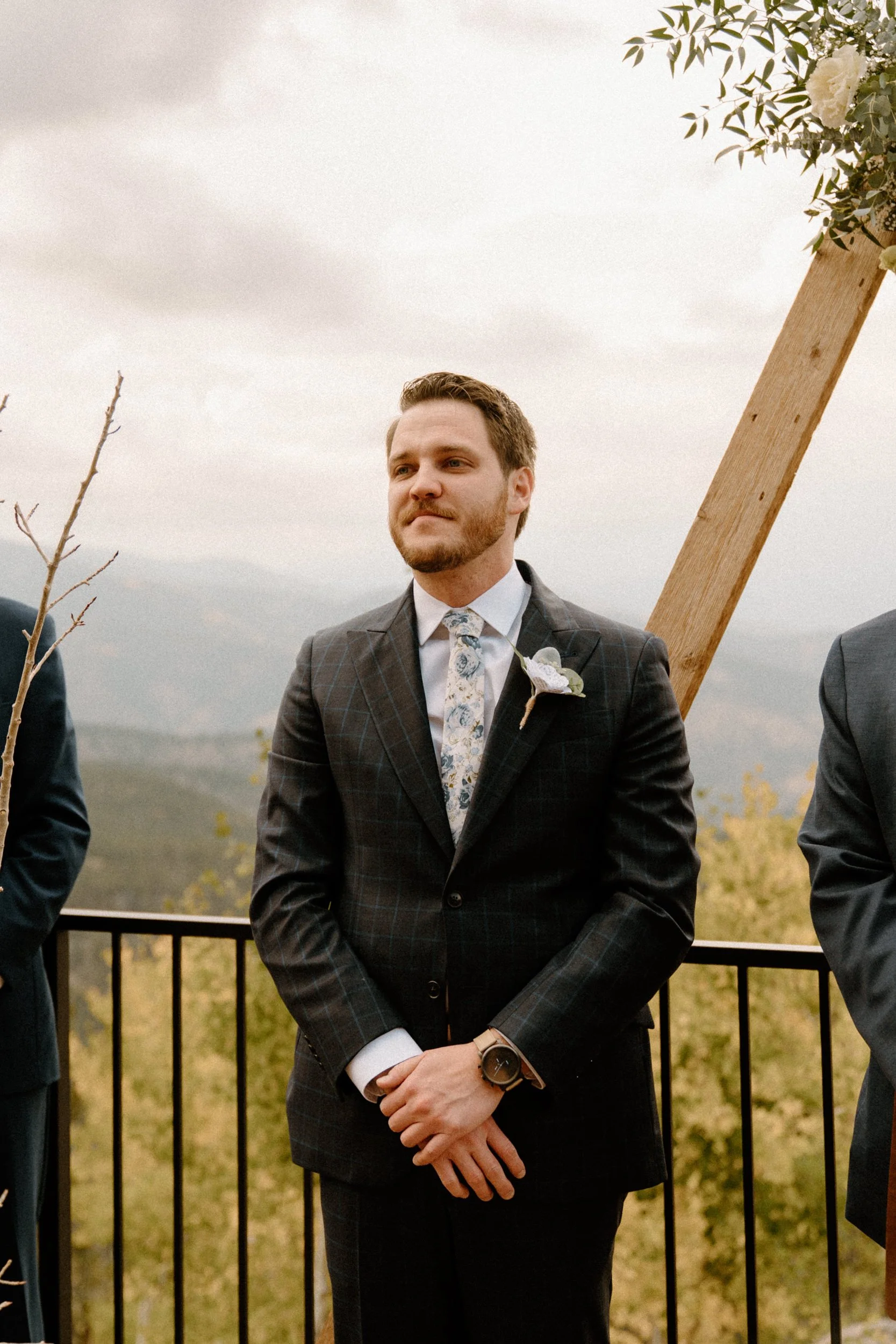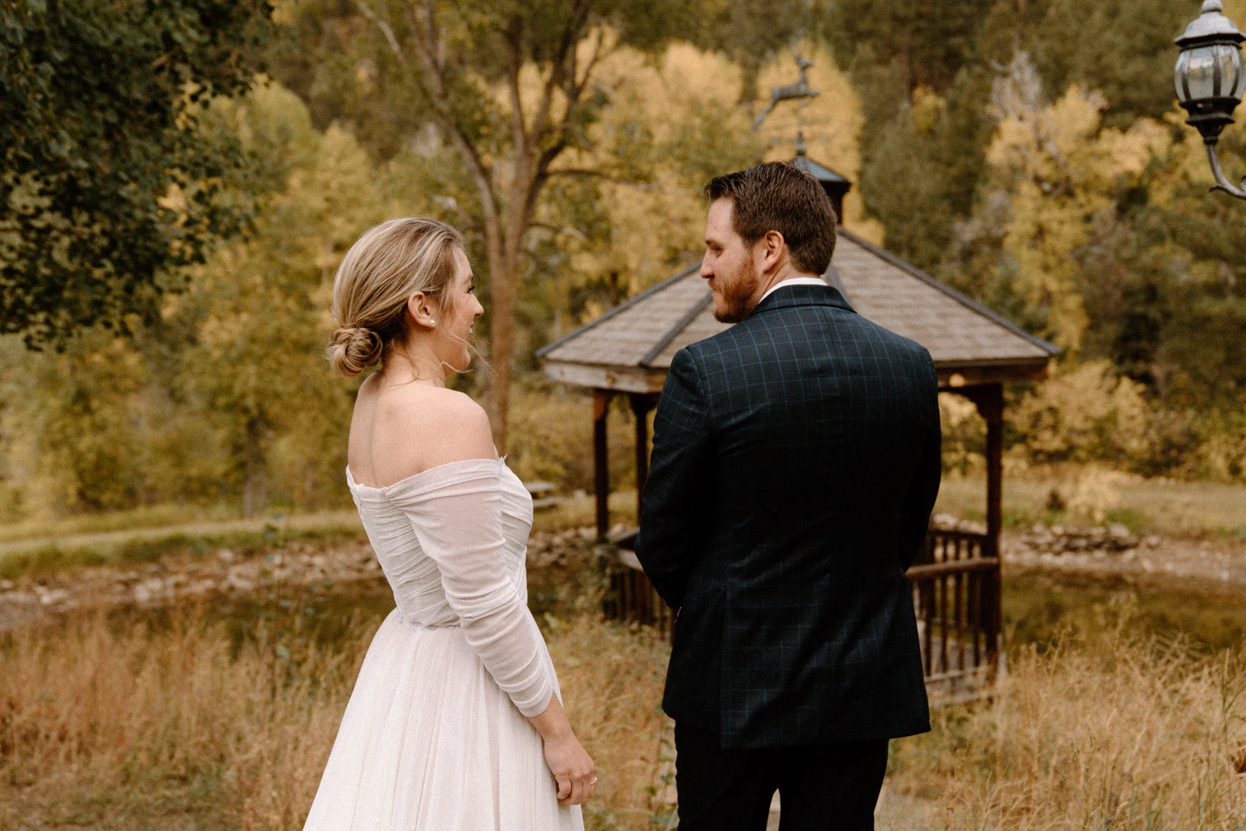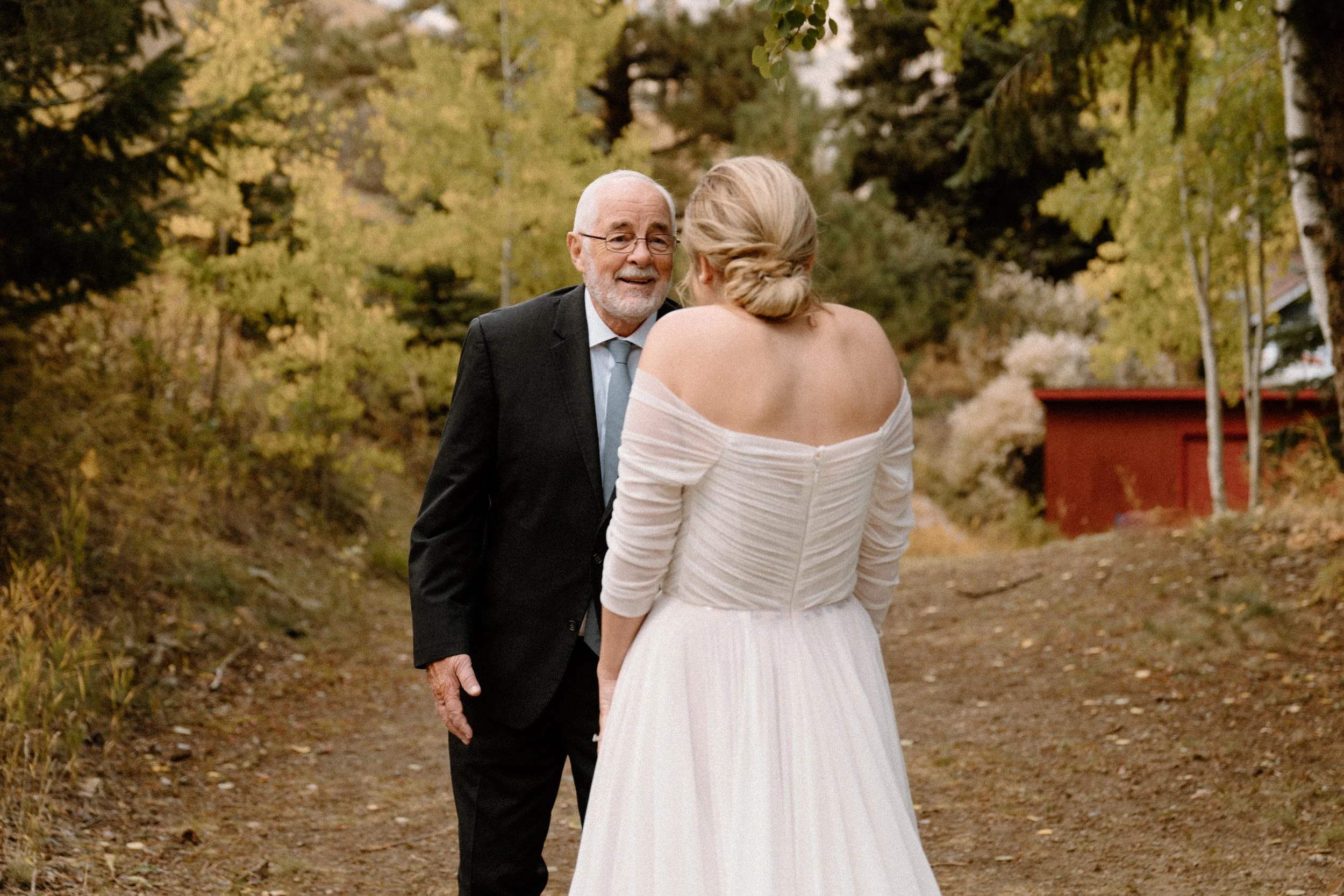 On the morning of Jordan and Molly’s wedding, we started the day out at the CUTEST Airbnb ever in Idaho Springs close to North Star Gatherings. We had the best morning getting ready, doing wedding party photos, and the sweetest first look between Molly and Jordan and also Molly and her dad! It was the perfect sunny, crisp fall day with the most gorgeous fall color ever! Having a slow paced morning is the best thing ever because it allows you to enjoy time with your wedding party and each other without feeling rushed!