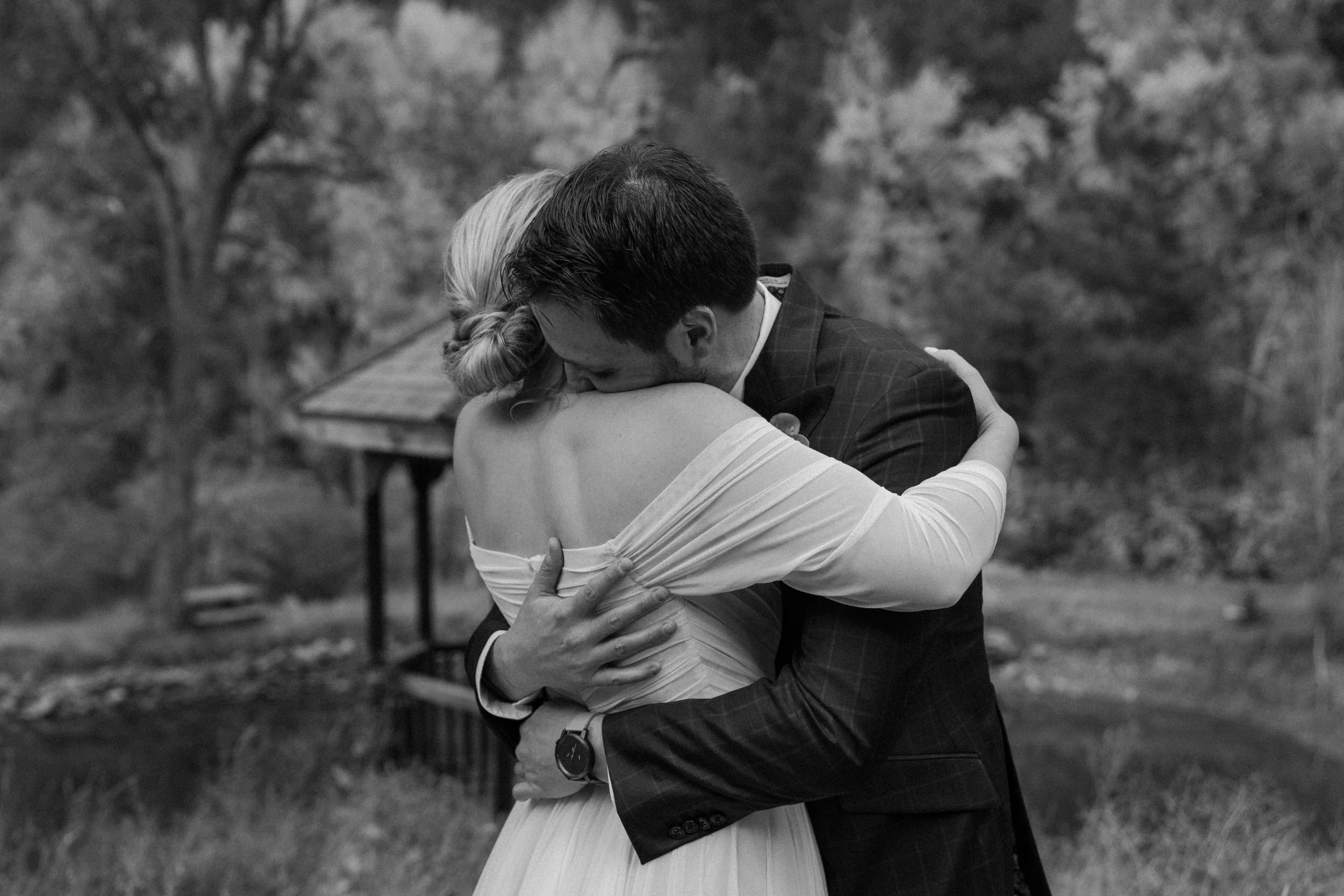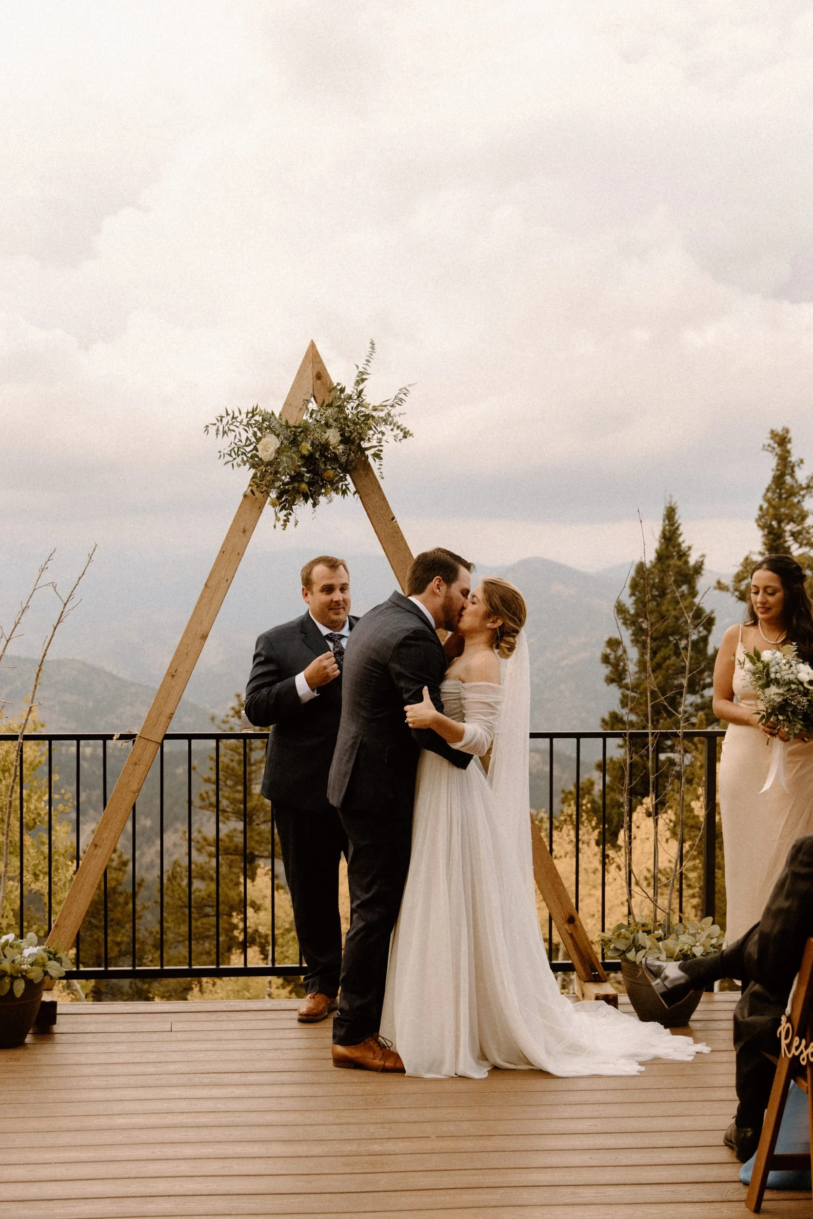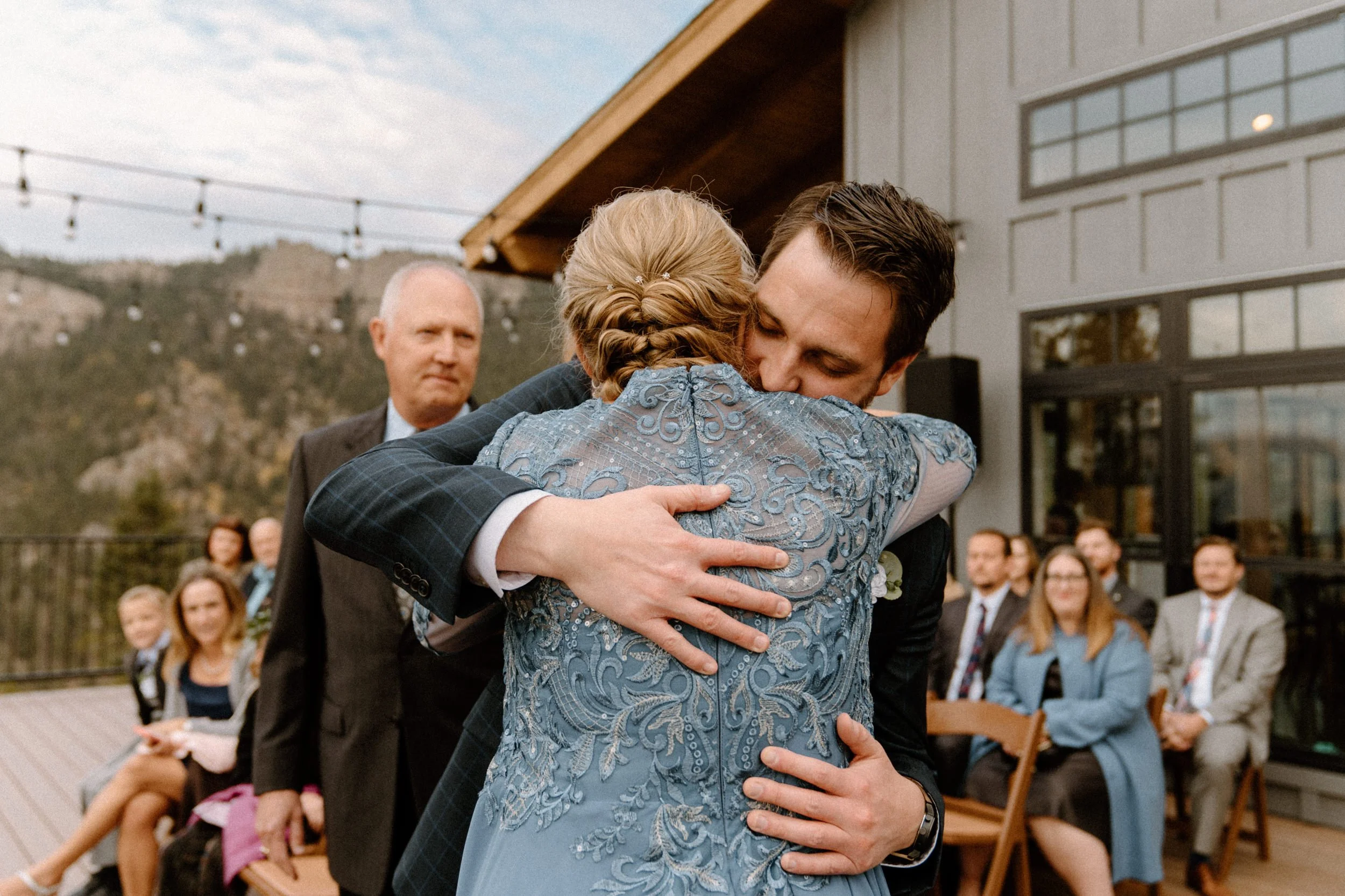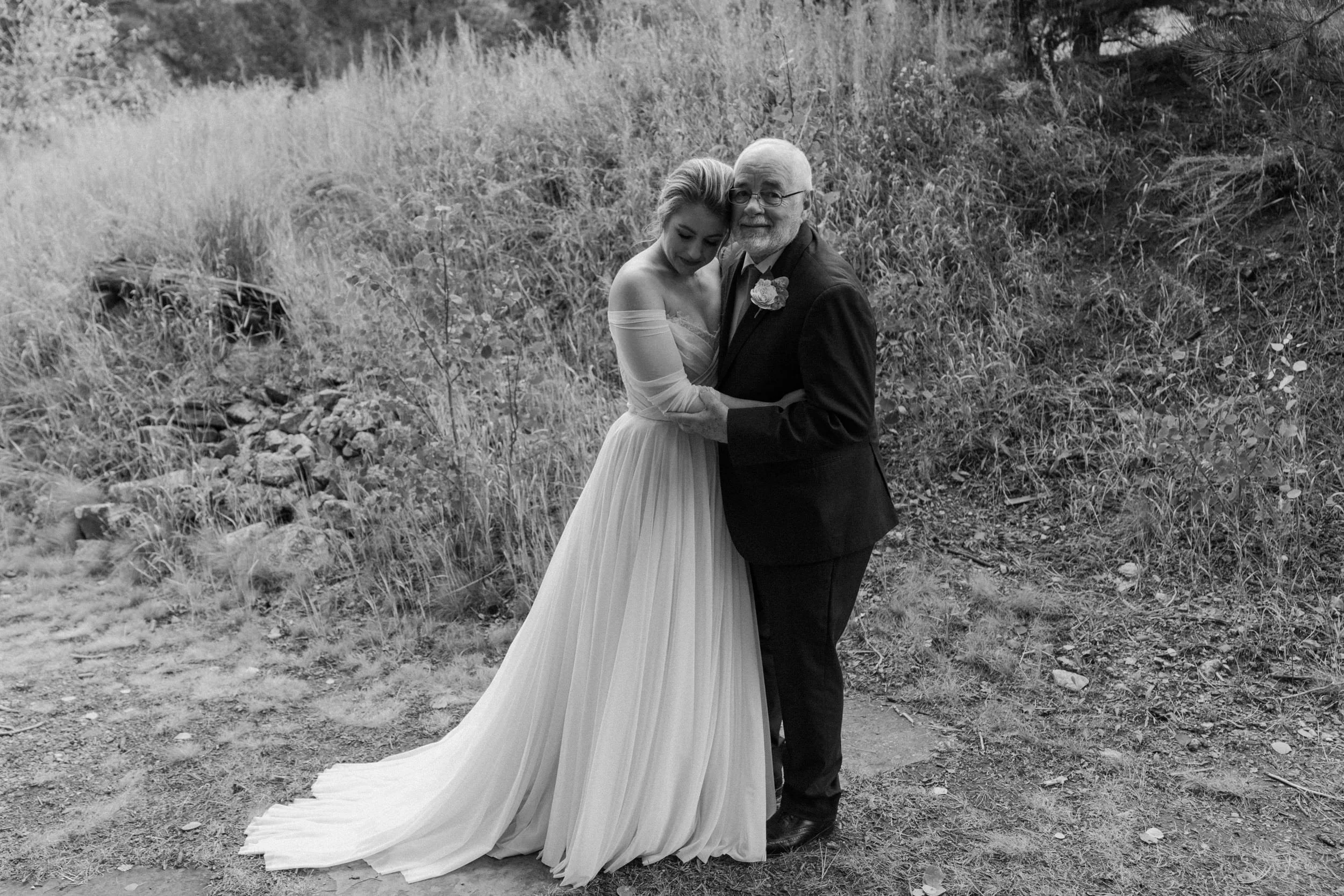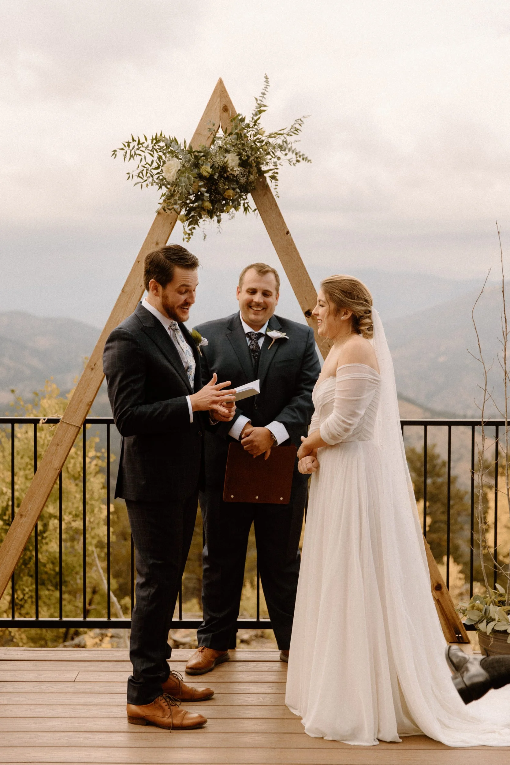 On the morning of Jordan and Molly’s wedding, we started the day out at the CUTEST Airbnb ever in Idaho Springs close to North Star Gatherings. We had the best morning getting ready, doing wedding party photos, and the sweetest first look between Molly and Jordan and also Molly and her dad! It was the perfect sunny, crisp fall day with the most gorgeous fall color ever! Having a slow paced morning is the best thing ever because it allows you to enjoy time with your wedding party and each other without feeling rushed!