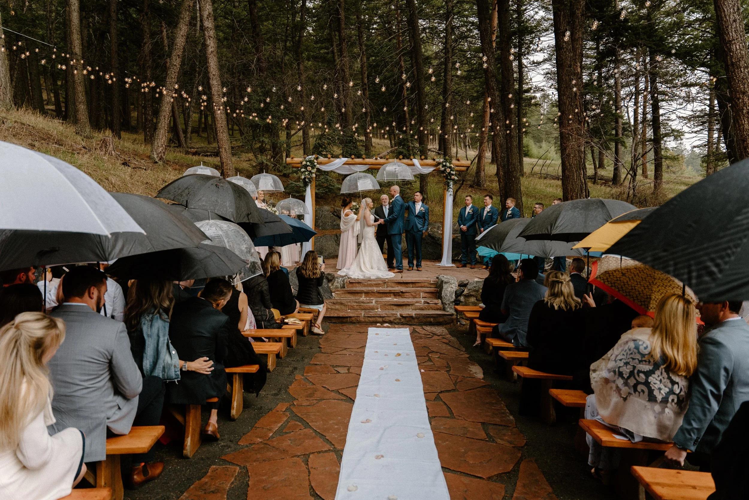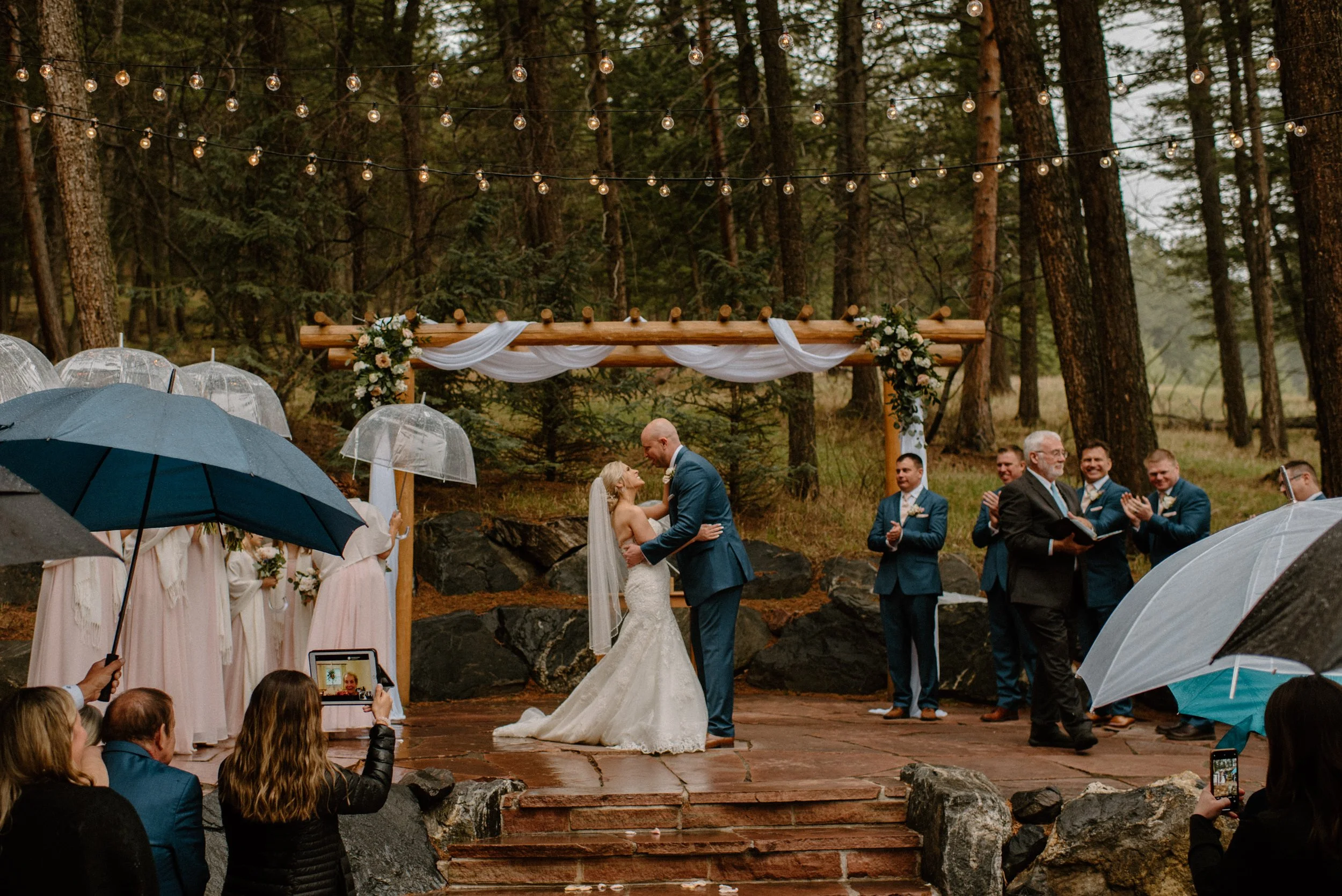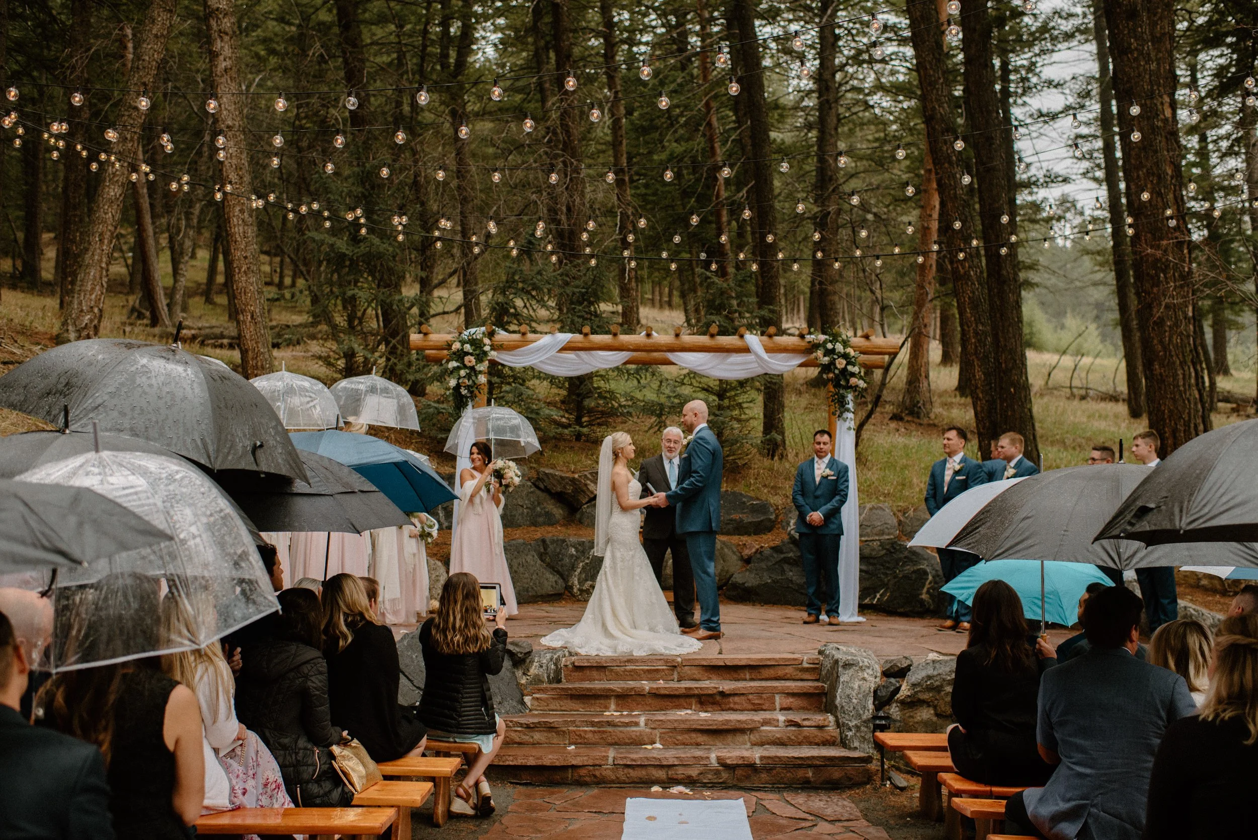 We started out Heidi and Jason’s wedding day getting ready and then went for first look and wedding party photos at Lookout Mountain near the venue. It was so much fun getting to adventure around with these two and their crew! When we made it to the venue, the rain began to start. Instead of stressing about or moving the ceremony inside, these two just decided to embrace it! They had umbrellas handed out and did the ceremony outside anyways. It was SO gorgeous and added to the romantic ambiance of the day! From there they spent the evening dancing, laughing, and celebrating with friends and family. It was the perfect example of making your wedding day amazing no matter what and not stressing things out of your control like the weather!