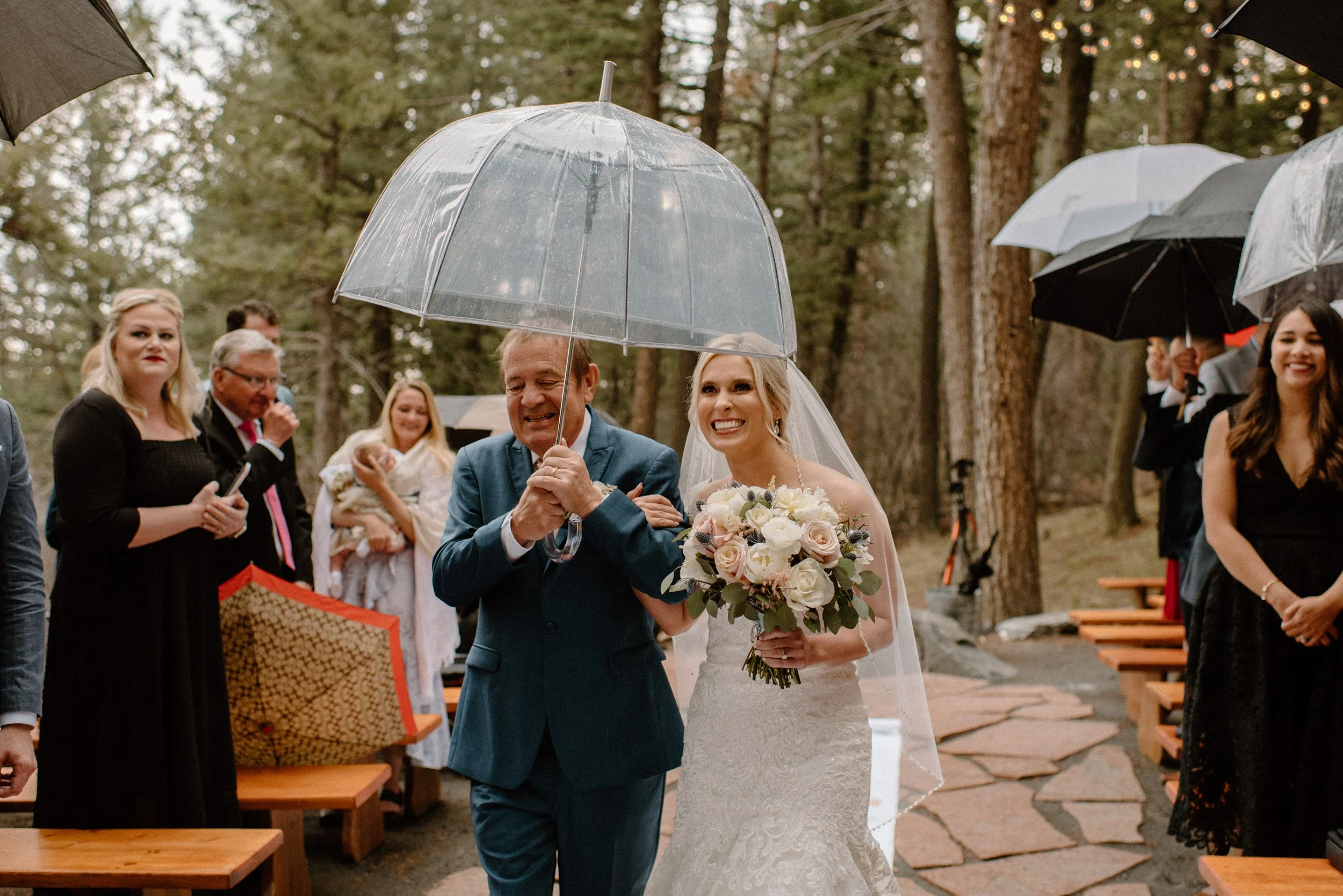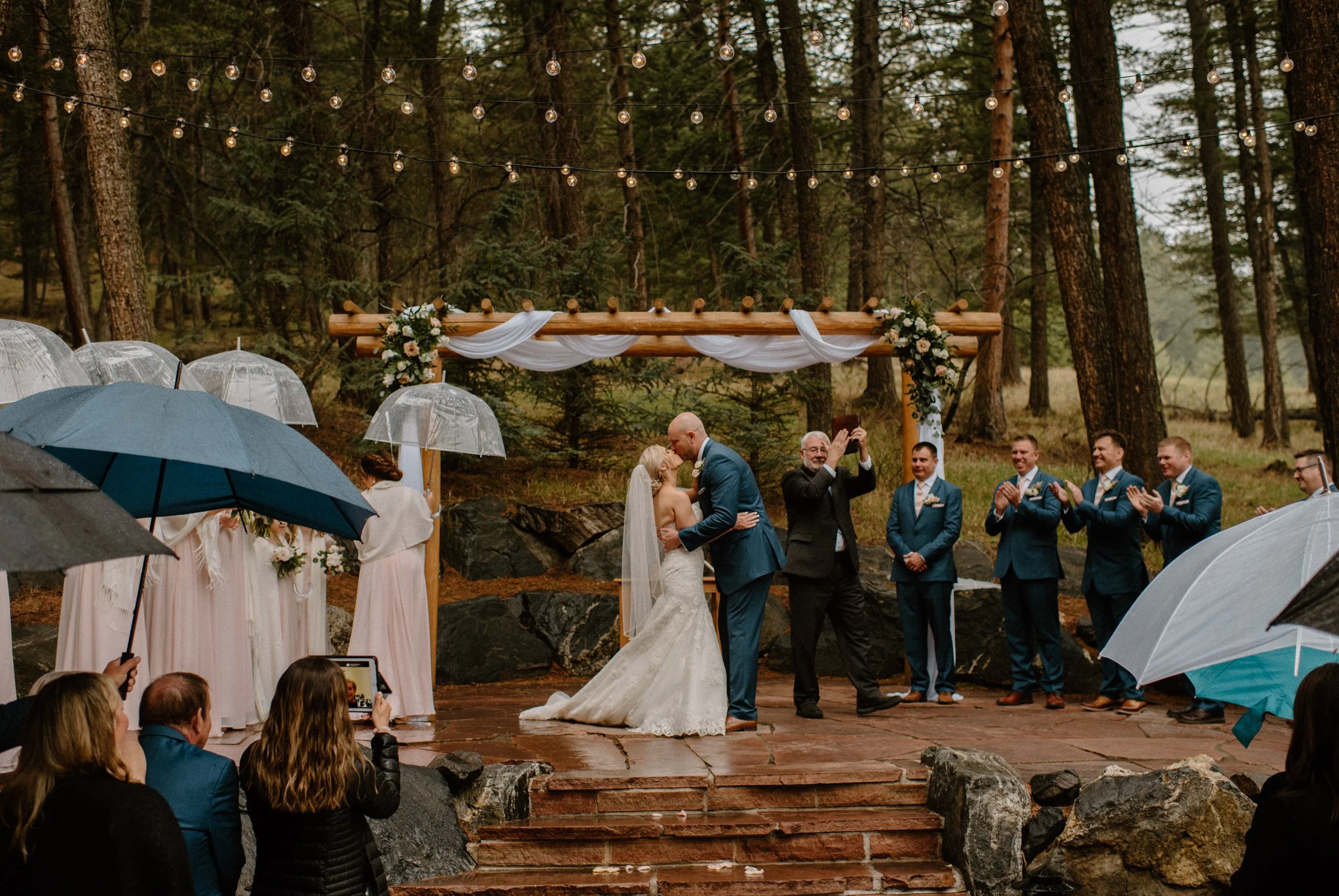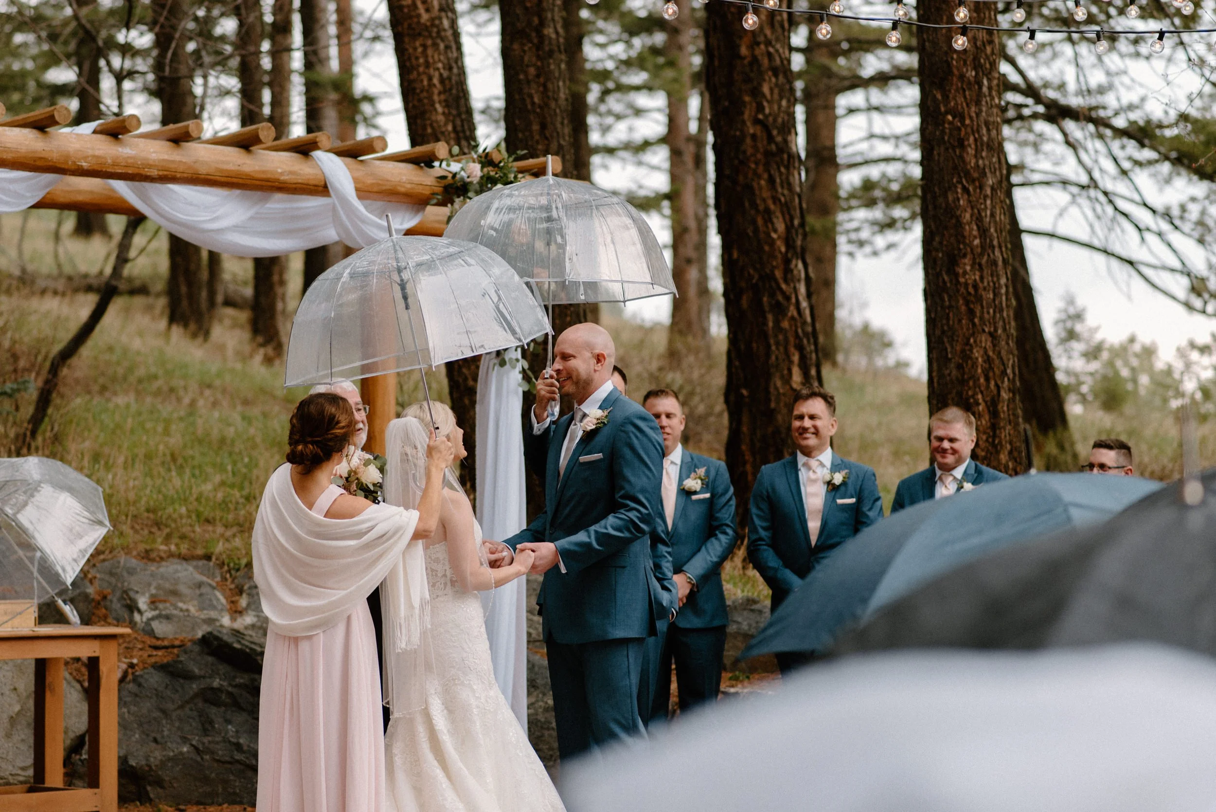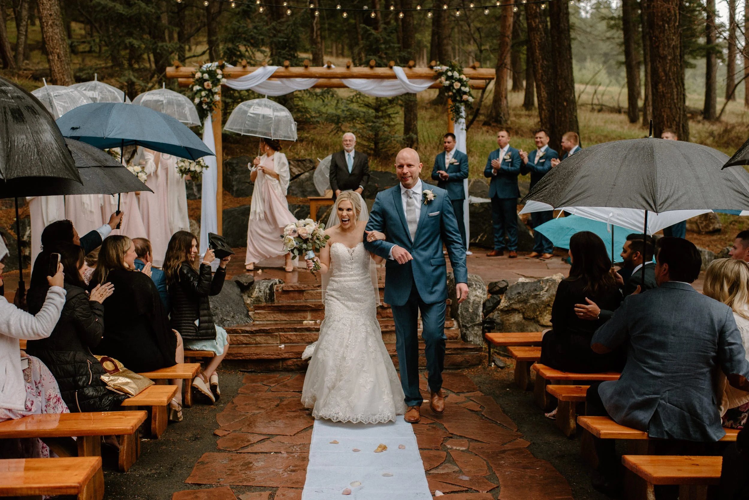 We started out Heidi and Jason’s wedding day getting ready and then went for first look and wedding party photos at Lookout Mountain near the venue. It was so much fun getting to adventure around with these two and their crew! When we made it to the venue, the rain began to start. Instead of stressing about or moving the ceremony inside, these two just decided to embrace it! They had umbrellas handed out and did the ceremony outside anyways. It was SO gorgeous and added to the romantic ambiance of the day! From there they spent the evening dancing, laughing, and celebrating with friends and family. It was the perfect example of making your wedding day amazing no matter what and not stressing things out of your control like the weather!