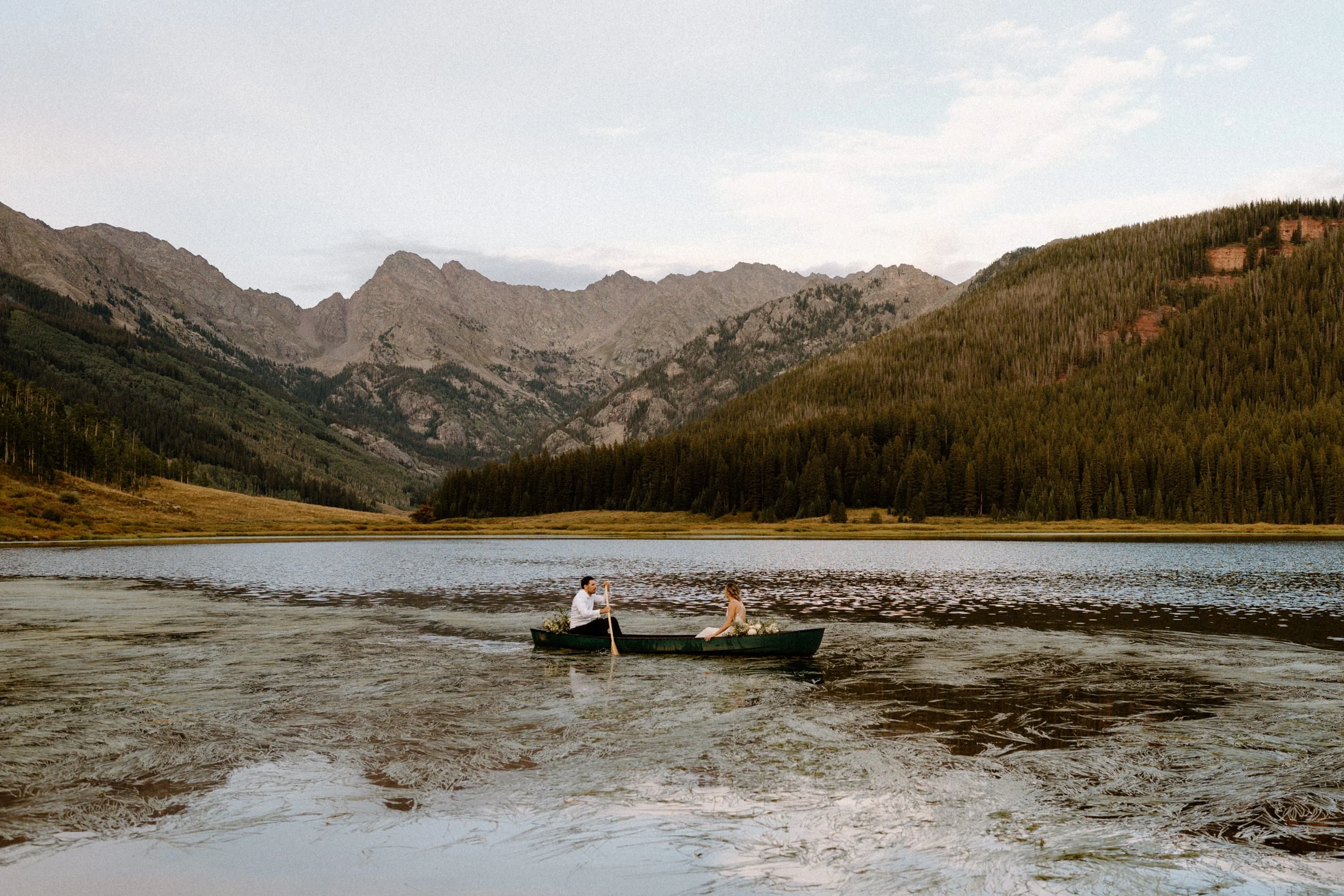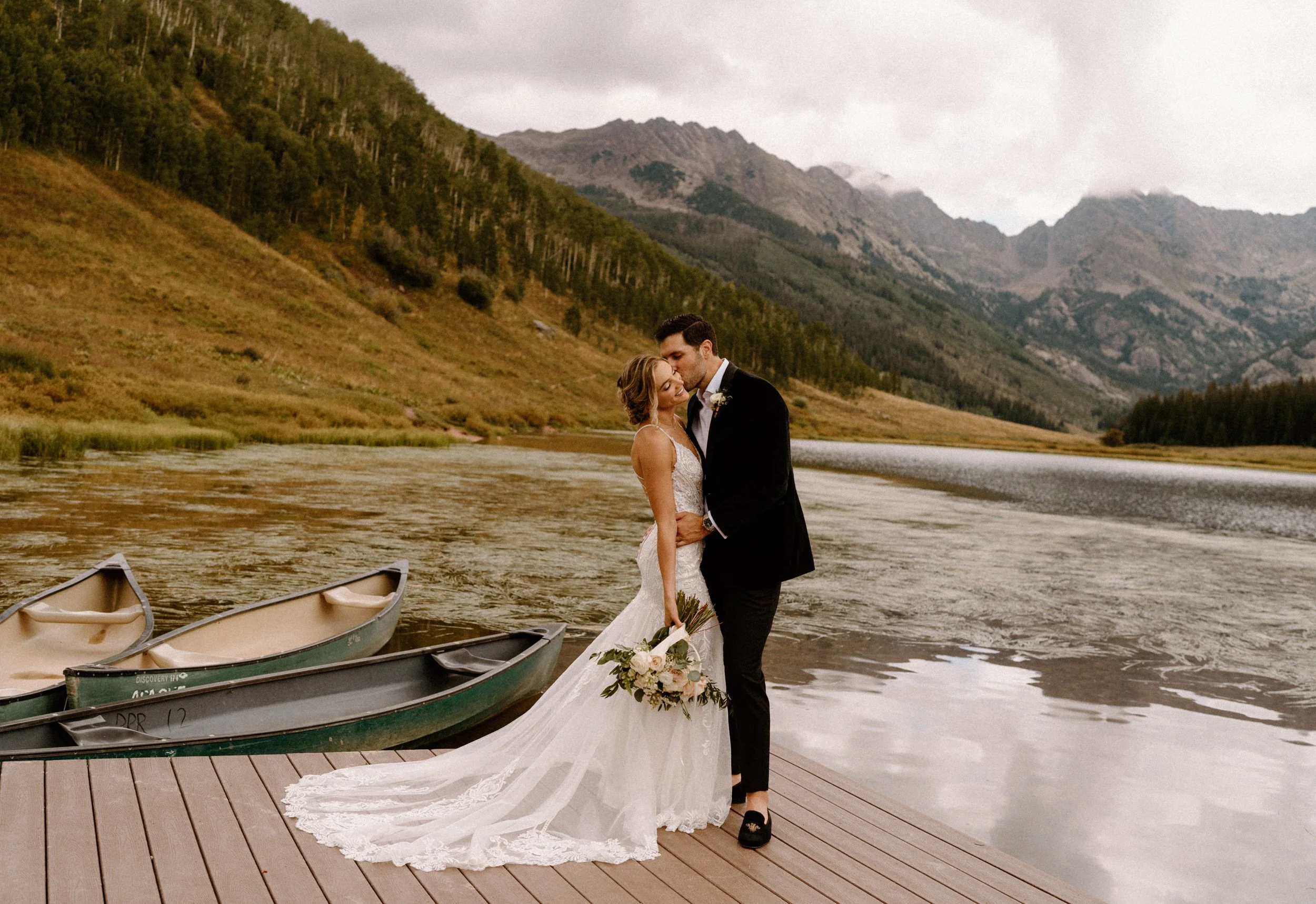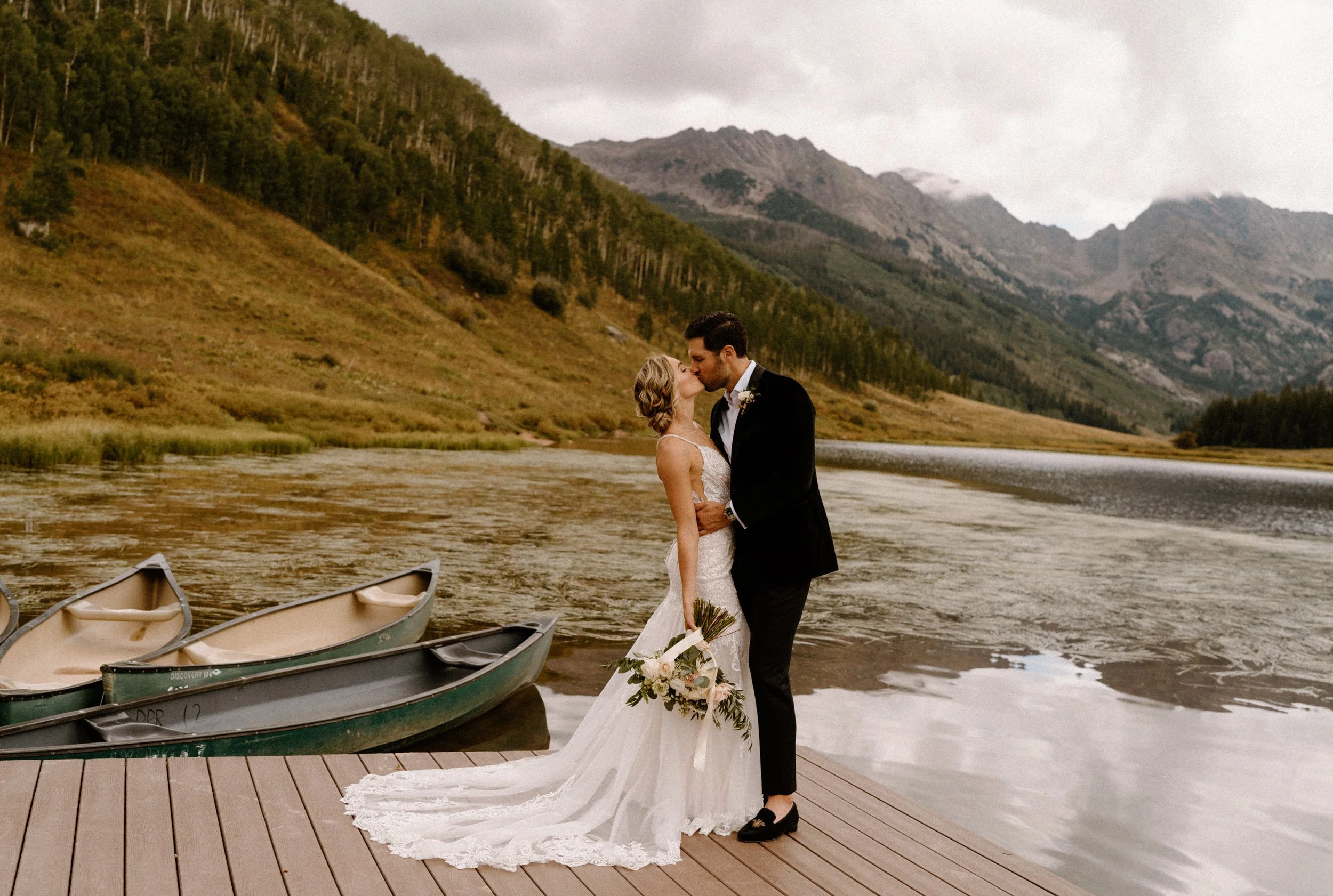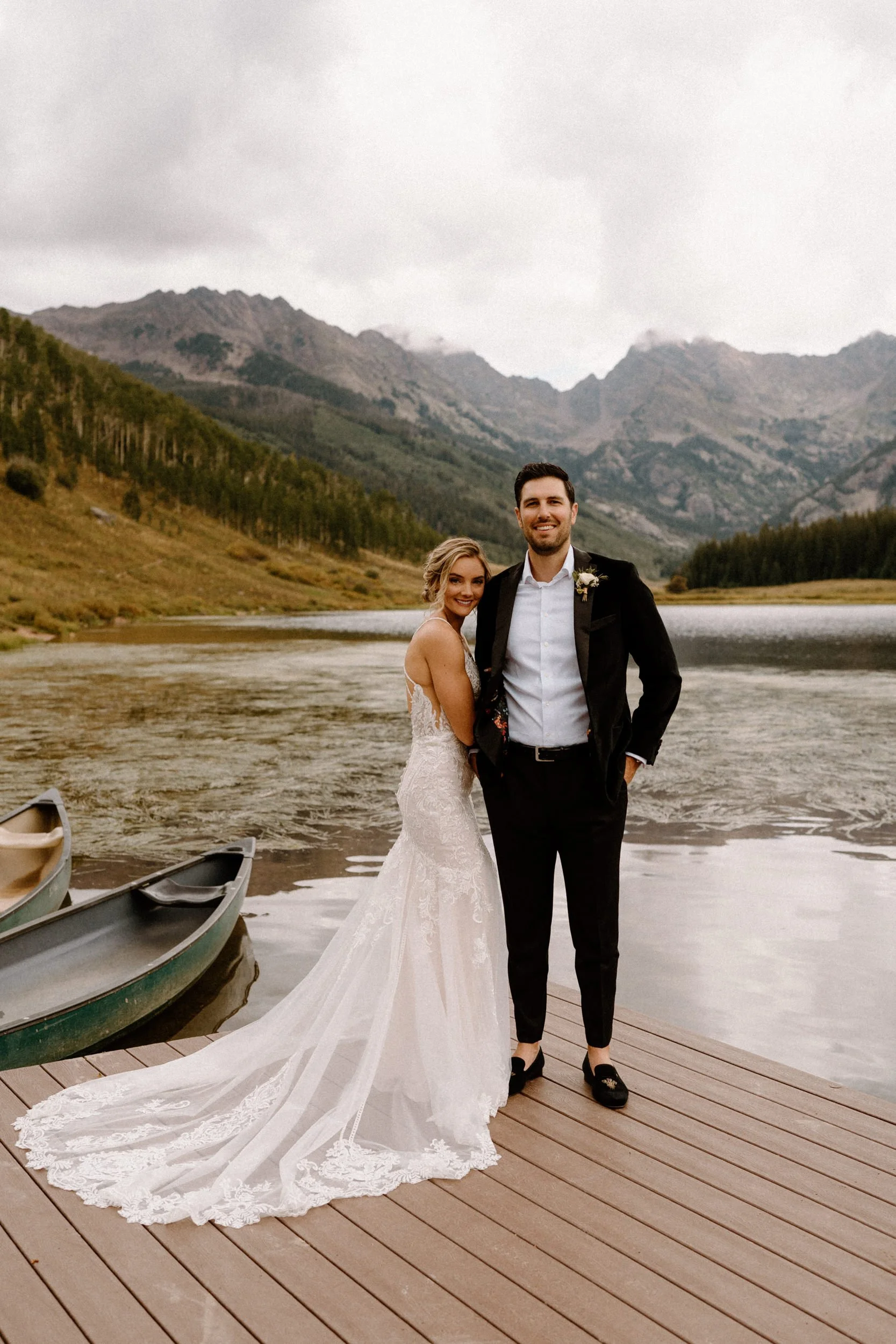On Alex and Zach’s wedding day, we had the best time soaking up the views and having the most perfect Colorado mountain evening with all of their friends and family. They took the canoe out, hung around the fire, and danced the night away! There was even a moose who hung out in the water all day, it was literally perfect!