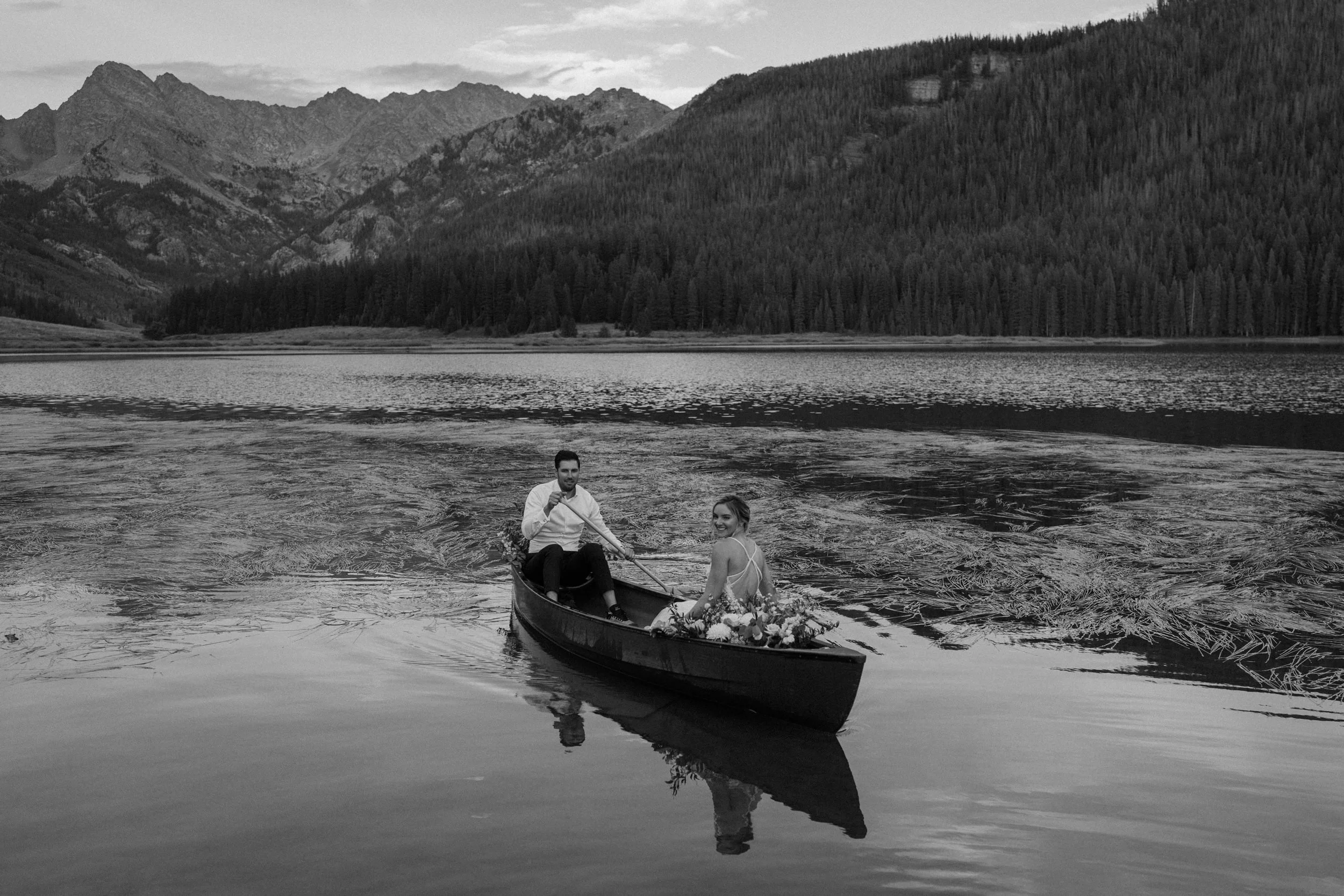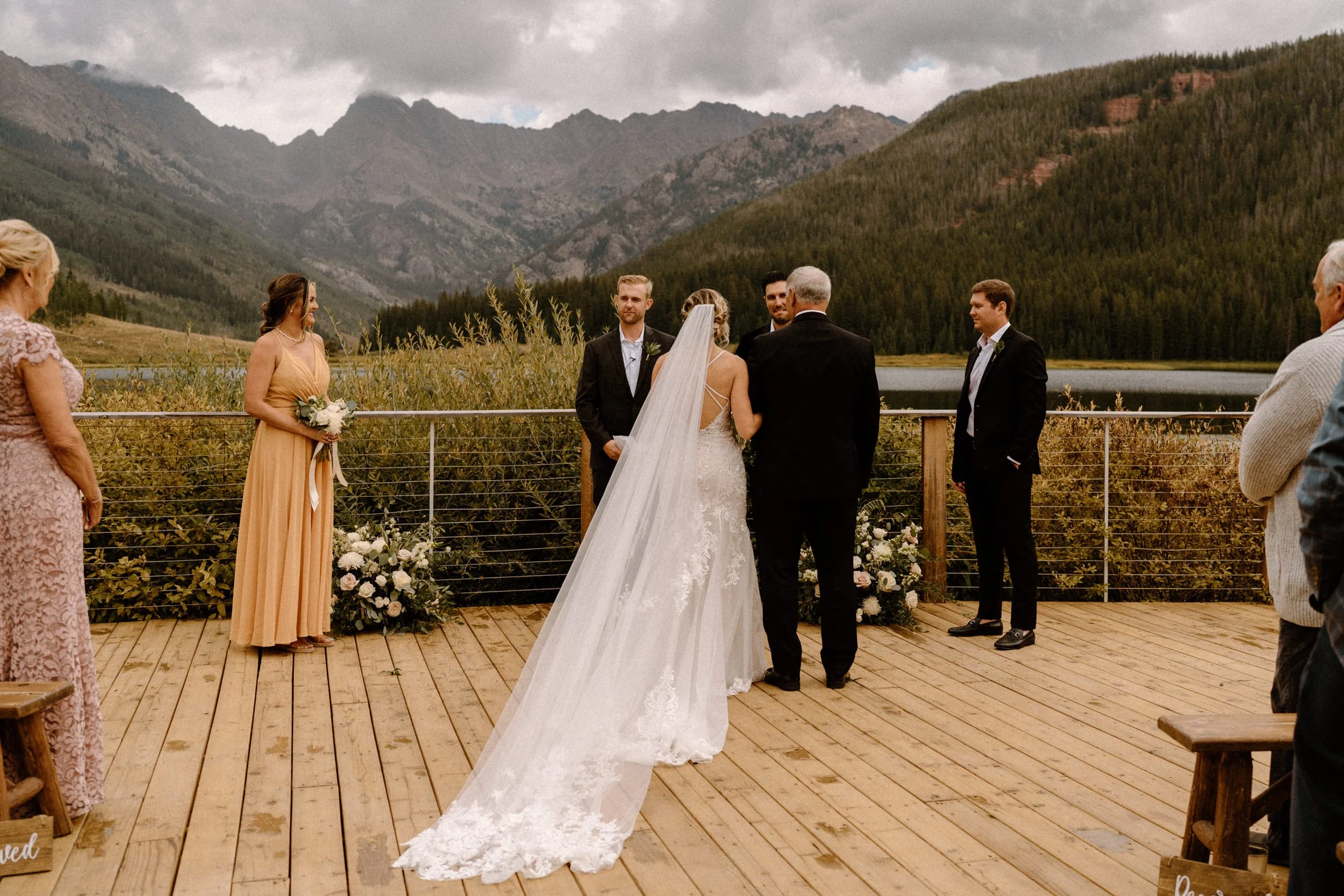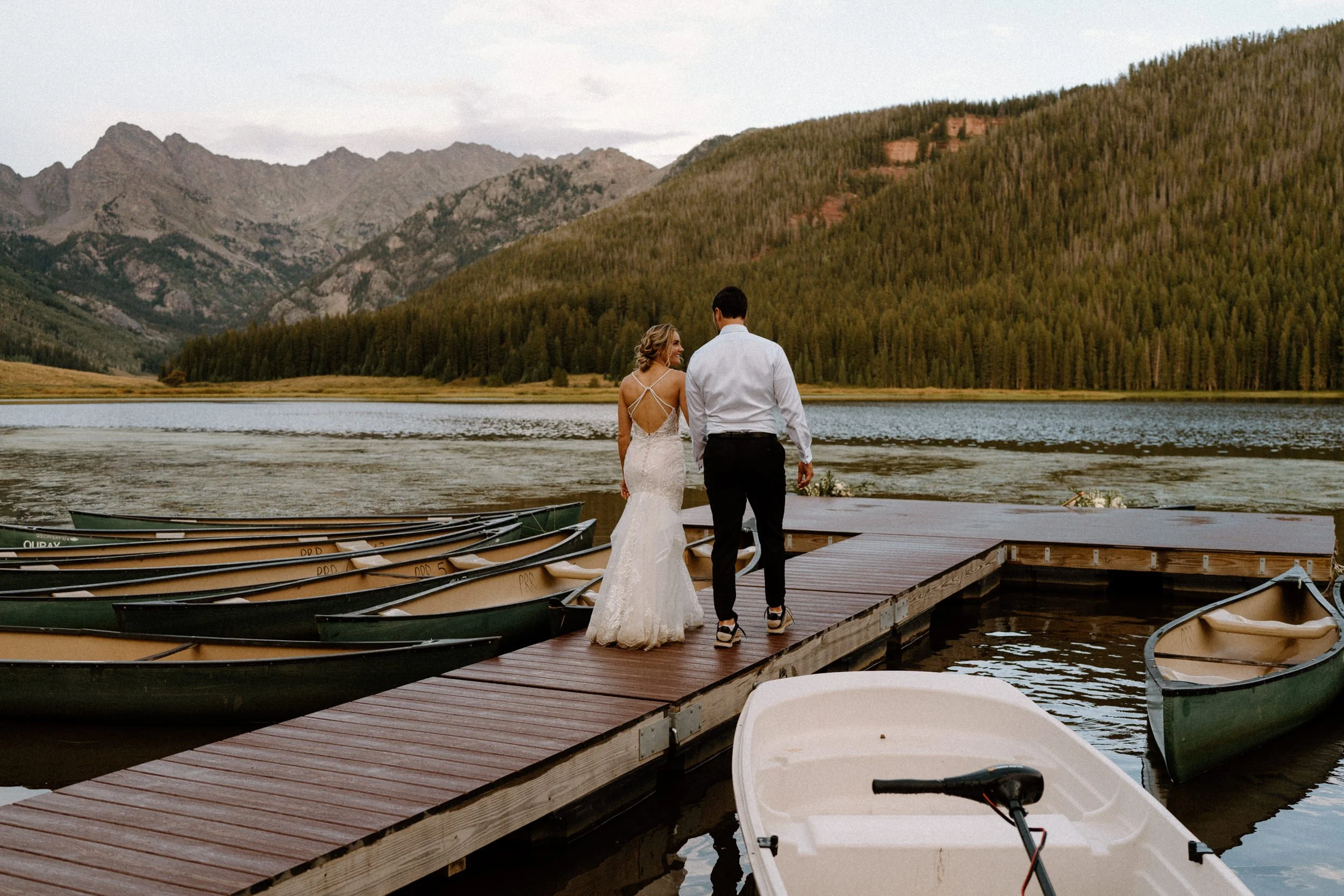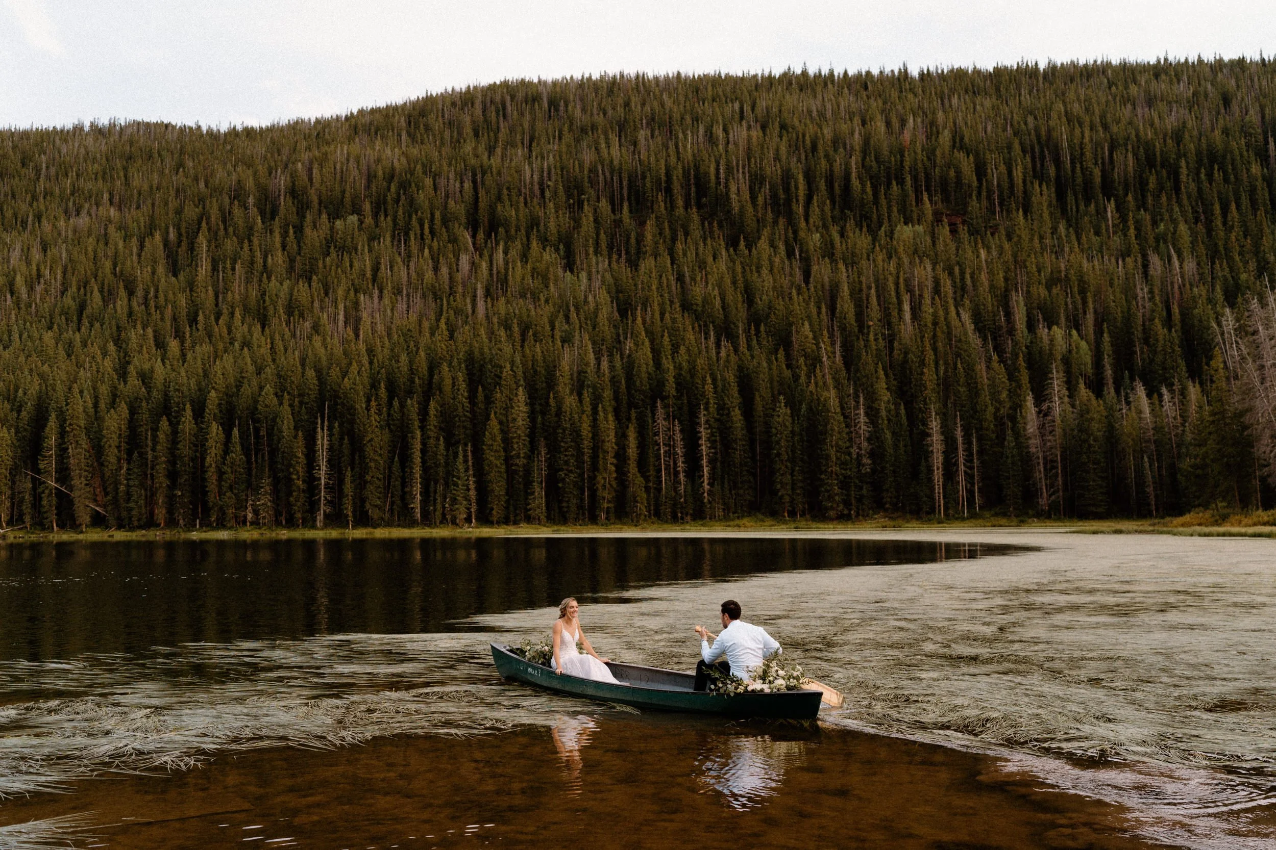 On Alex and Zach’s wedding day, we had the best time soaking up the views and having the most perfect Colorado mountain evening with all of their friends and family. They took the canoe out, hung around the fire, and danced the night away! There was even a moose who hung out in the water all day, it was literally perfect!