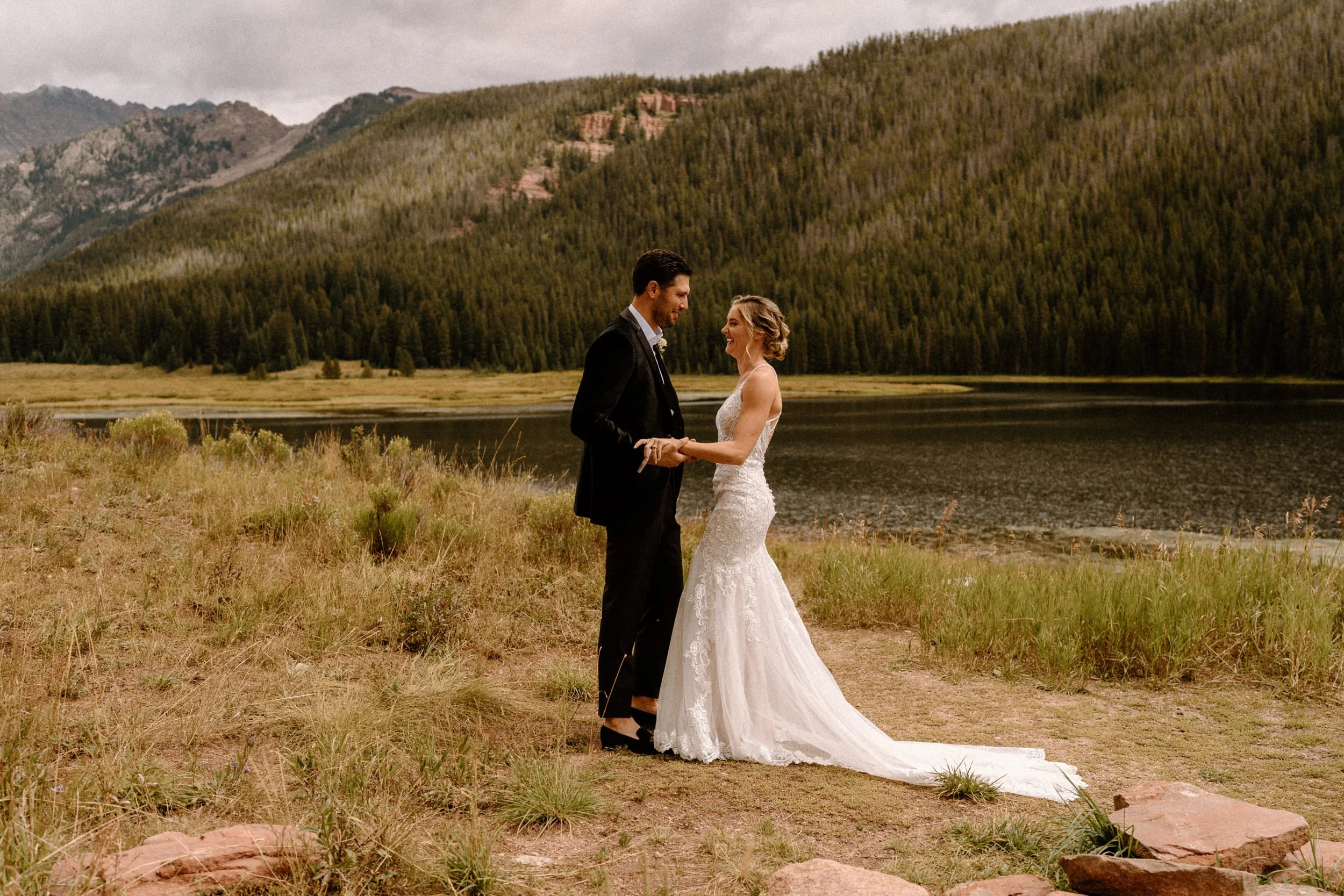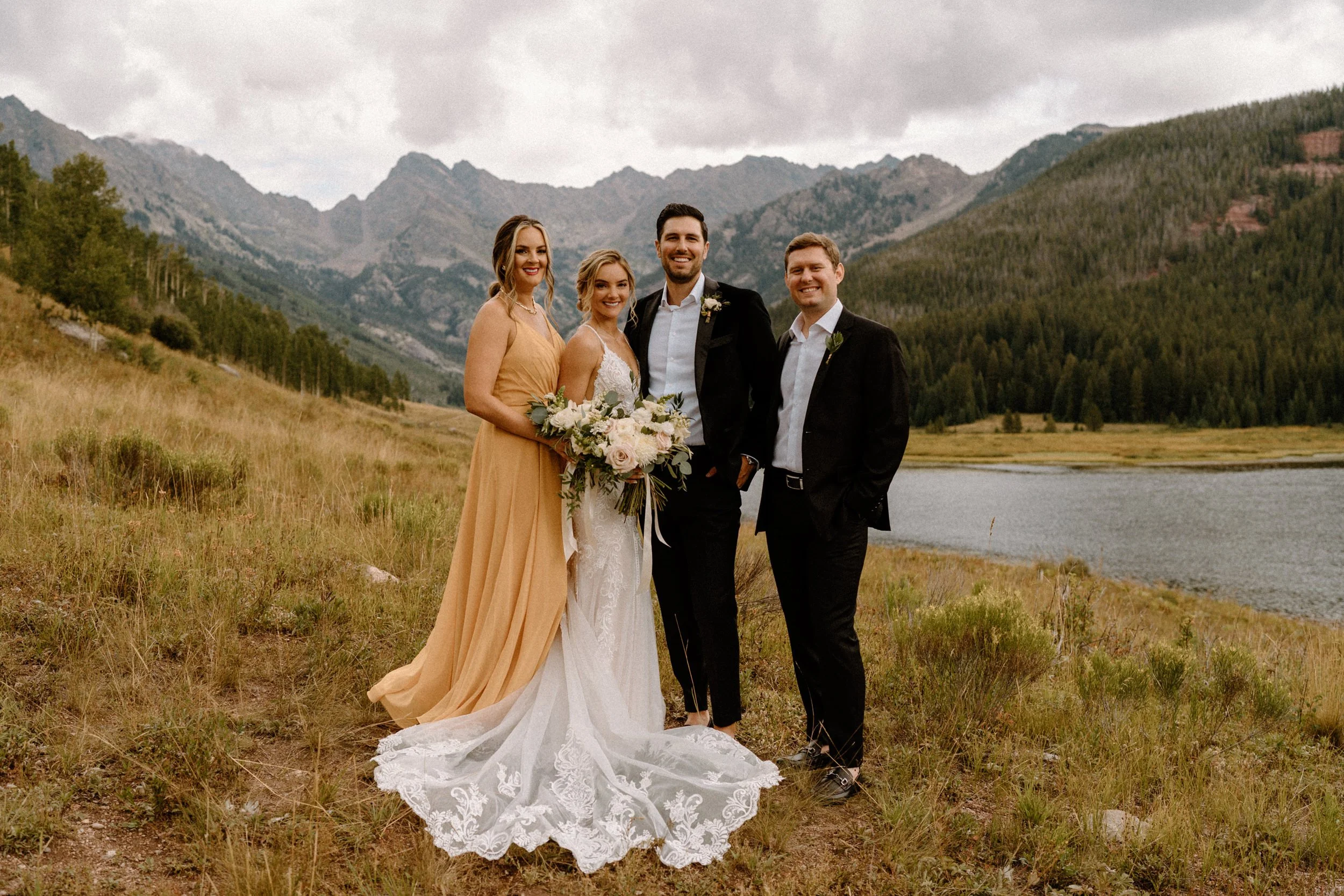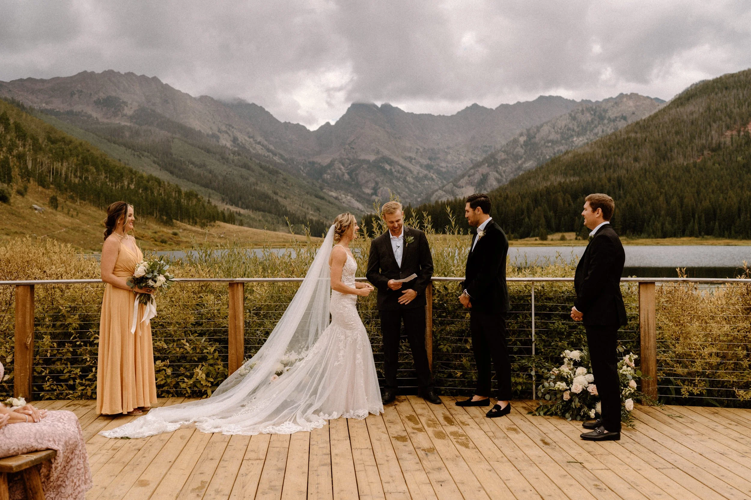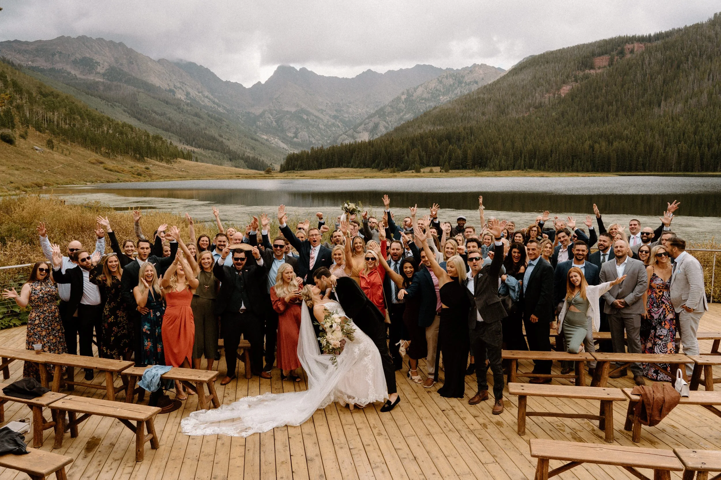On Alex and Zach’s wedding day, we had the best time soaking up the views and having the most perfect Colorado mountain evening with all of their friends and family. They took the canoe out, hung around the fire, and danced the night away! There was even a moose who hung out in the water all day, it was literally perfect!