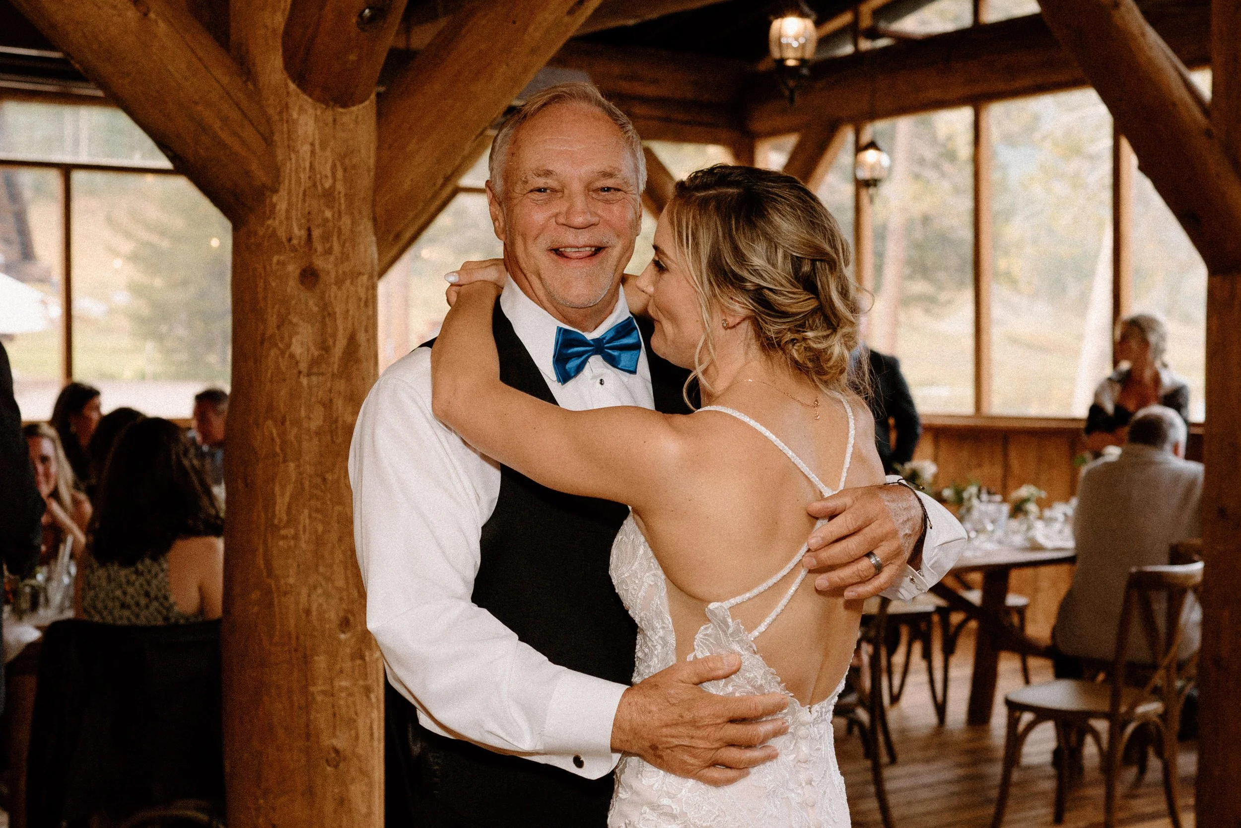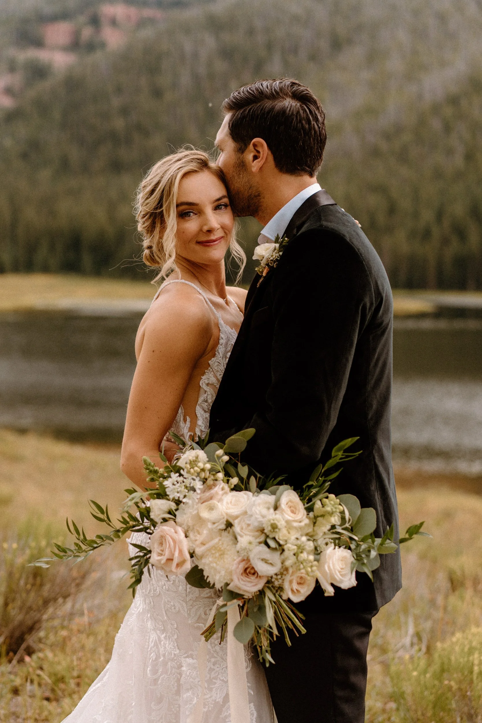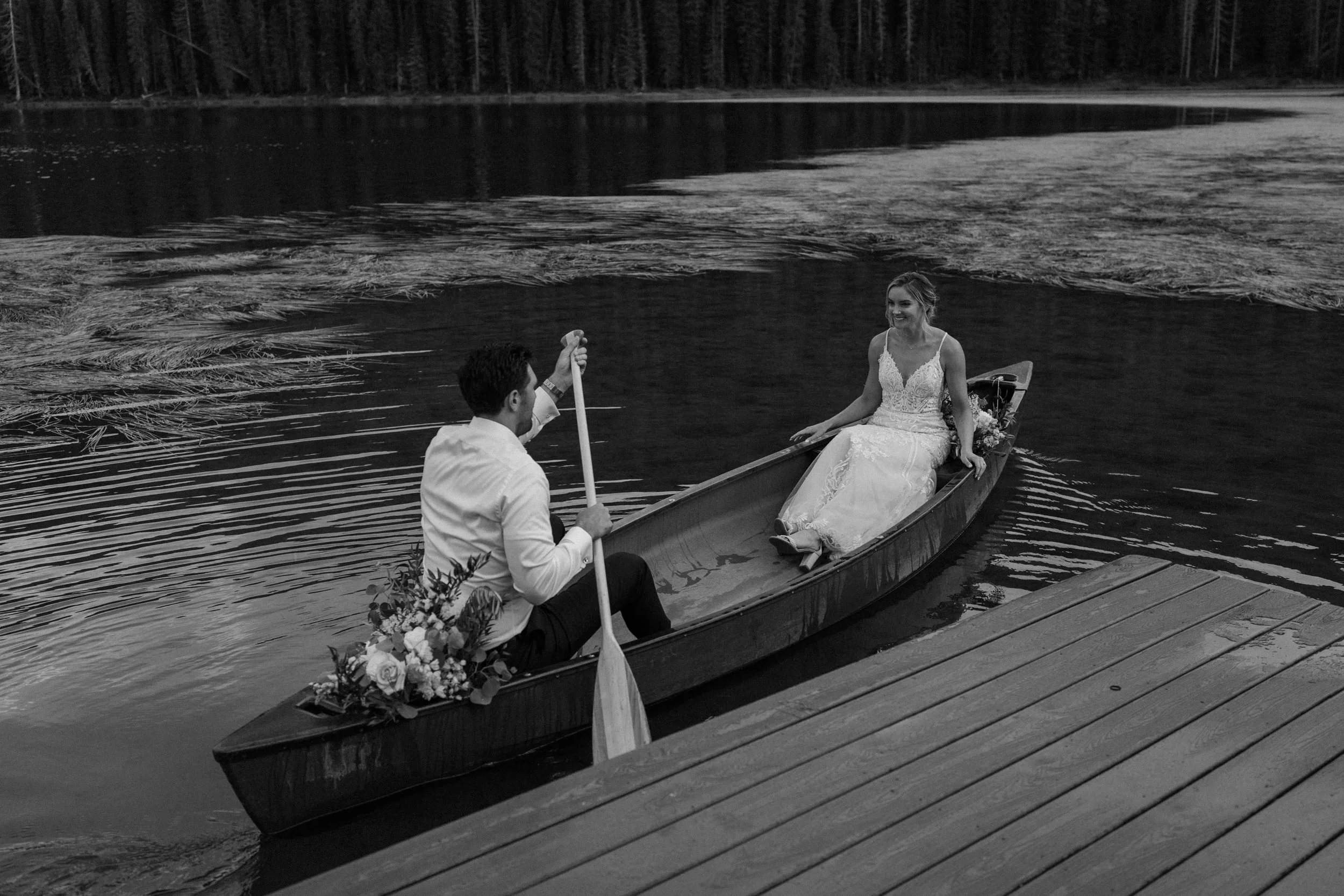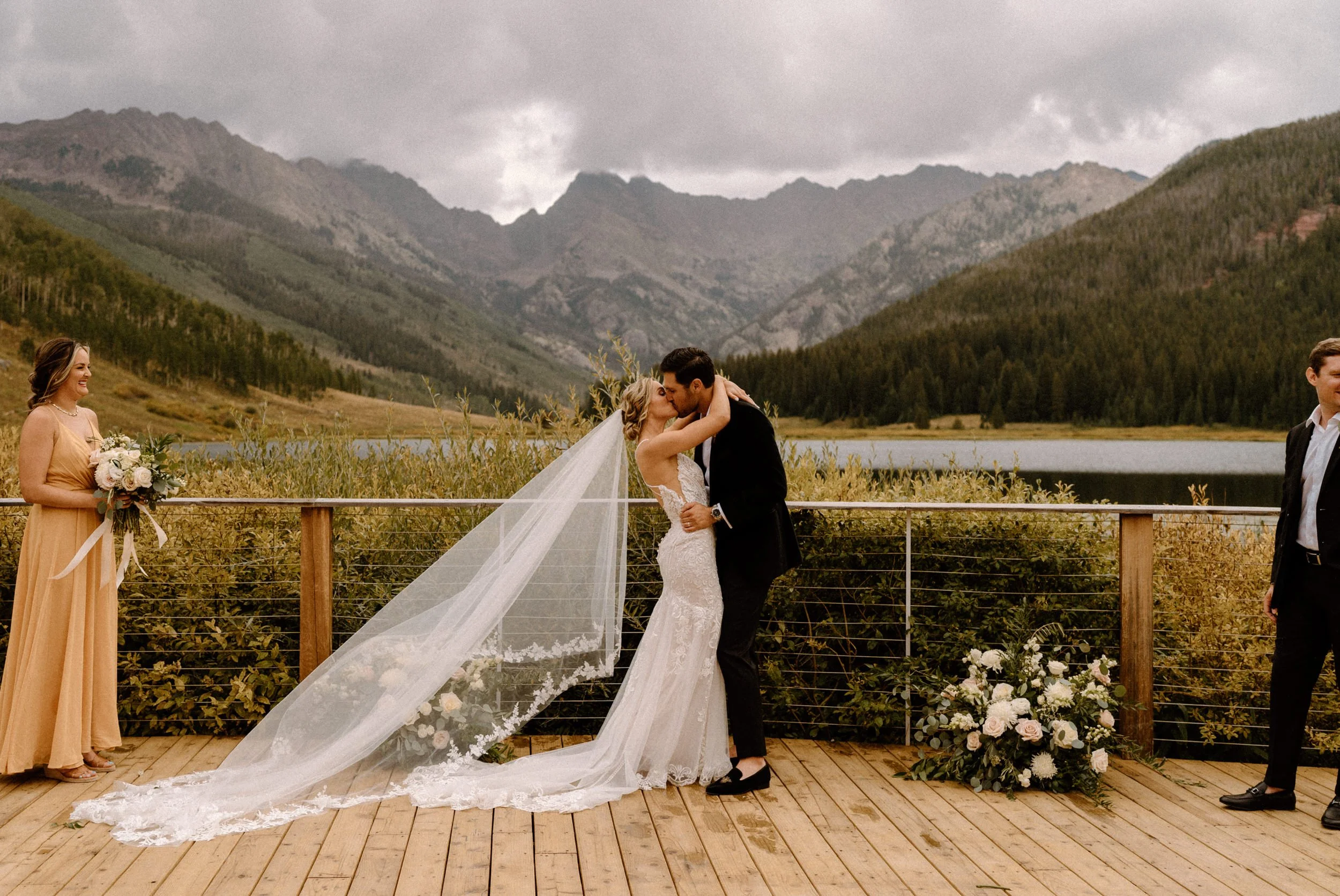 On Alex and Zach’s wedding day, we had the best time soaking up the views and having the most perfect Colorado mountain evening with all of their friends and family. They took the canoe out, hung around the fire, and danced the night away! There was even a moose who hung out in the water all day, it was literally perfect!