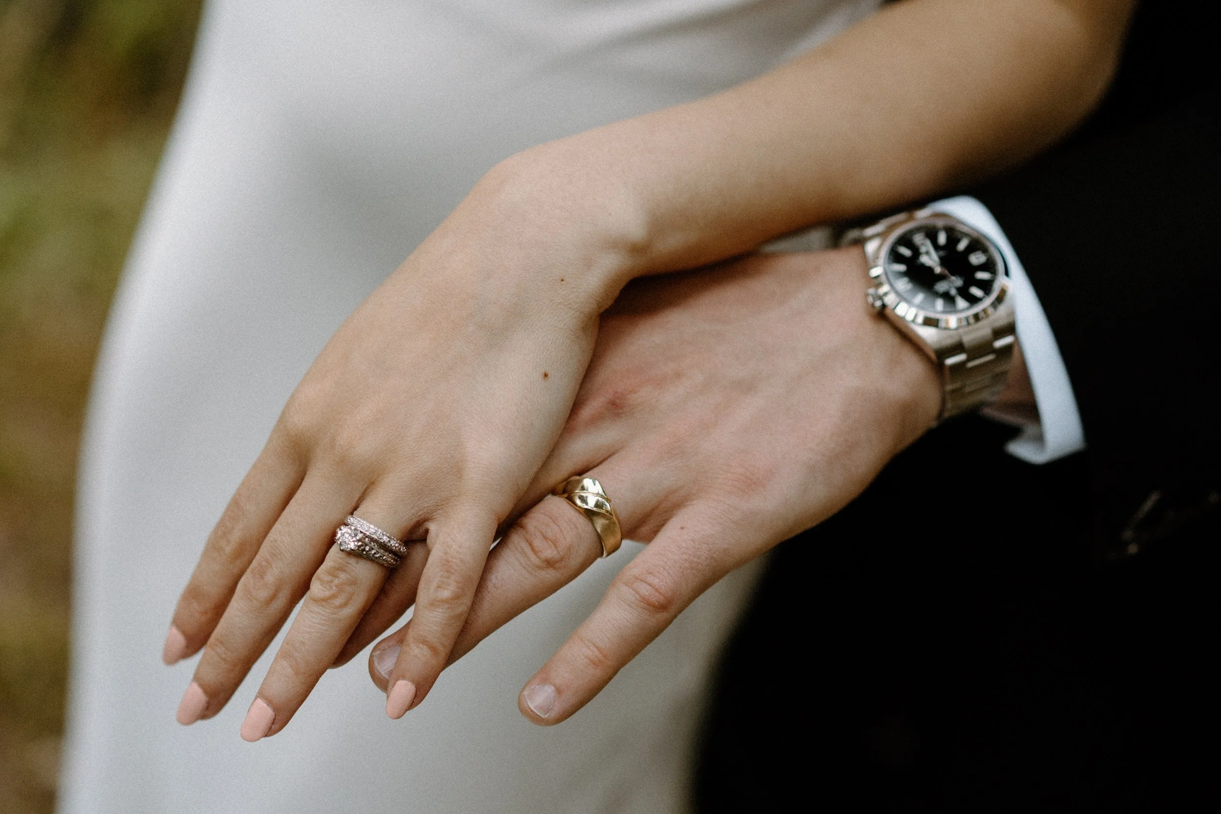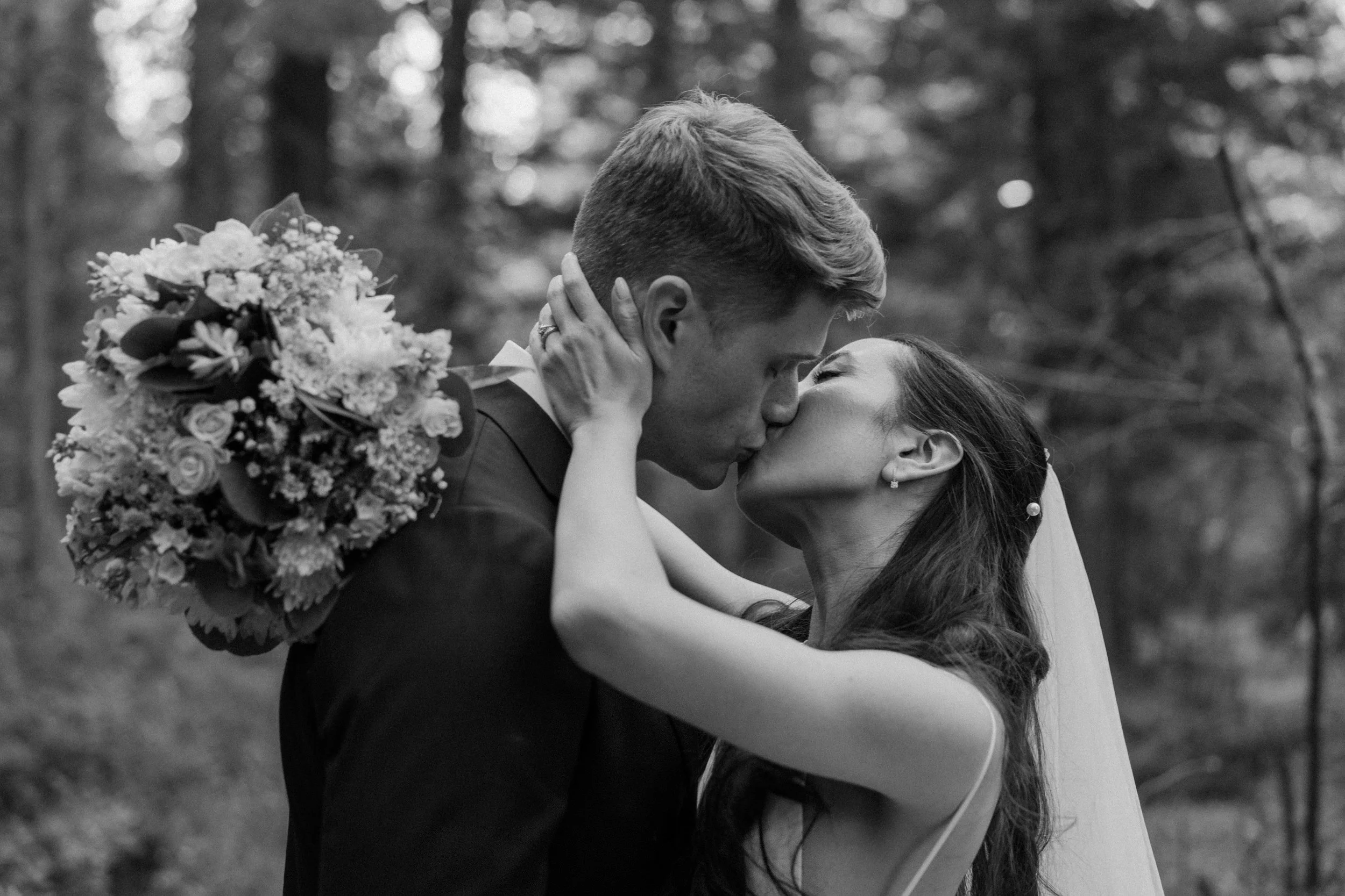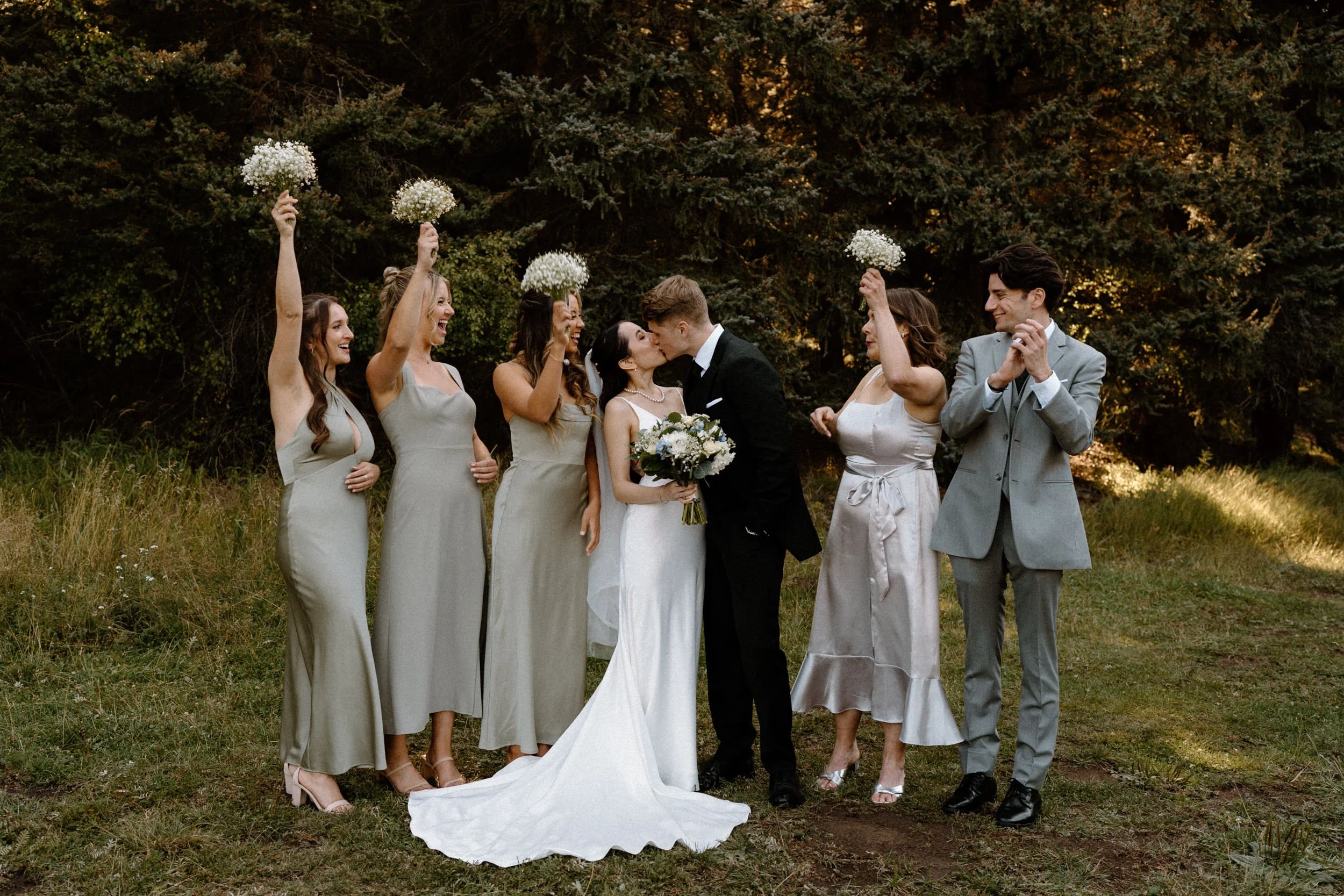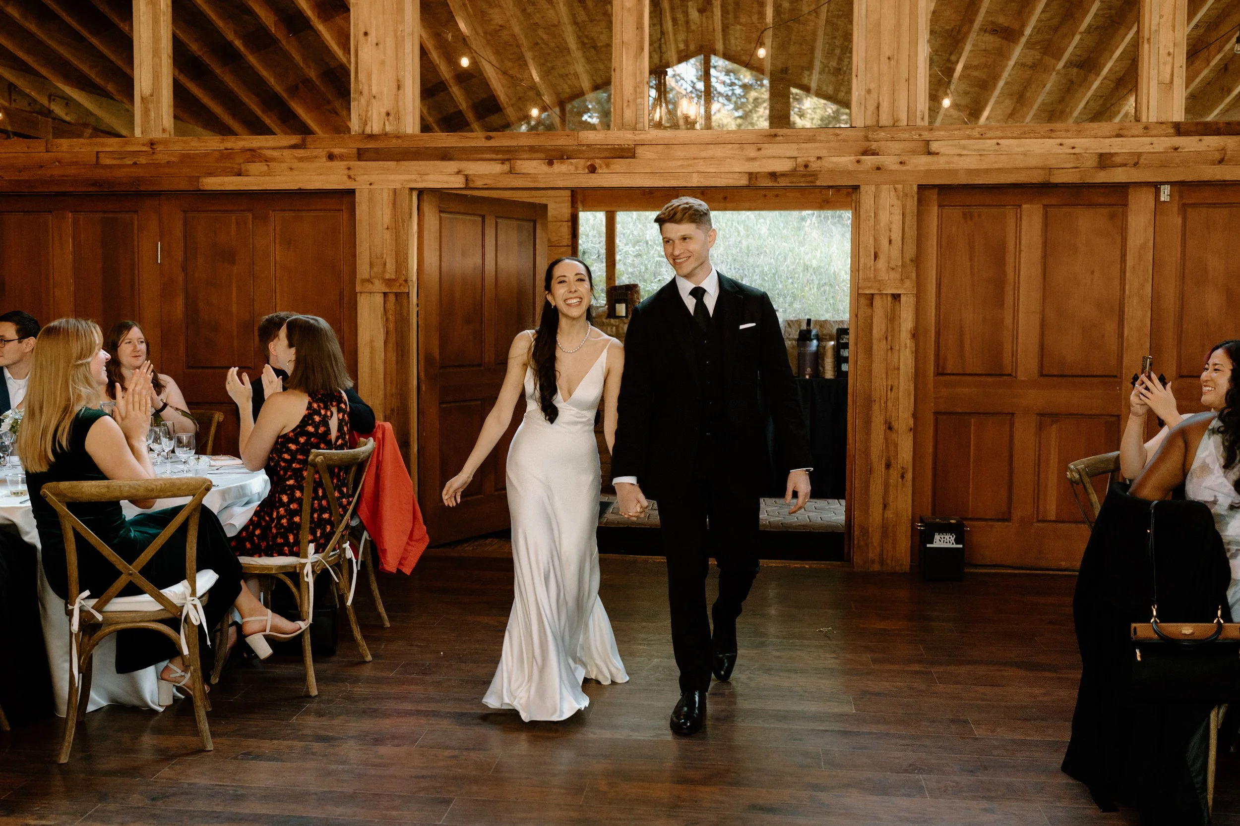 The ceremony took place surrounded by tall pines and mountain peaks, creating a stunning backdrop as Rachel and Gavin promised forever. There was a peacefulness to it all, the kind of wedding where you could feel how deeply connected everyone was. Every part of the day held meaning, from the custom signage to the florals that tied in their favorite colors and memories.
