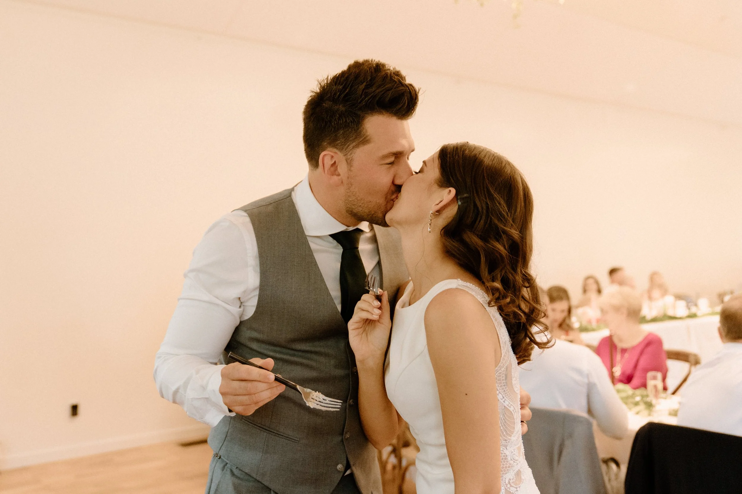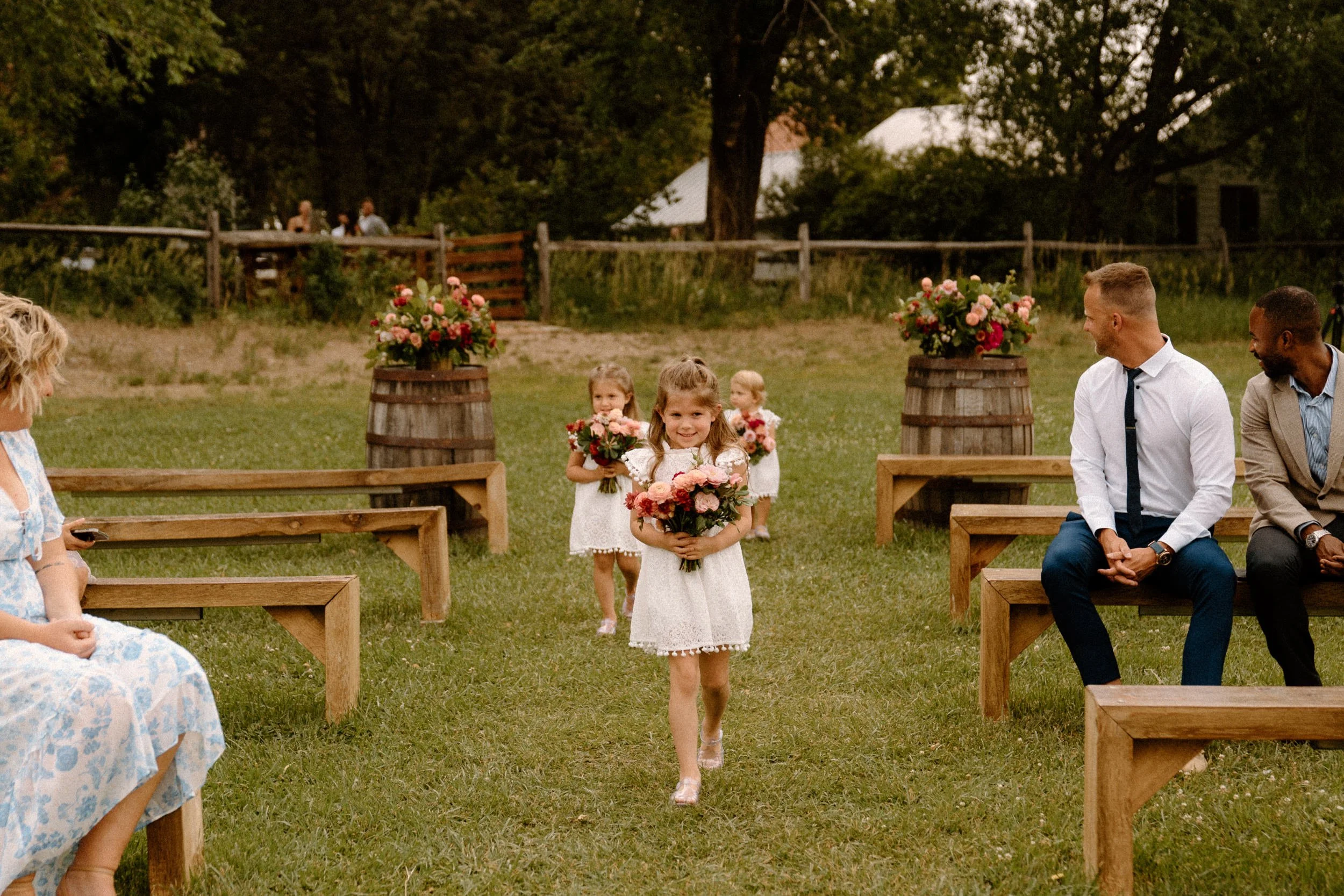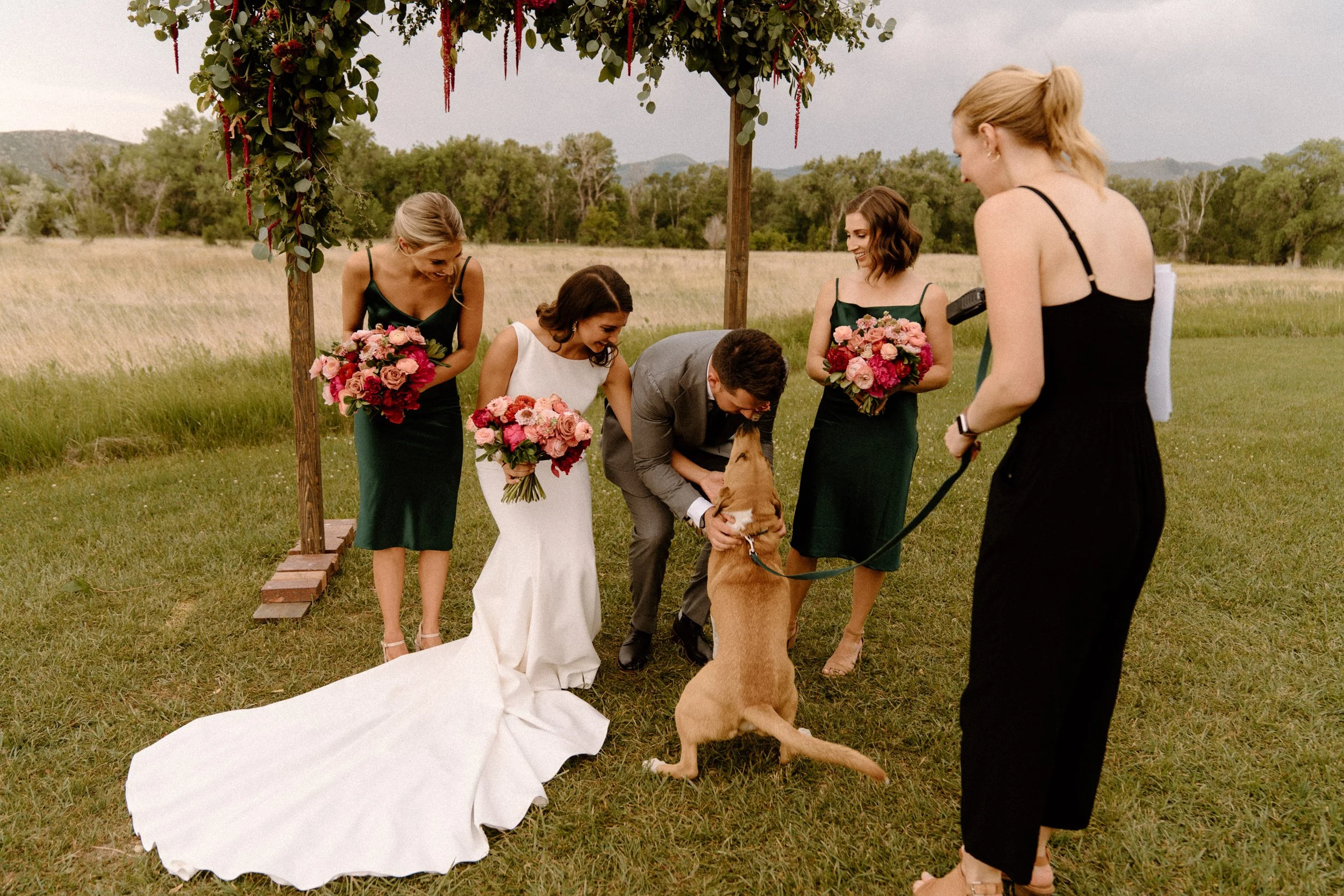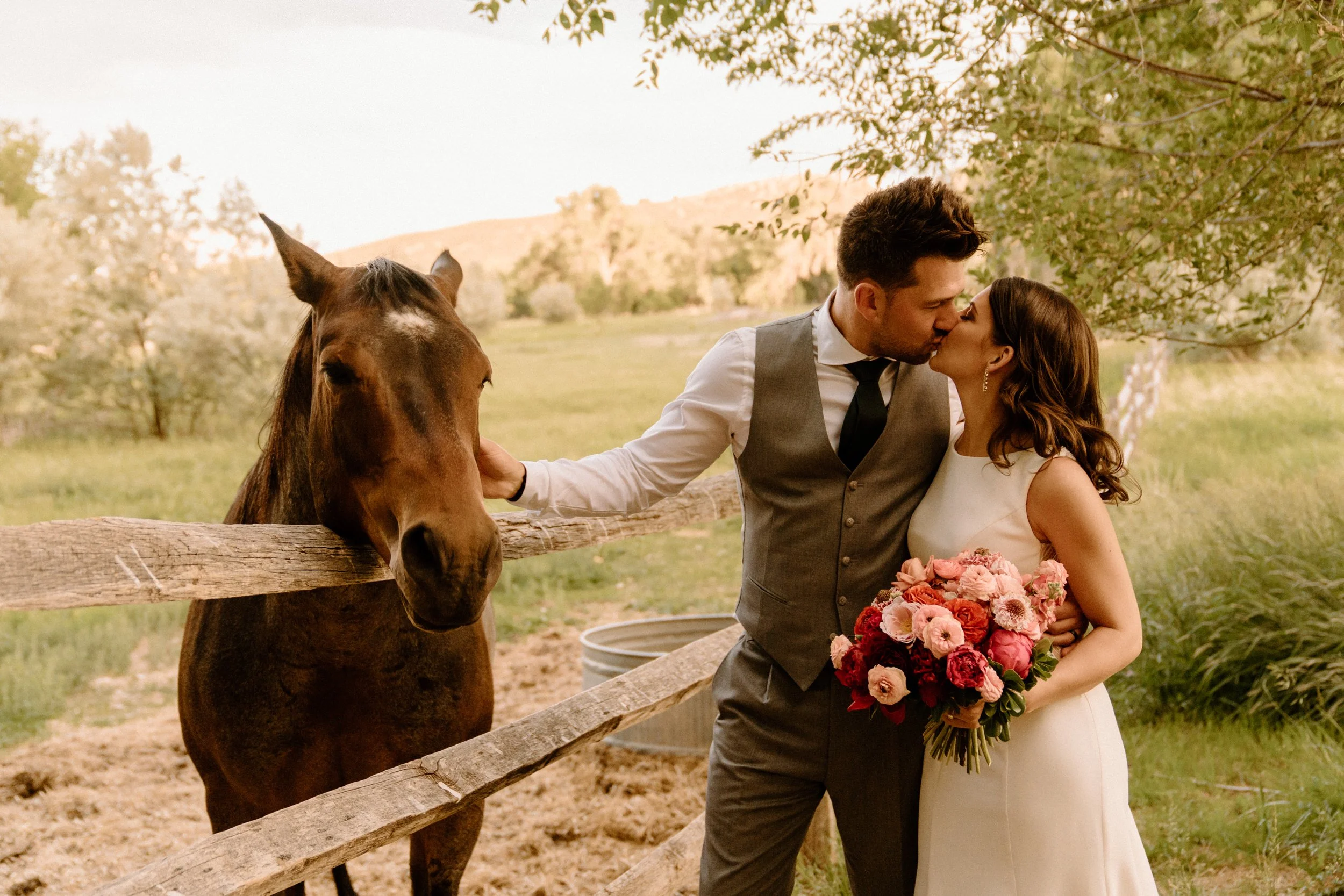 Kellsie and Luca’s wedding day was so laid back and such a blast to be a part of. Their ceremony was so sweet, guanine, and full of love. After the ceremony we took some photos with their adorable pup and their families, and then spent some time exploring the property grounds before heading to the reception! We snuck out during golden hour for the most stunning portraits, and they even got to hang with the resident horses! They finished the night laughing, dancing and celebrating with all of their friends and family. It was such a special day!
