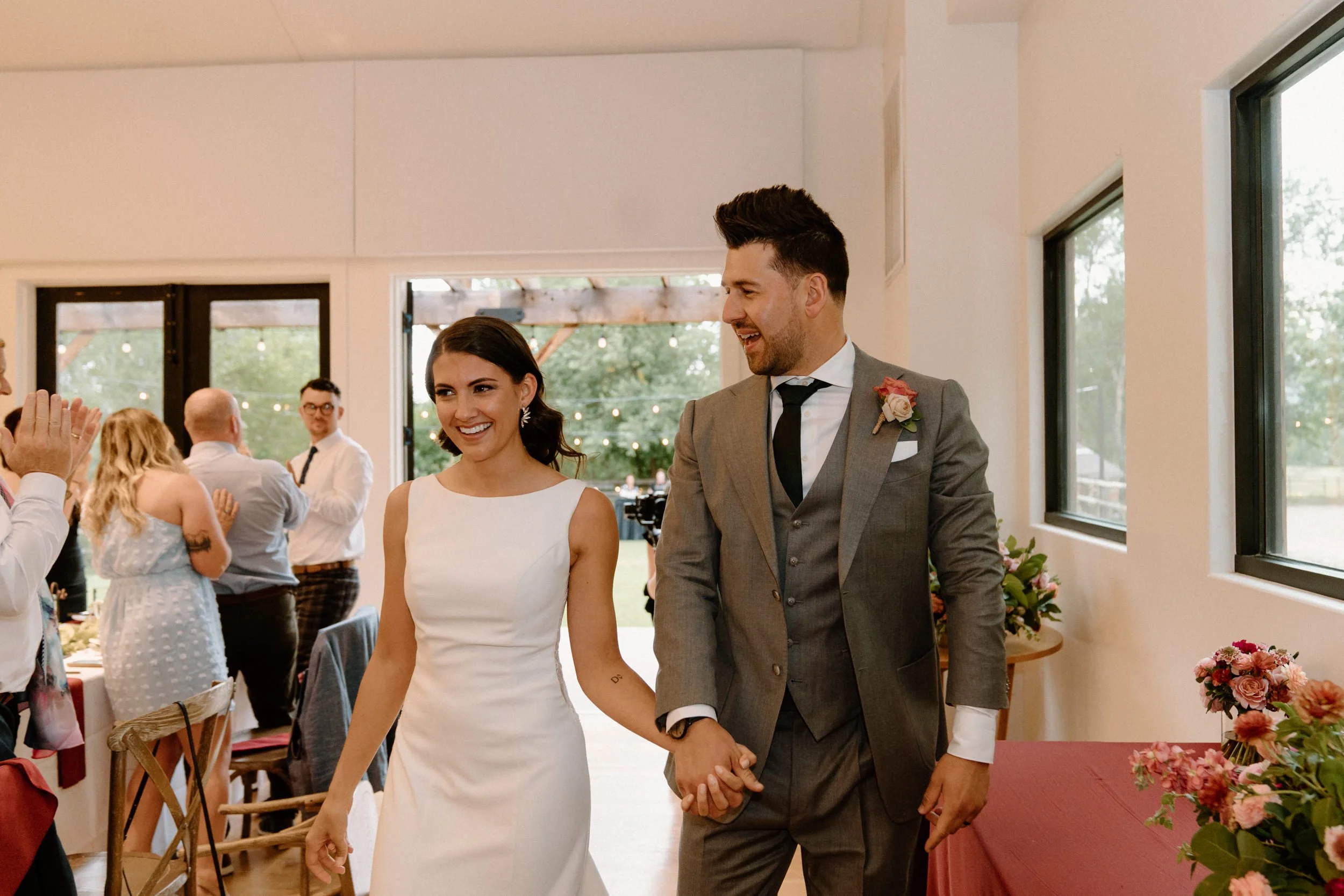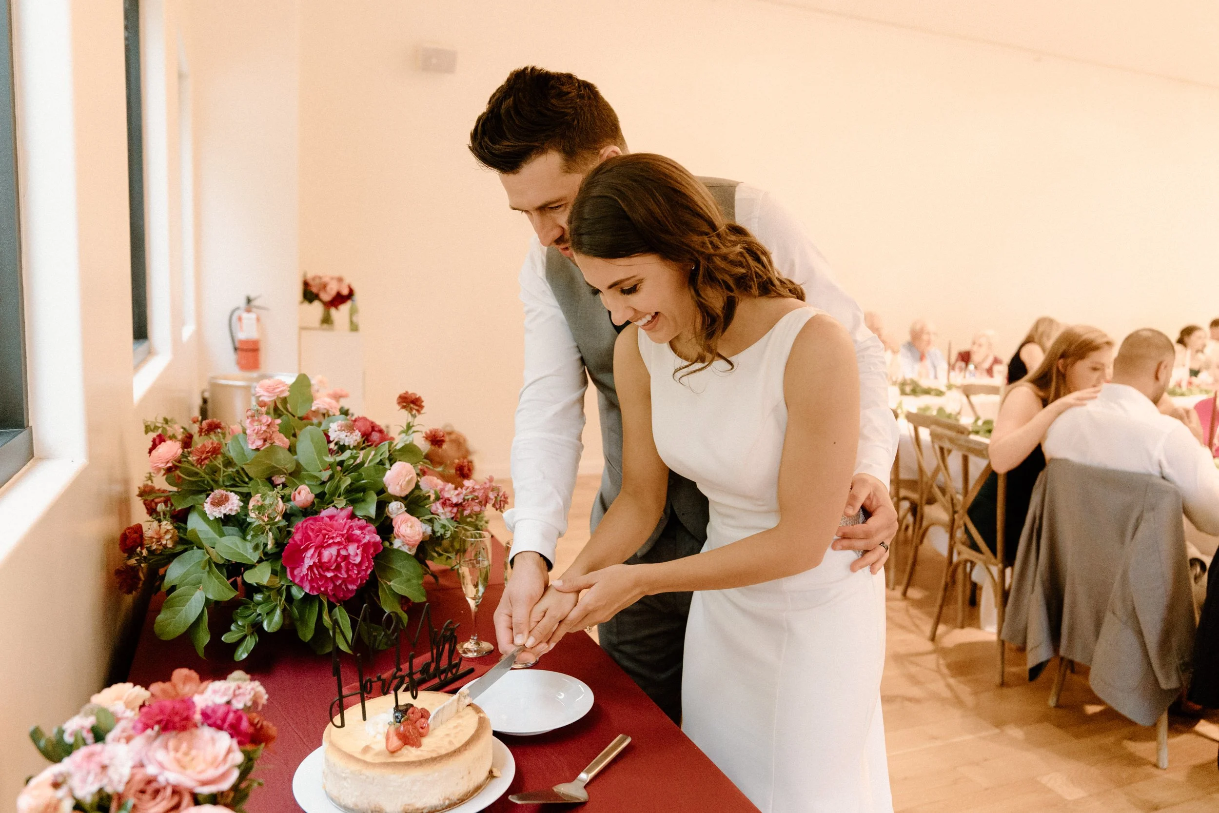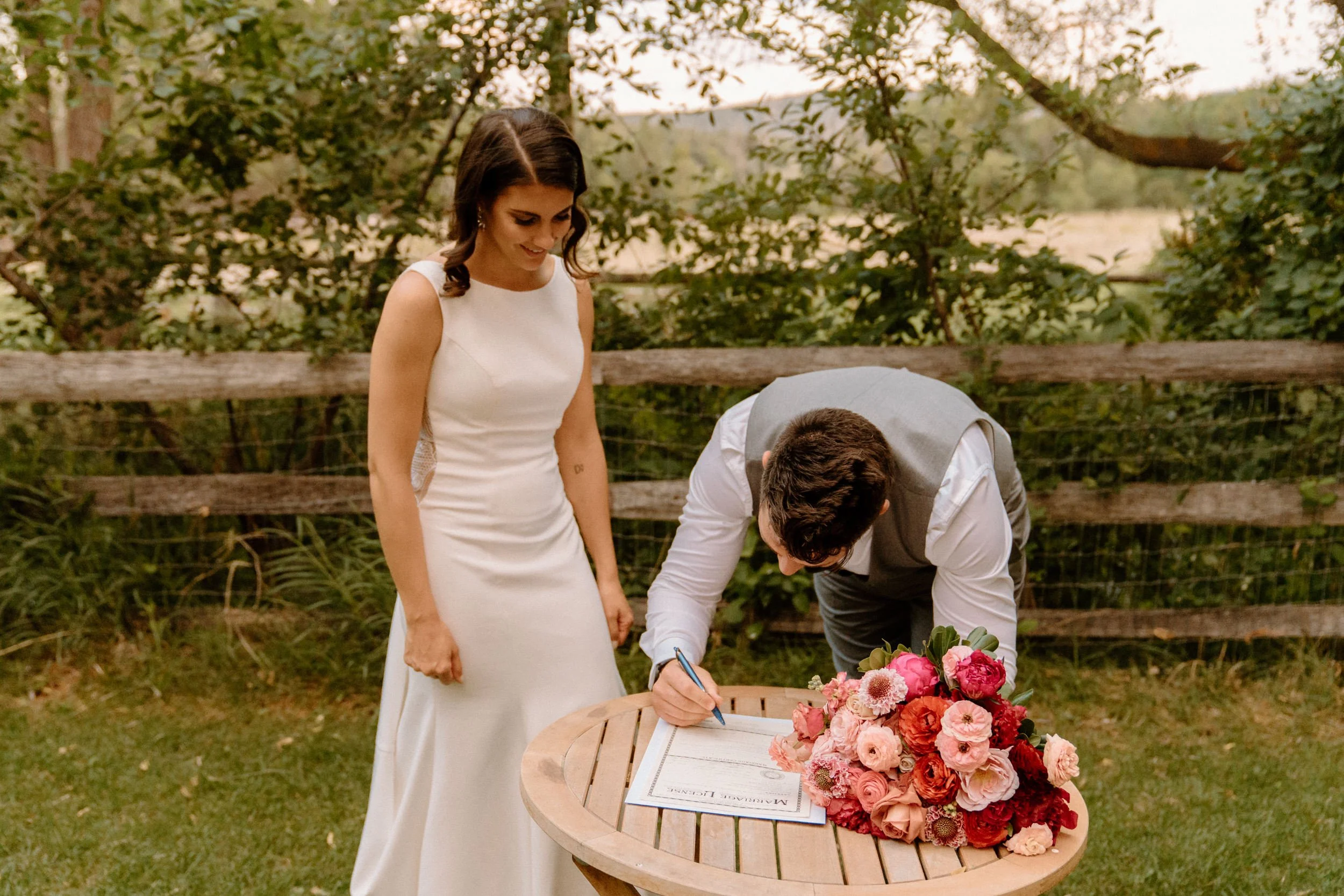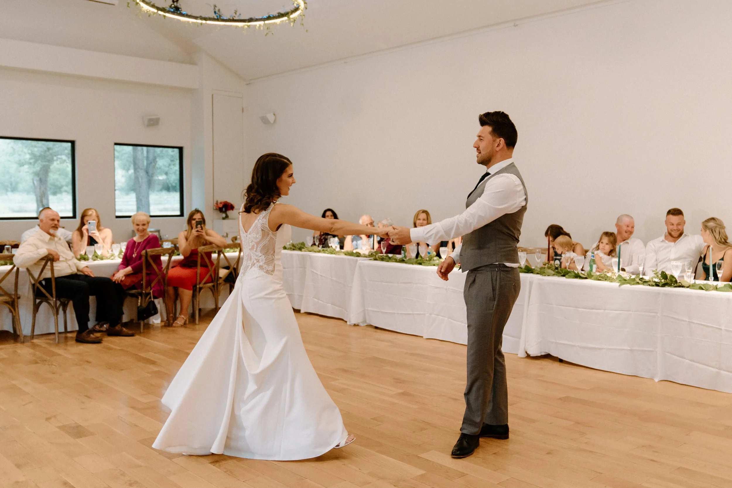 Kellsie and Luca’s wedding day was so laid back and such a blast to be a part of. Their ceremony was so sweet, guanine, and full of love. After the ceremony we took some photos with their adorable pup and their families, and then spent some time exploring the property grounds before heading to the reception! We snuck out during golden hour for the most stunning portraits, and they even got to hang with the resident horses! They finished the night laughing, dancing and celebrating with all of their friends and family. It was such a special day!