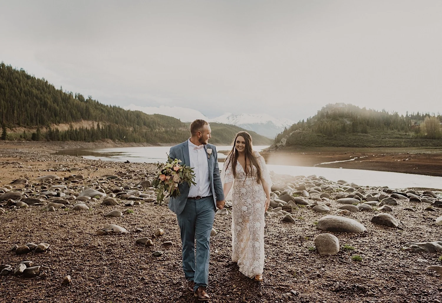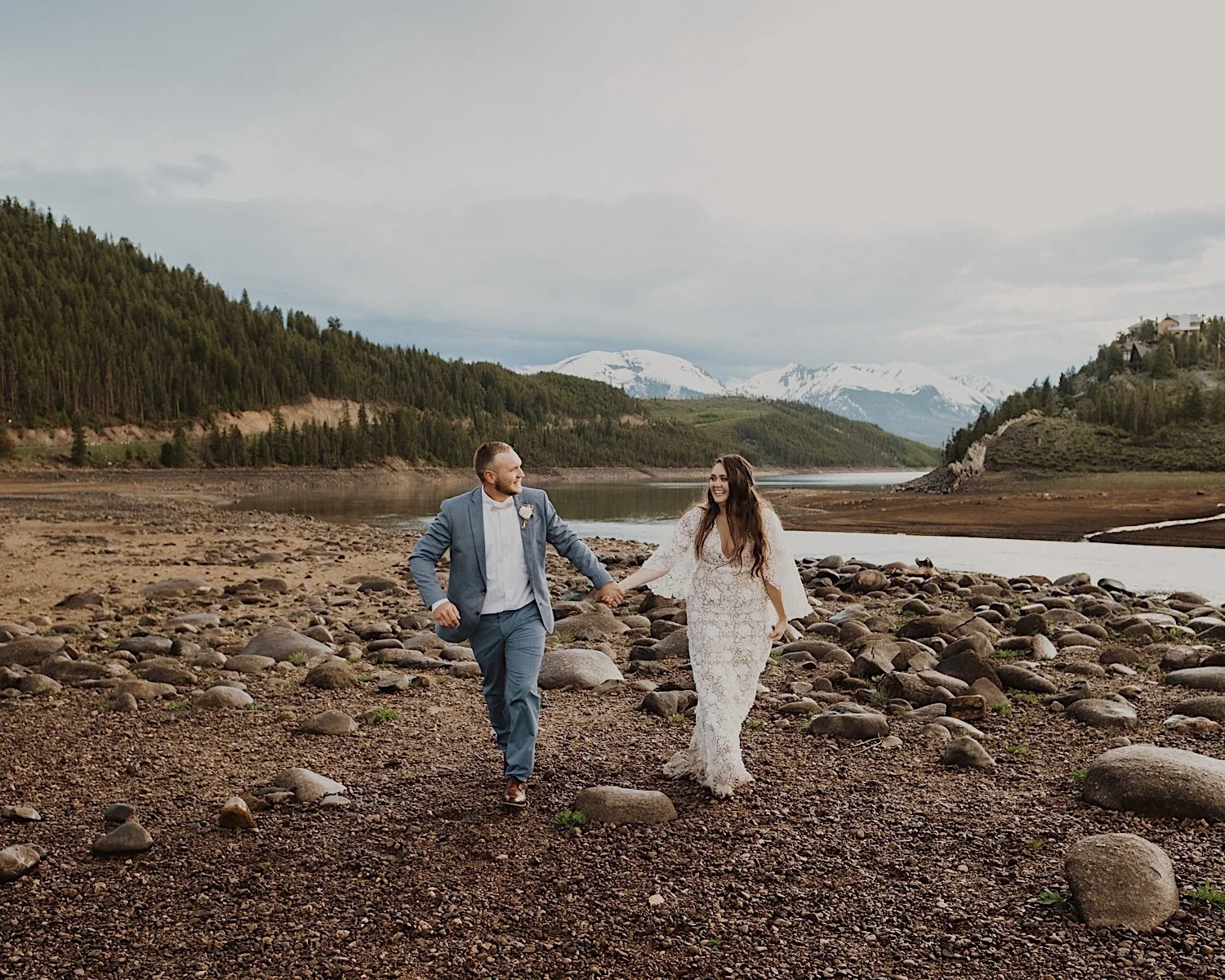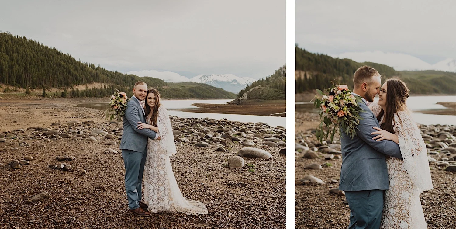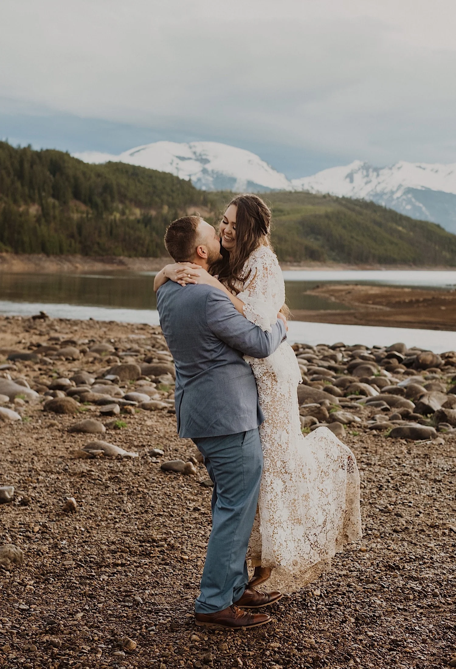 In Colorado the weather is almost always super unpredictable. For Kierra and Derek’s elopement is rained. hailed, and the weather was crazy. Instead of letting in bring them down – they just totally embraced it and it was magical!! We had the most fun day ever just running around Sapphire Point/Lake Dillon taking photos and just embracing the craziness. At the end of the night we even got the most incredible rainbow!! I love that their wedding day was about them getting married and starting their forever together – they didn’t let anything get in the way of that and were determined to have fun and make it the best day ever no matter what!