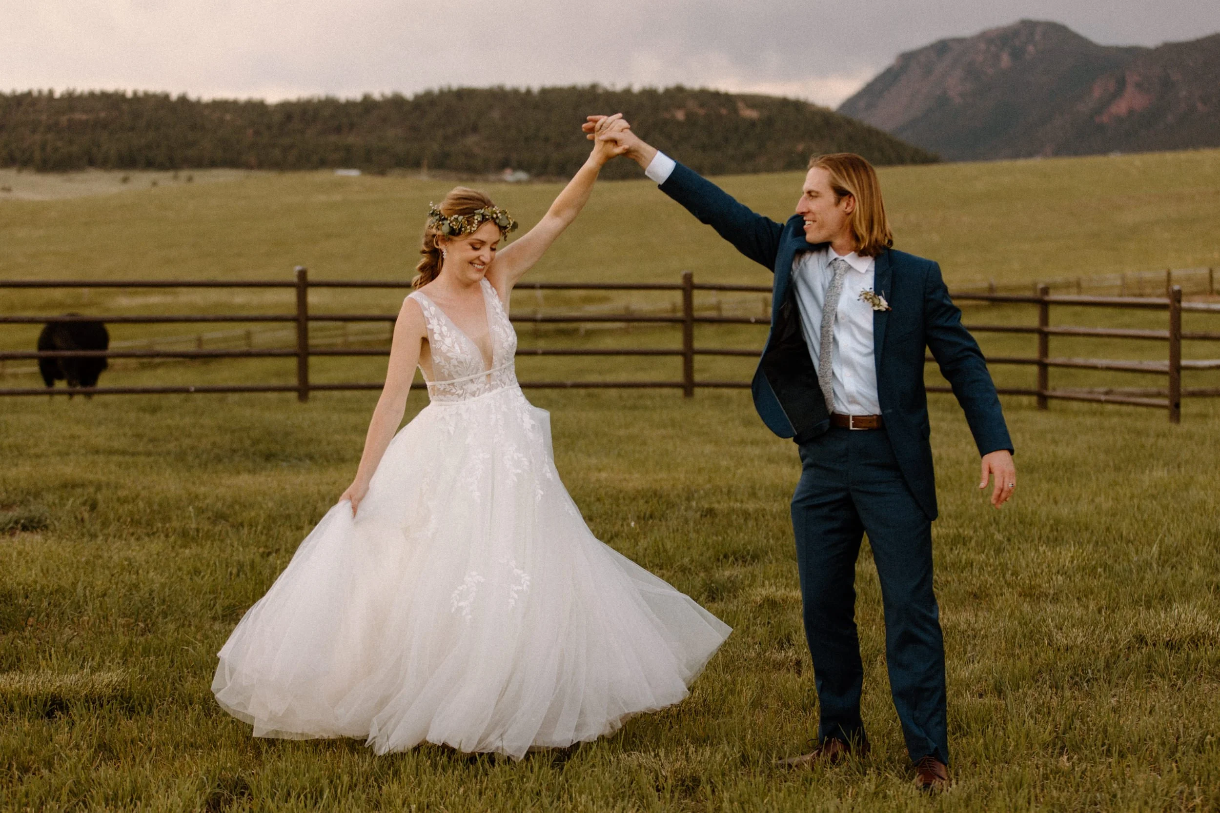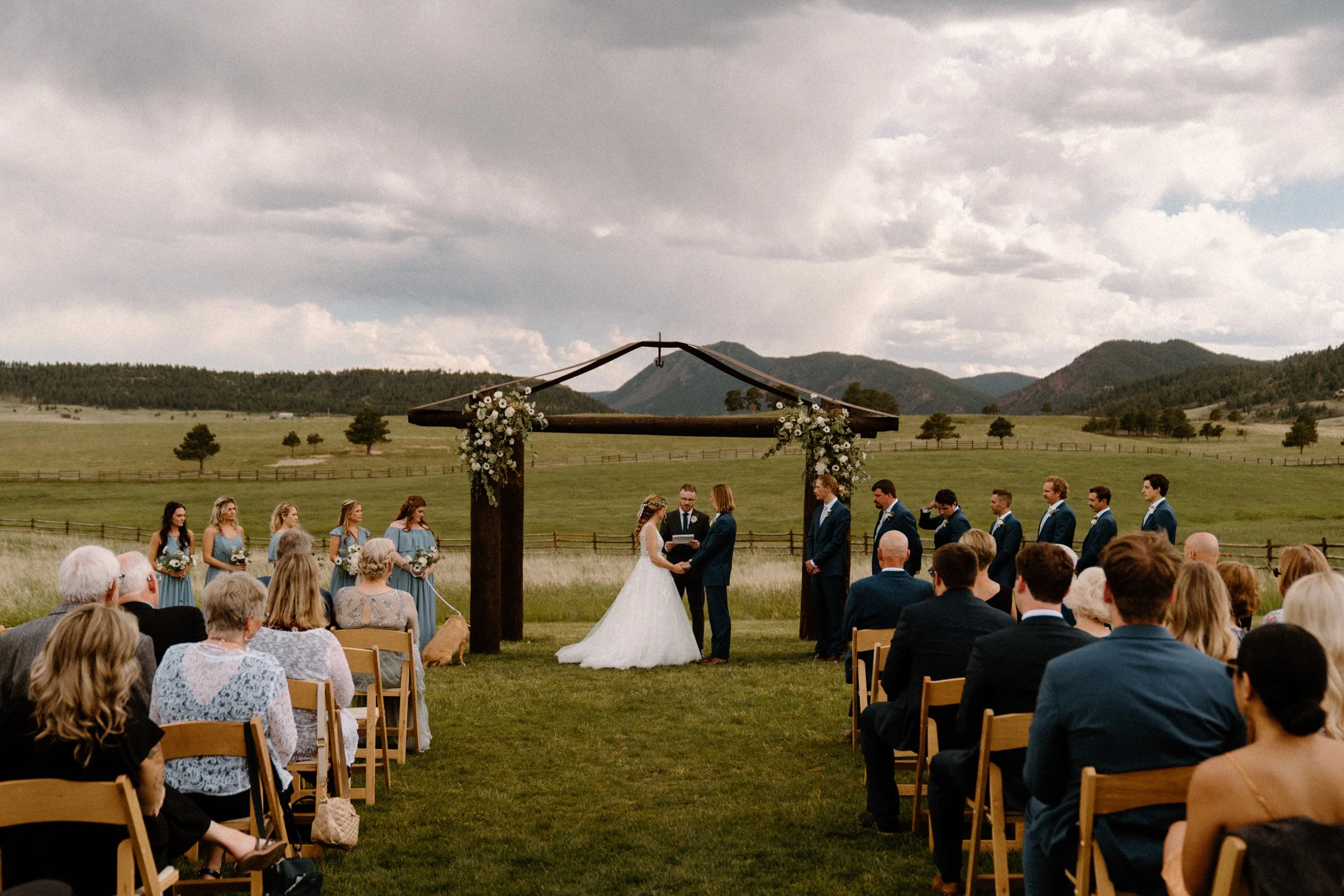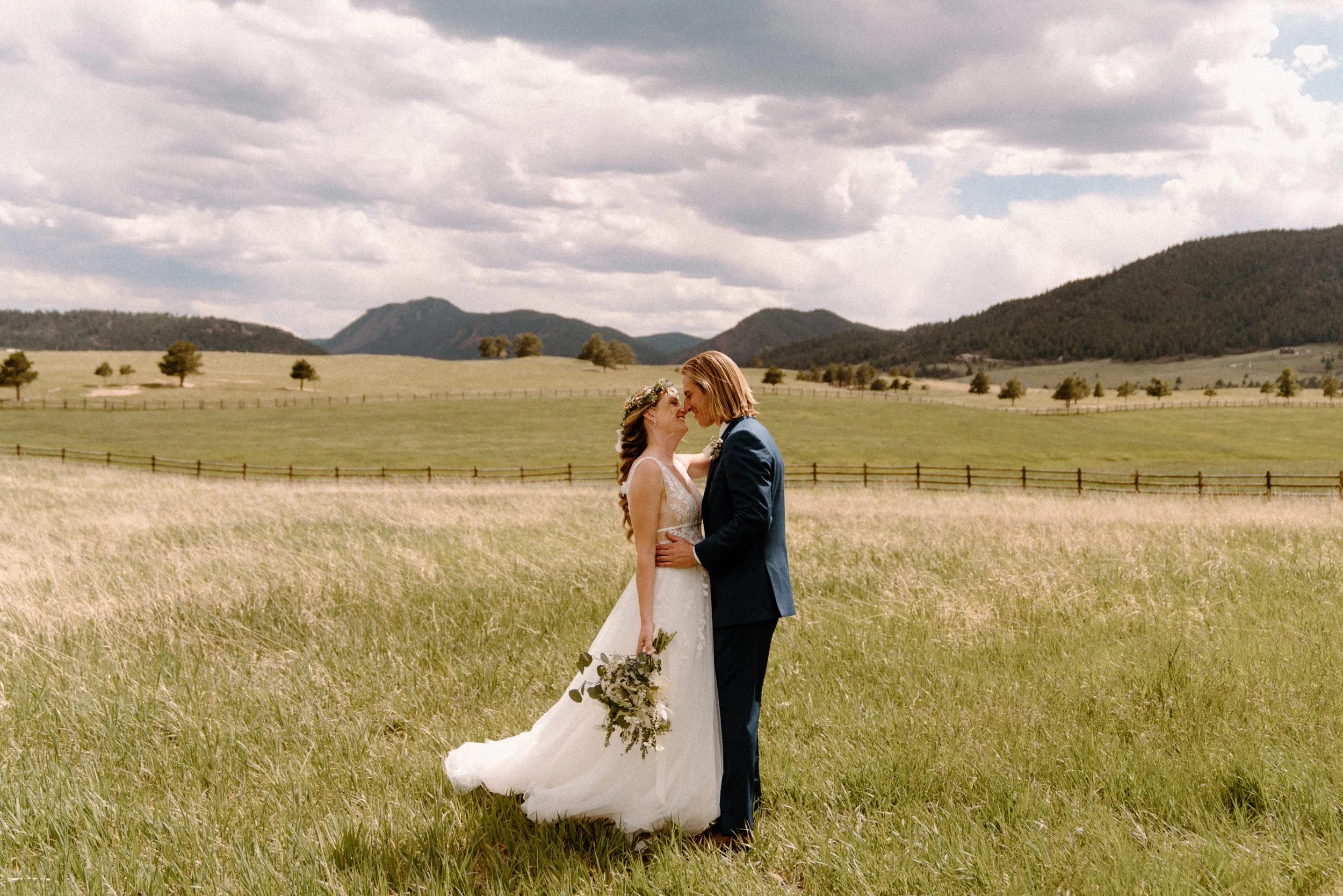 This dreamy spring wedding at one of my all time favorite wedding venues in Colorado – Spruce Mountain Ranch, was one for the books. If you’re looking for a wedding venue near Denver that has stunning views, fits a large guest list, and has a rustic yet elegant vibe – Spruce Mountain Ranch is definitely one to go check out! Spruce Mountain Ranch actually has two venues that you can get married at (both of which I love equally!) – the upper and lower ranch. Travis and Mare’s wedding day took place at the upper ranch which is known for it’s stunning mountain views and open meadows!