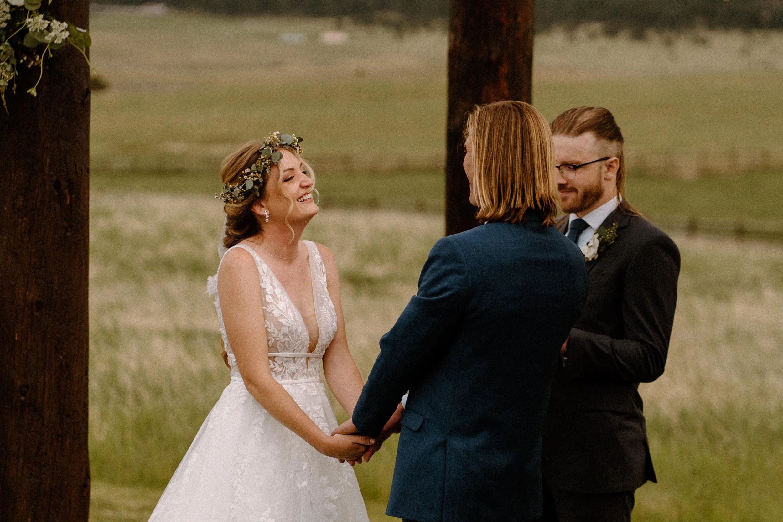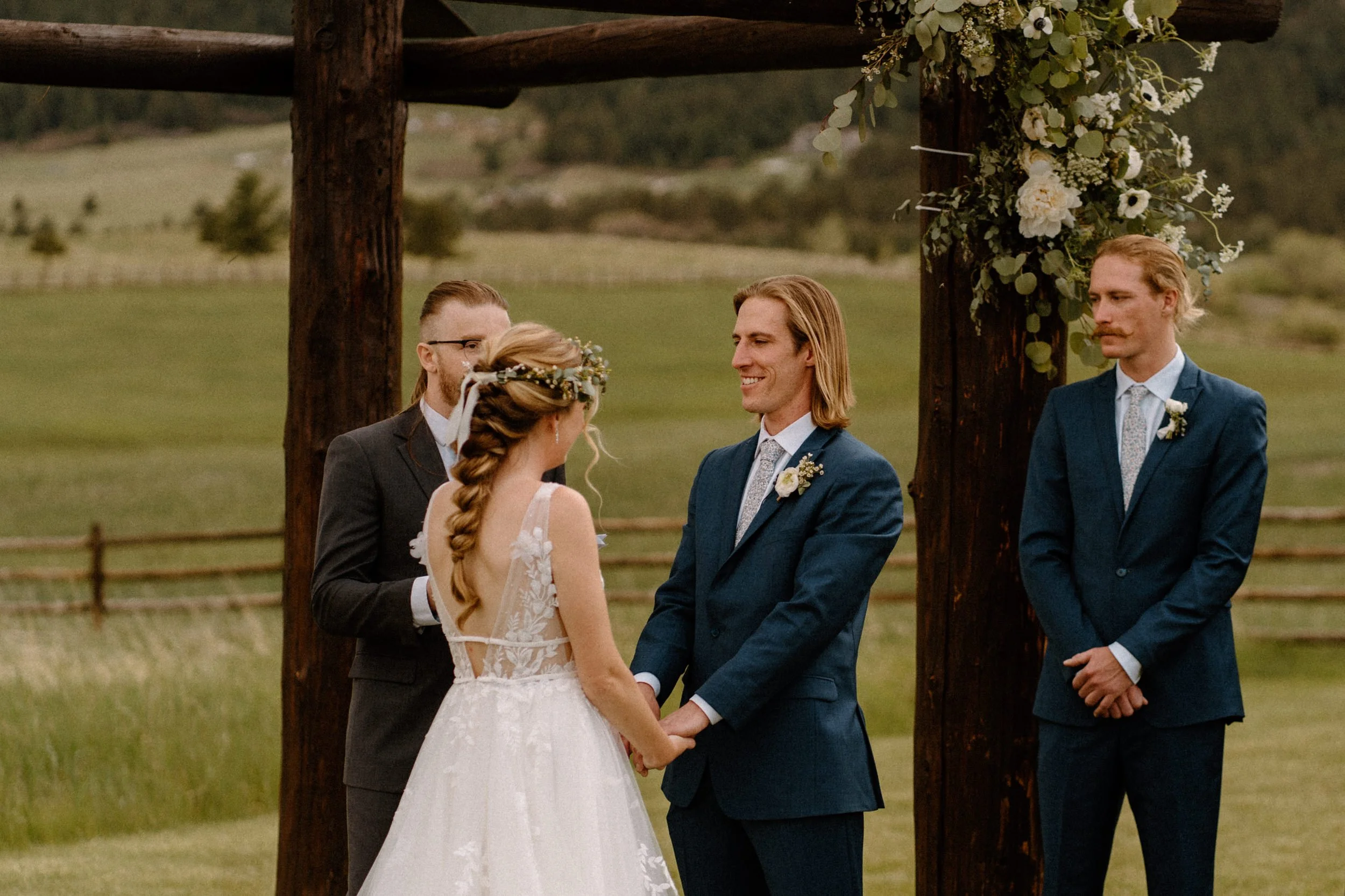 Travis and Mare’s spring wedding day at Spruce Mountain Ranch in Larkspur, Colorado last May was such a fun and beautiful day! Spring is one of my favorite times of year to get married in Colorado because it’s so lush and green!!