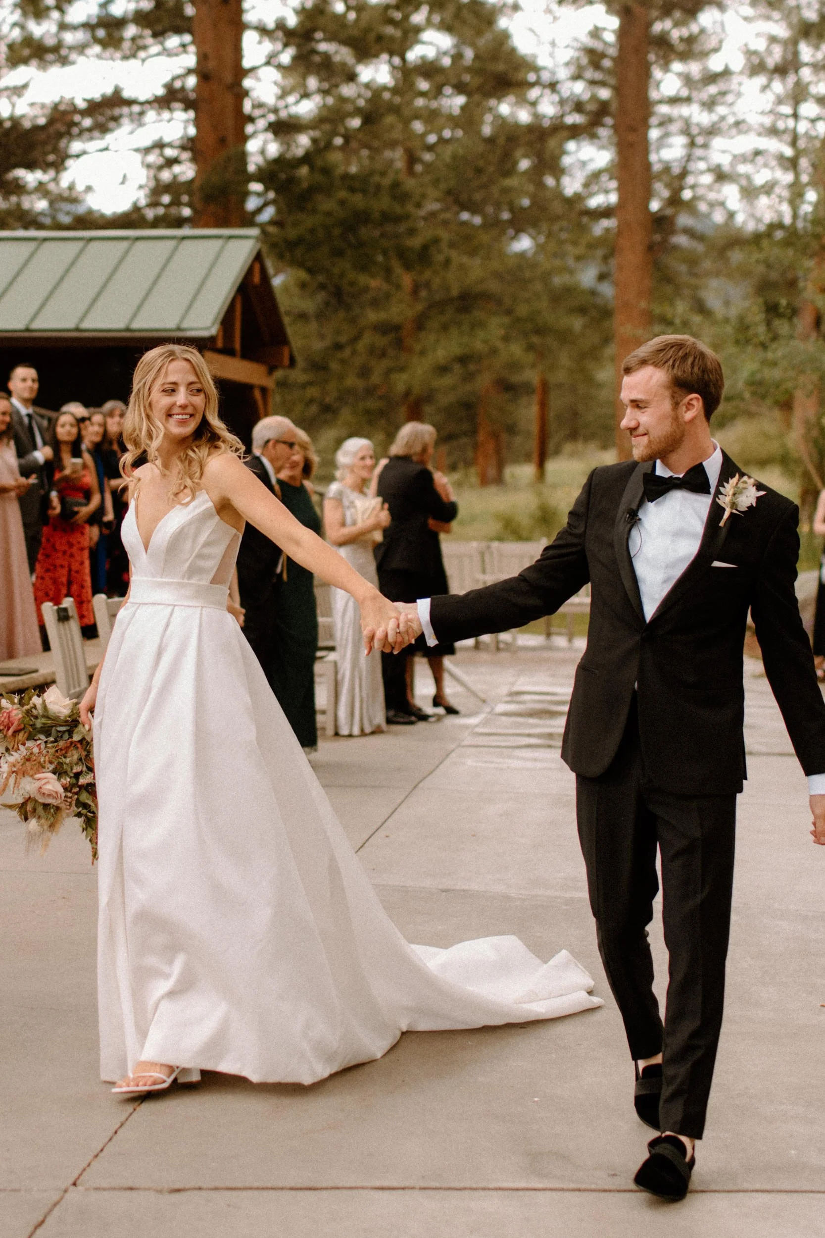 Their outdoor ceremony was filled with so much love. They laughed, wiped away happy tears, and promised forever with the Colorado mountains standing tall behind them. When they exchanged rings and kissed, their guests cheered, and you could feel just how much these two are adored.